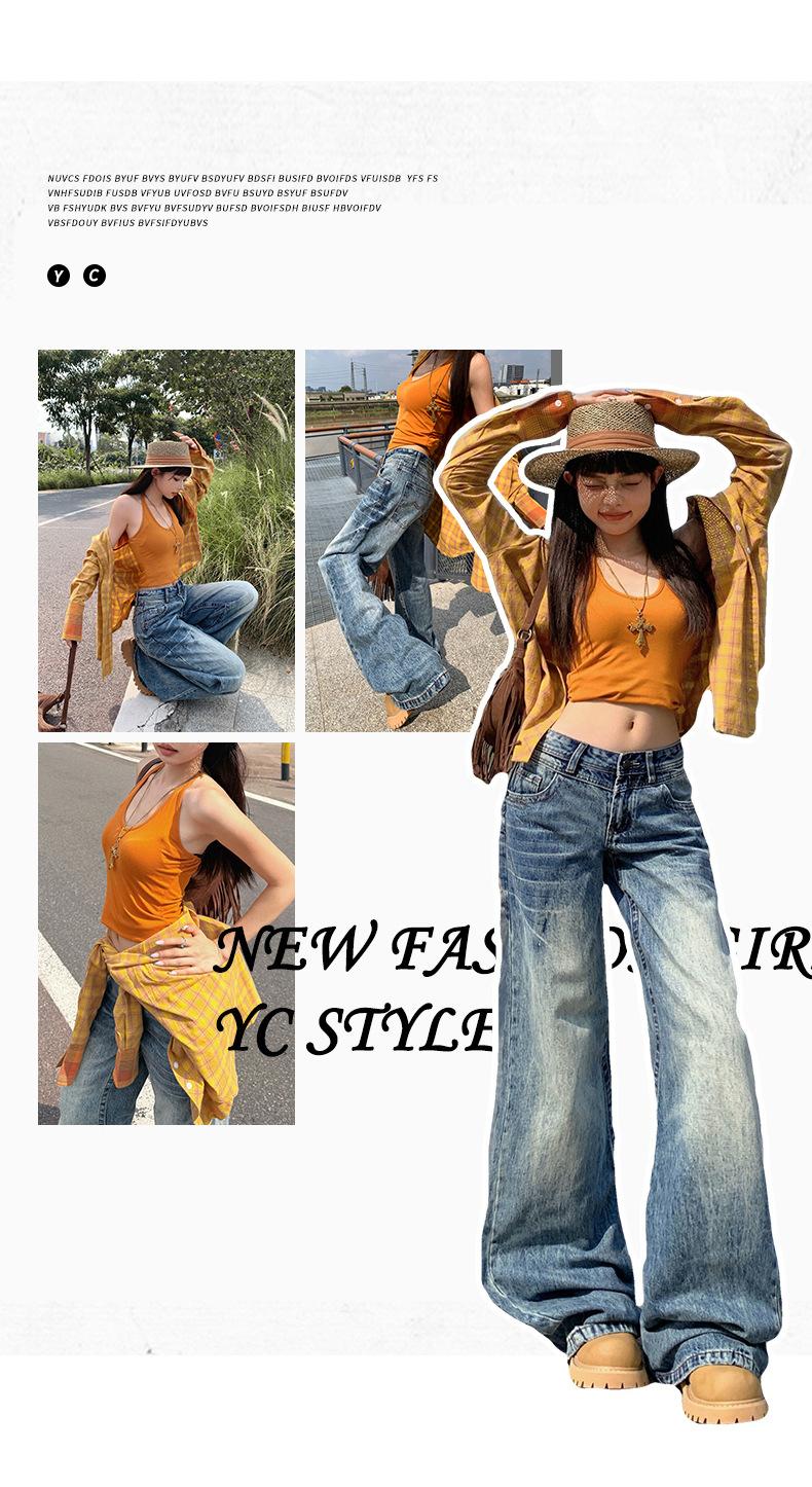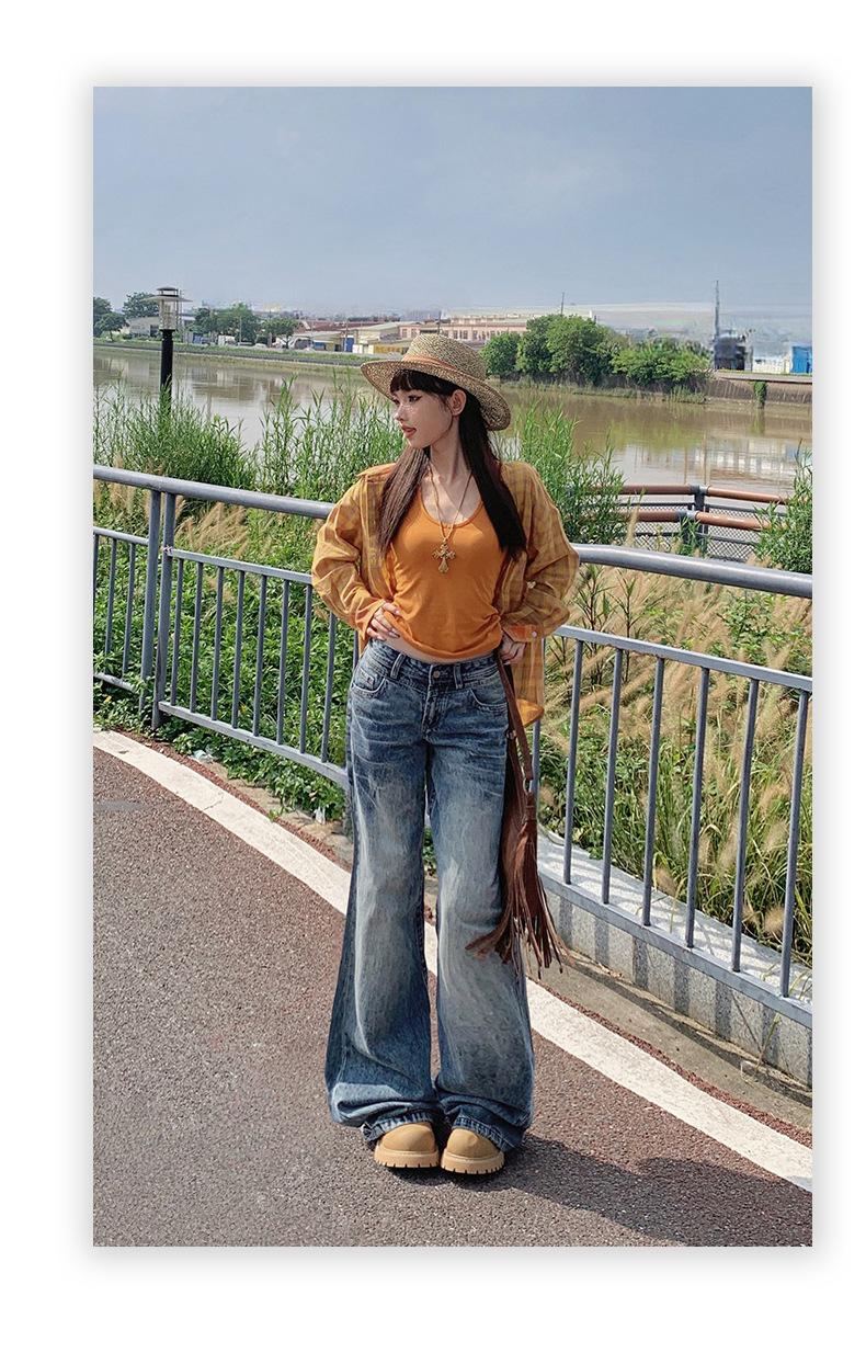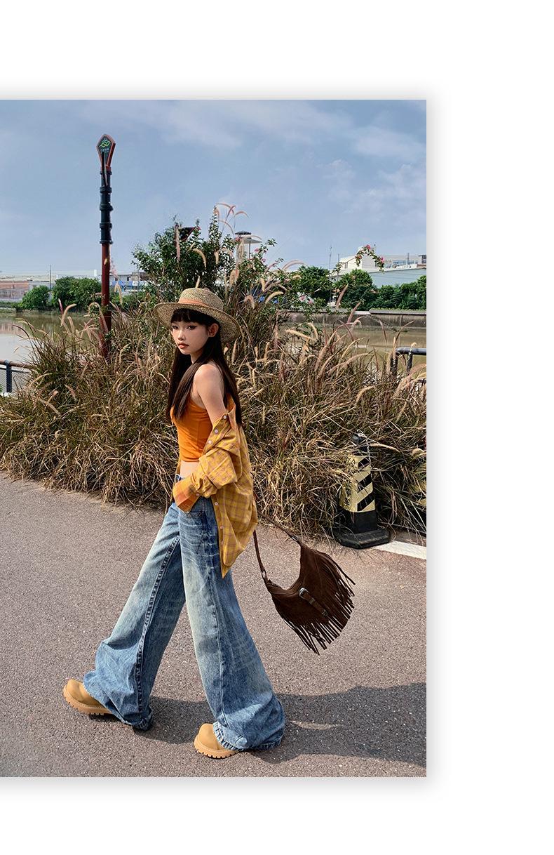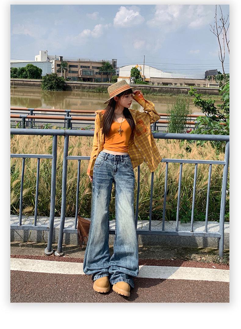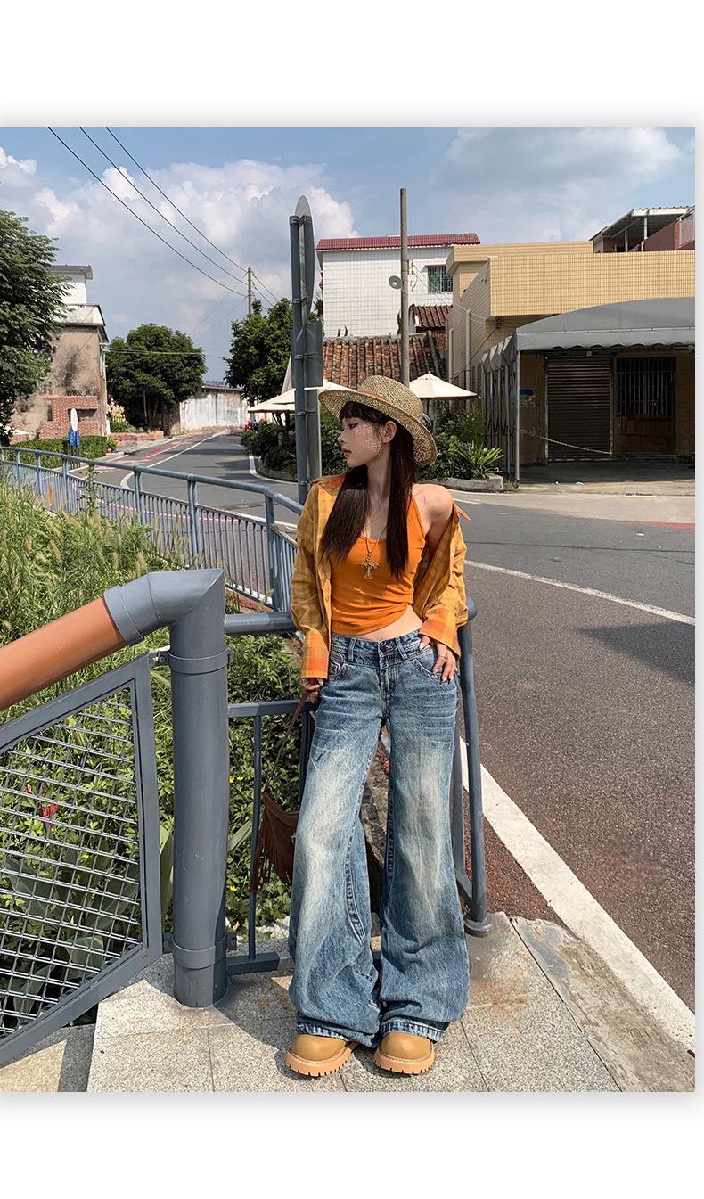 Jeans Retro Lavados de Industria Pesada Americana para Mujer Otoño 2025 Nuevo Cintura Baja Sueltos Pierna Recta Largo al Piso Acampanados