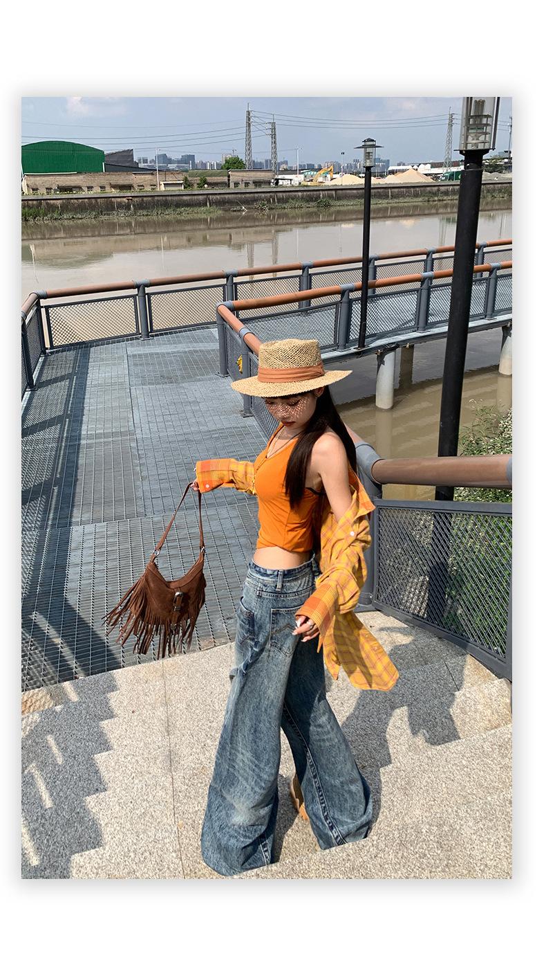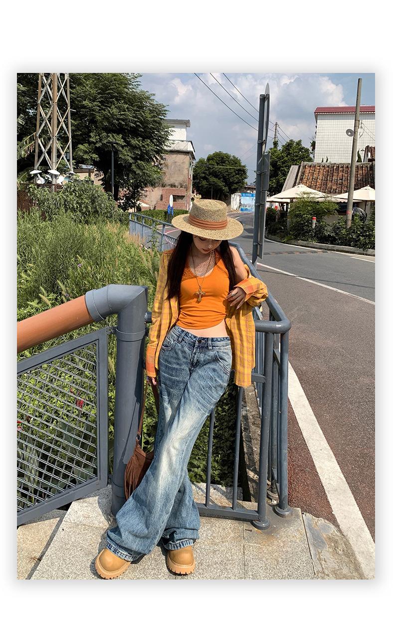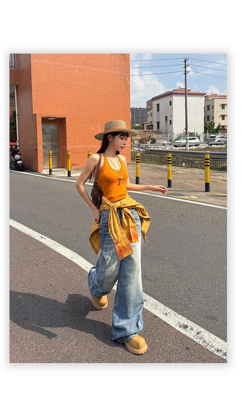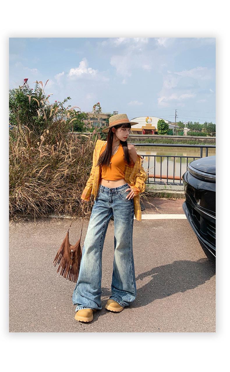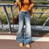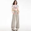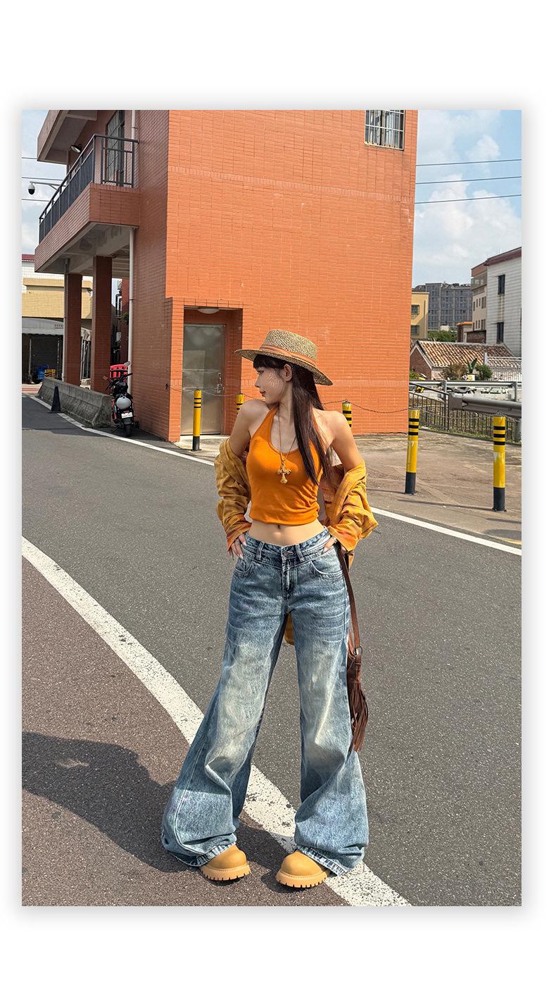 Jeans Retro Lavados de Industria Pesada Americana para Mujer Otoño 2025 Nuevo Cintura Baja Sueltos Pierna Recta Largo al Piso Acampanados