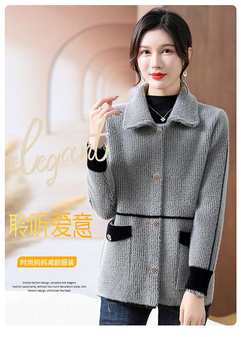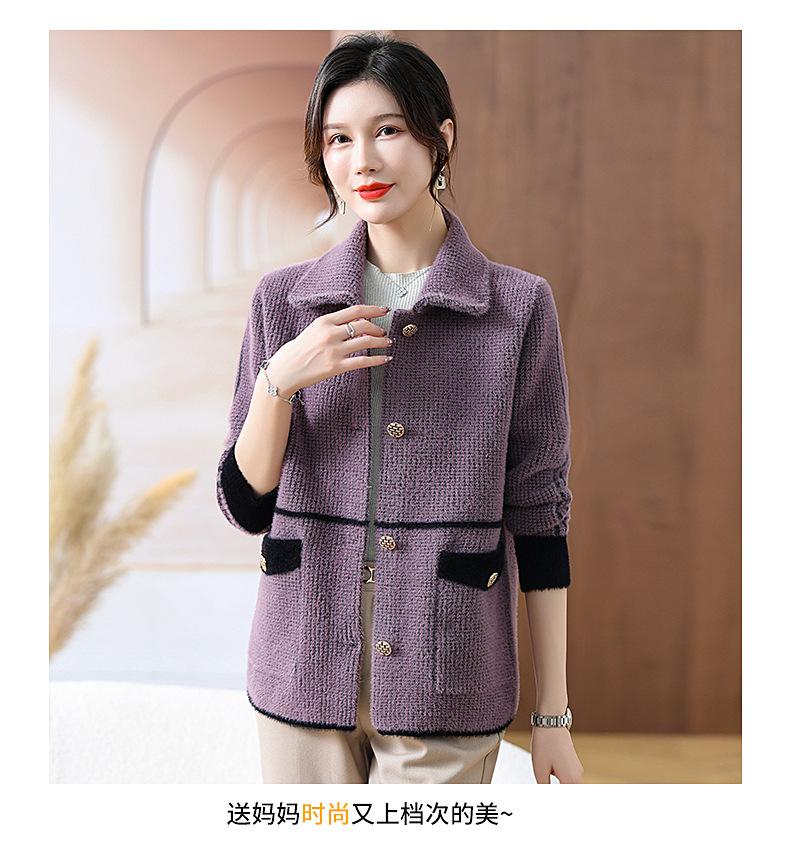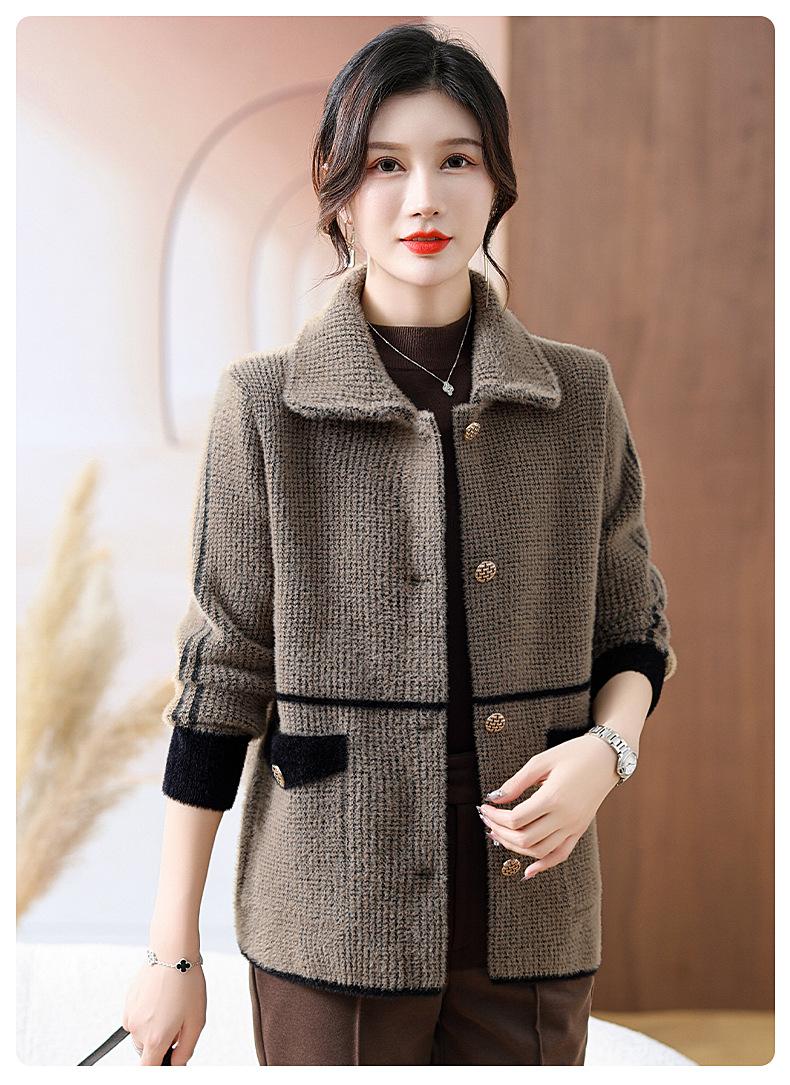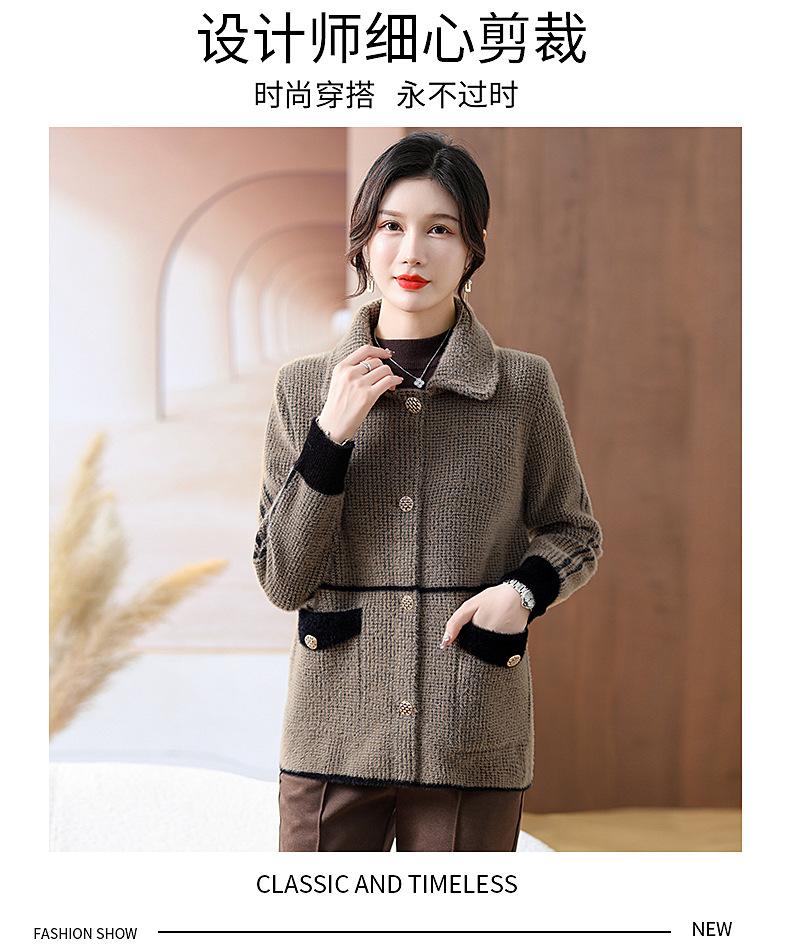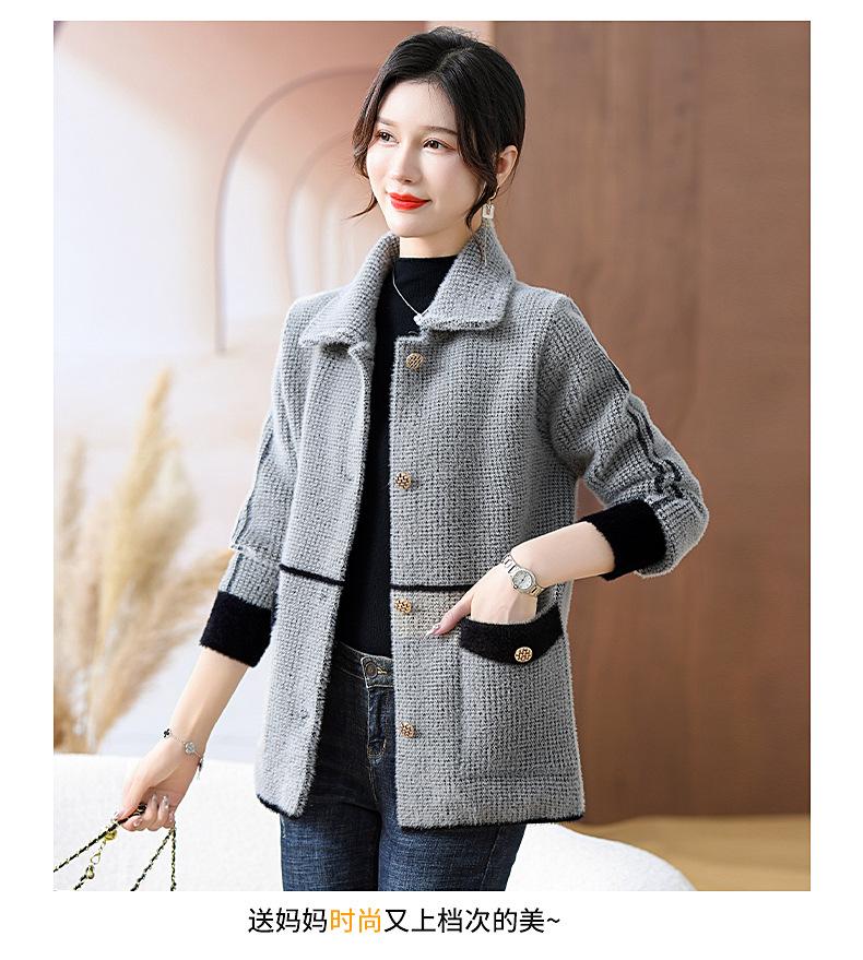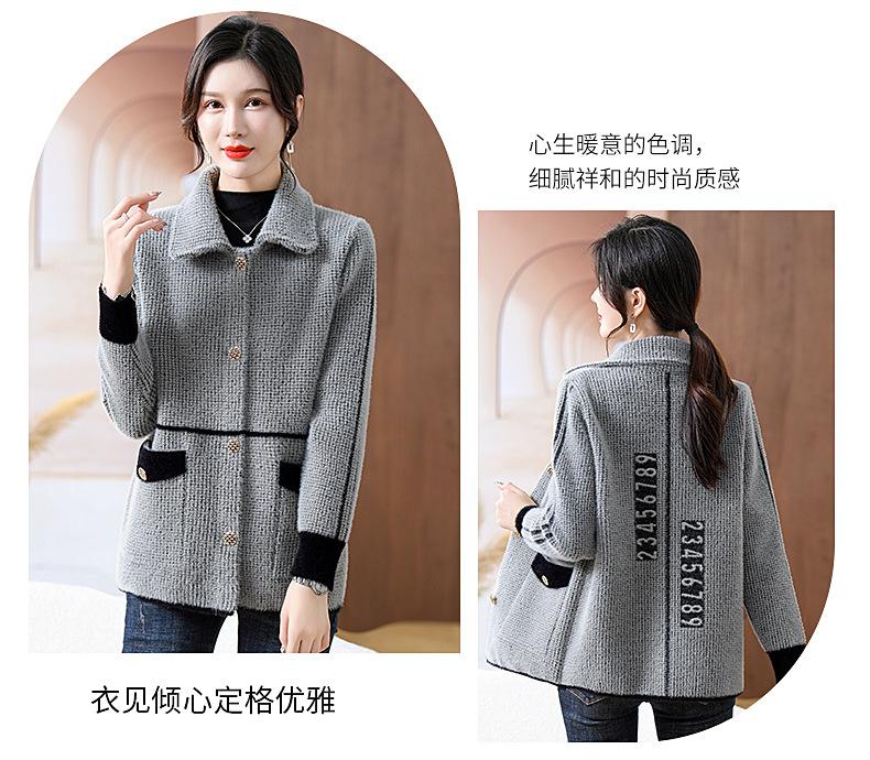Ropa de mamá otoño e invierno nuevo abrigo con solapa cárdigan de terciopelo de visón sintético moderno de mediana edad abrigo versátil de moda engrosado