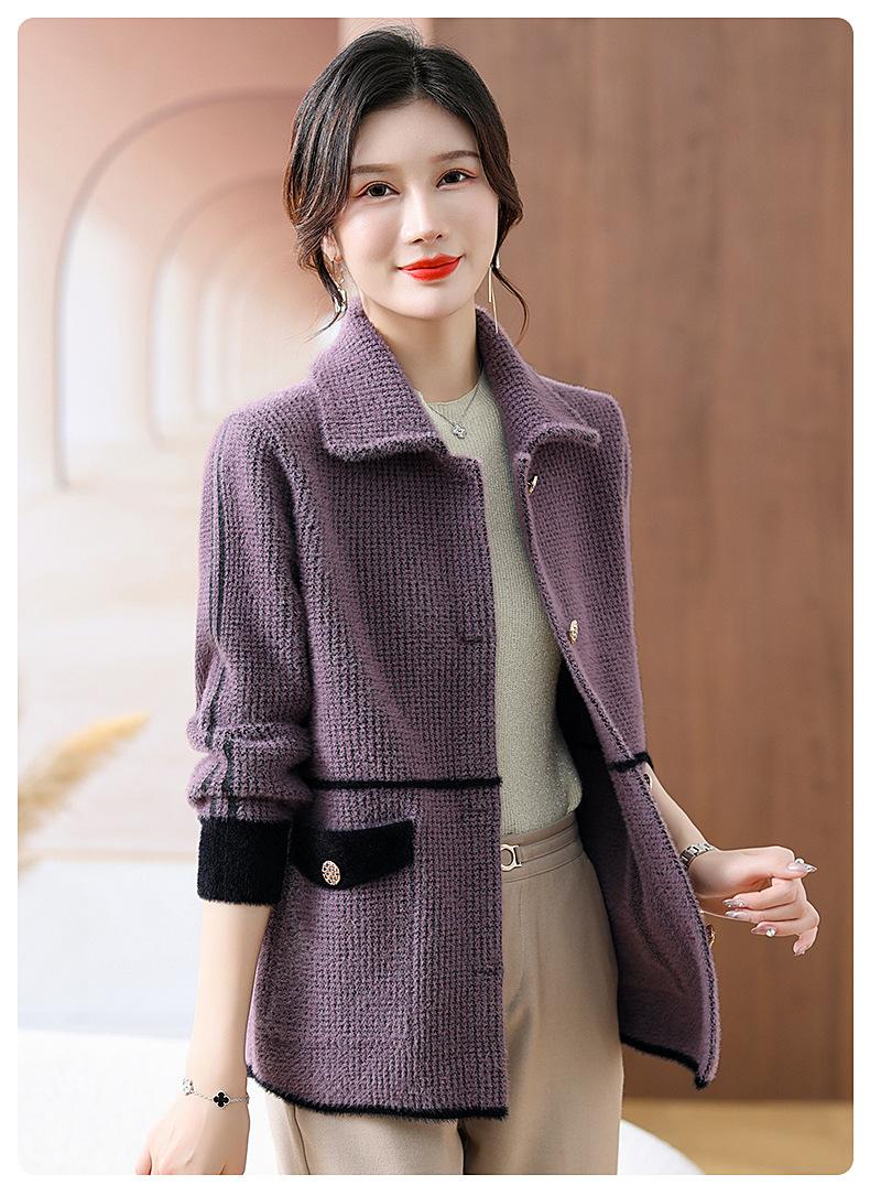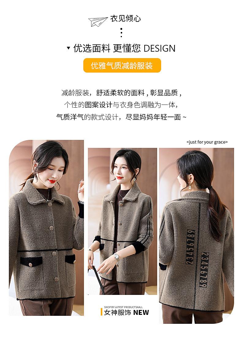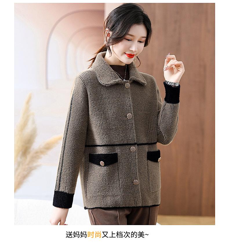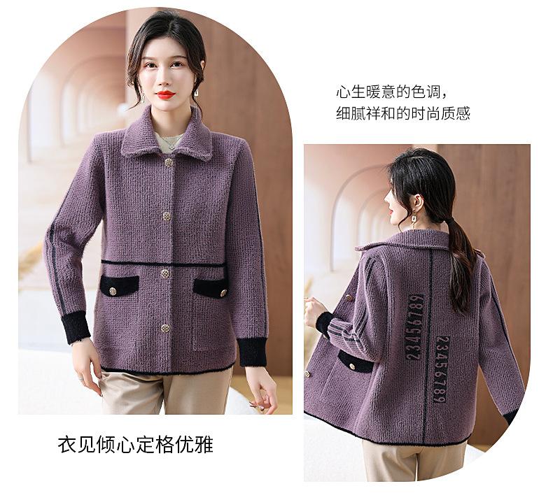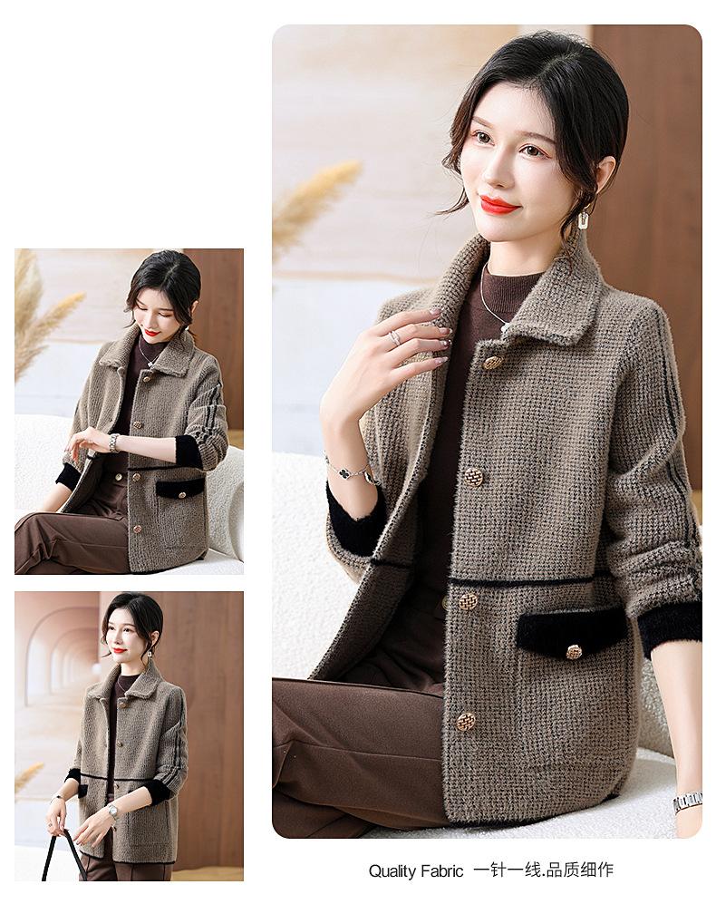Ropa de mamá otoño e invierno nuevo abrigo con solapa cárdigan de terciopelo de visón sintético moderno de mediana edad abrigo versátil de moda engrosado