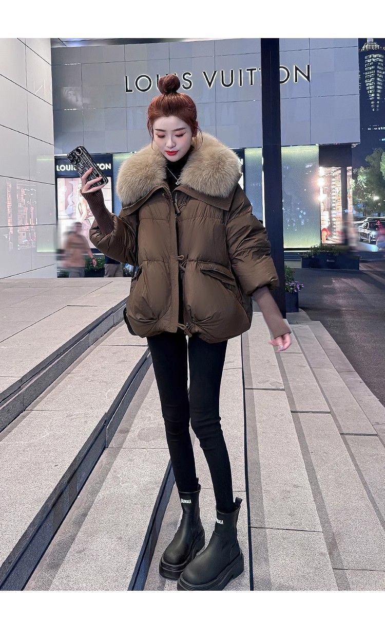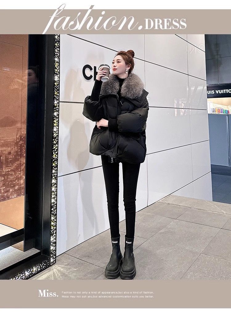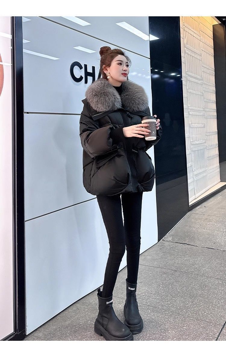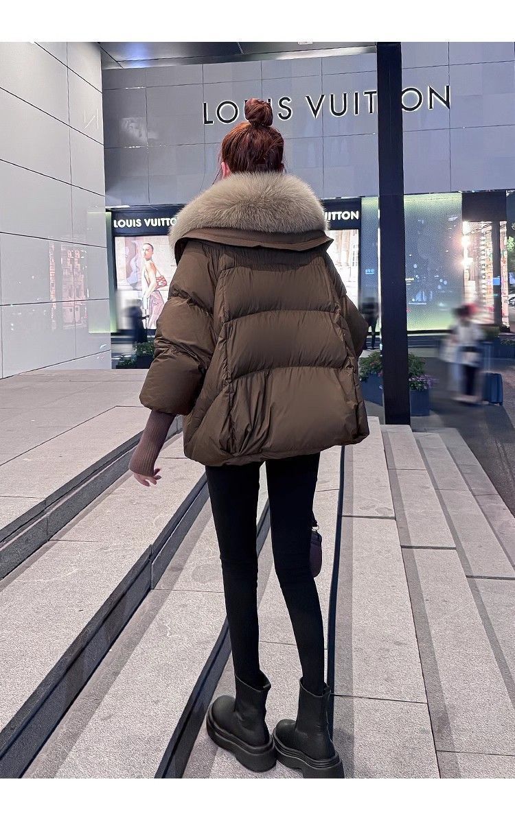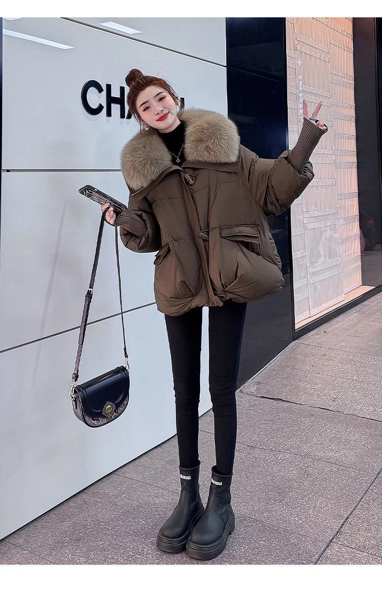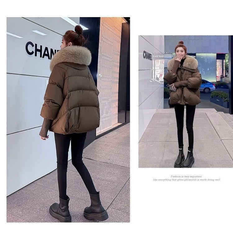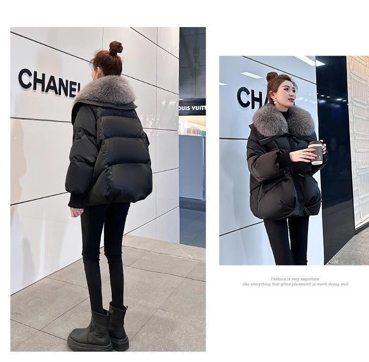Invierno Nuevo Abrigo Corto de Algodón Acolchado para Mujer Estilo Coreano Moderno Suelto Solapa de Piel Grande Grueso a Prueba de Frío Chaqueta Abrigo Tendencia