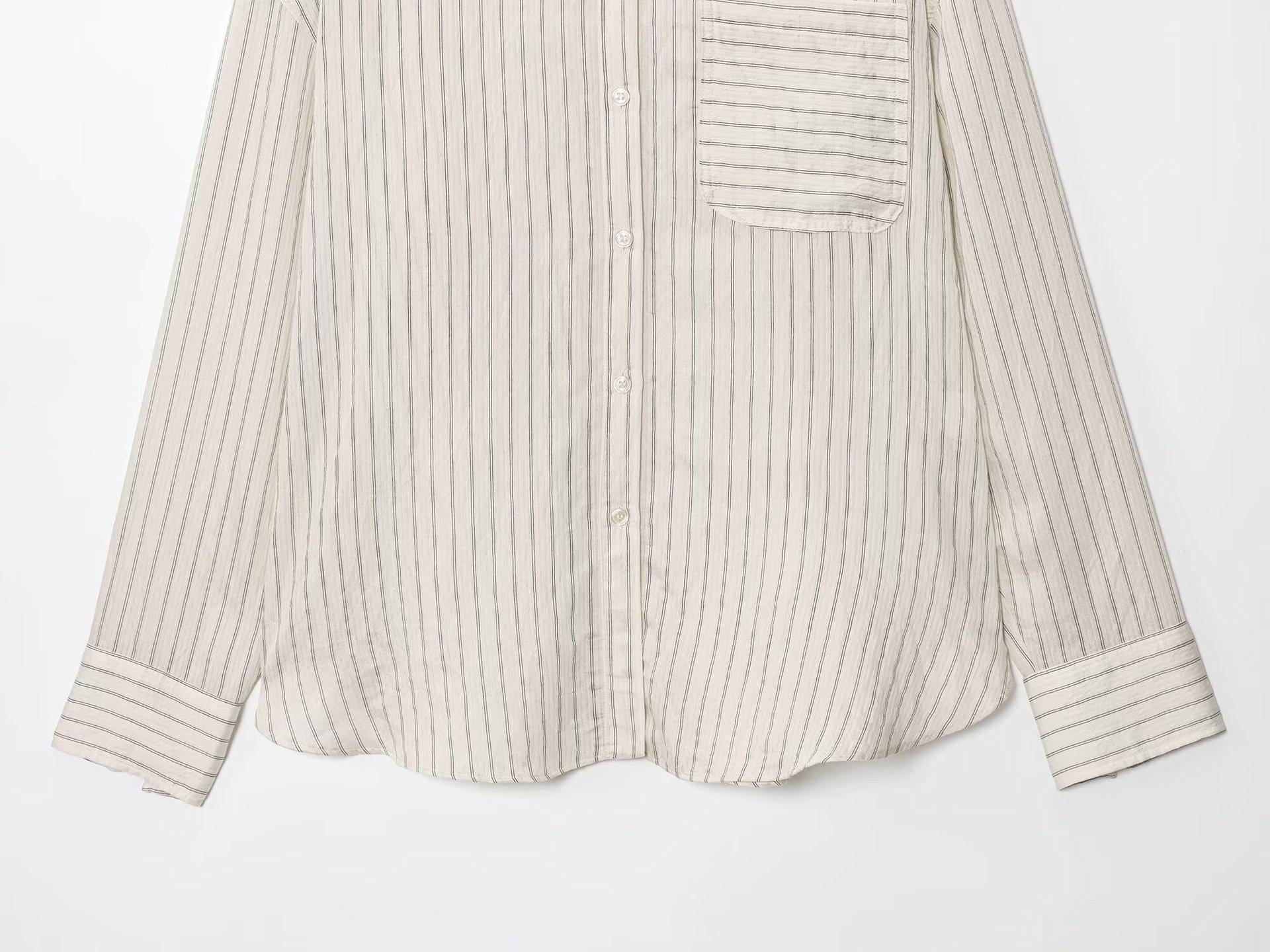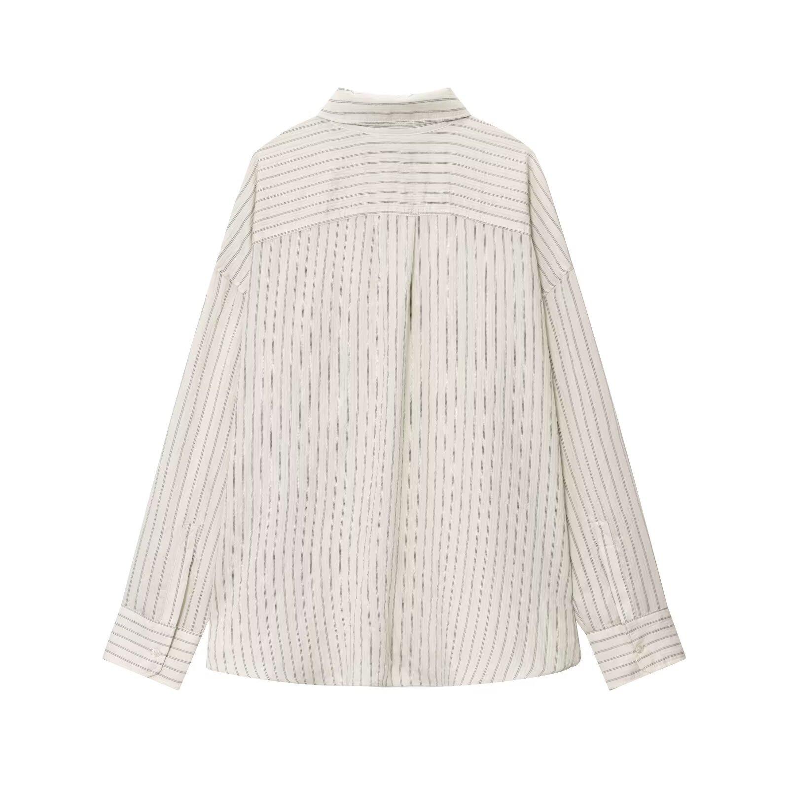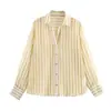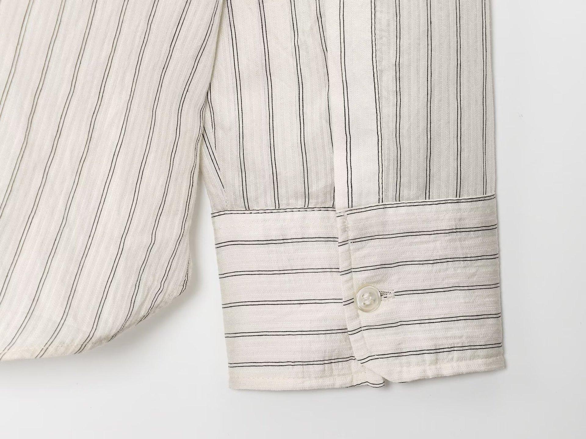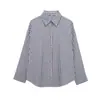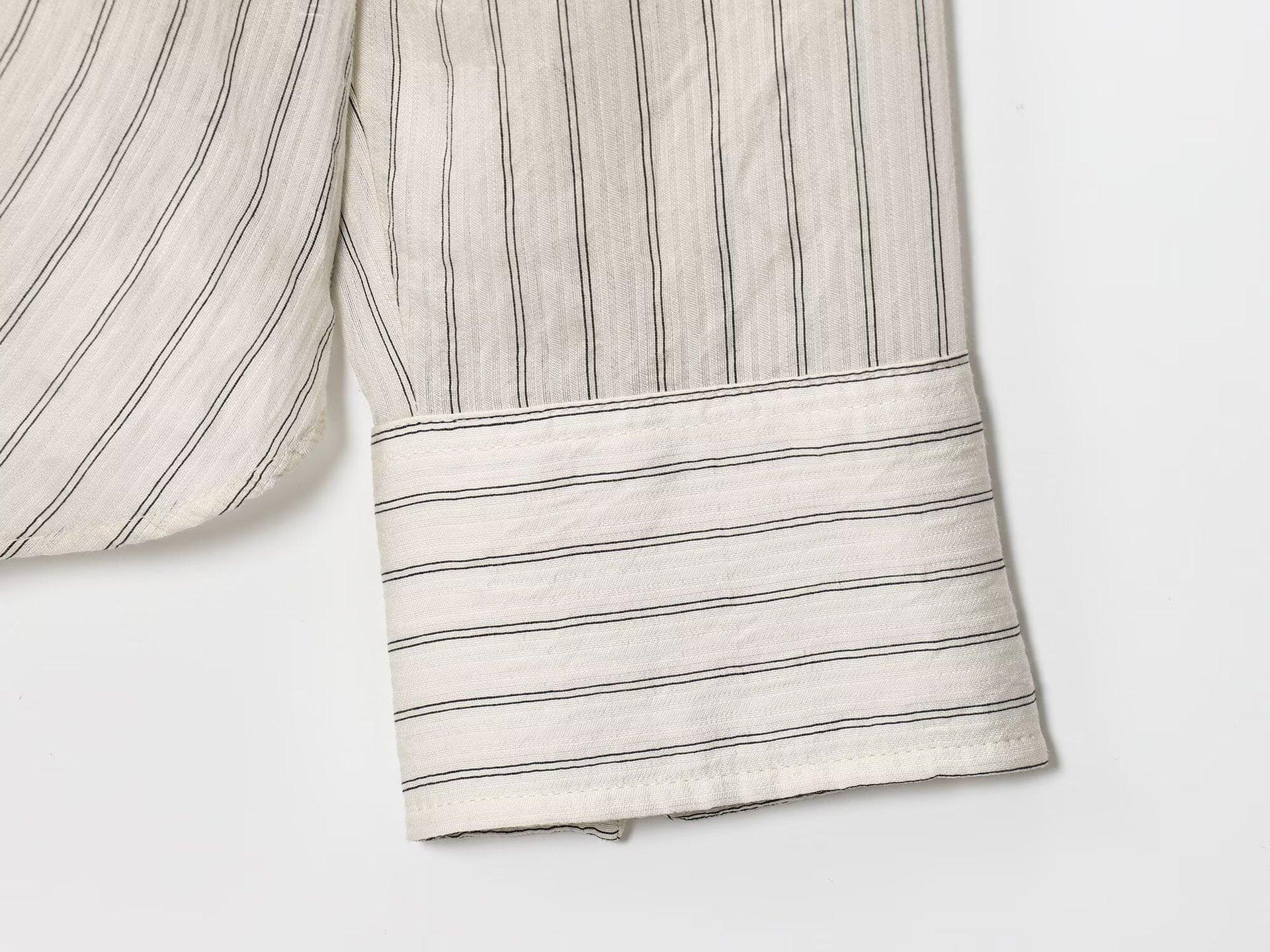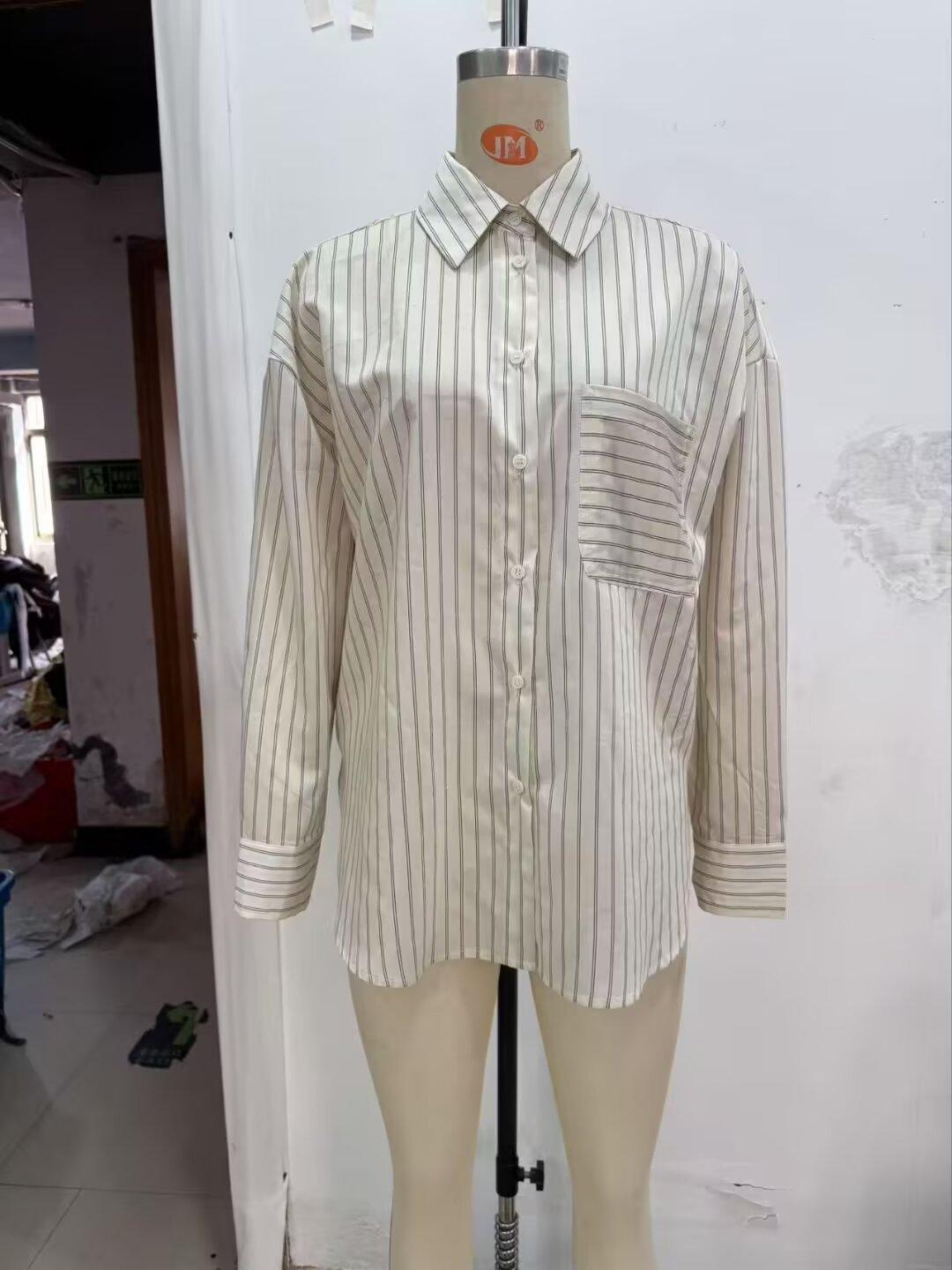 Moda transfronteriza para mujer europea y americana AliExpress más vendido moda casual minimalista a rayas cuello vuelto camisa de manga larga