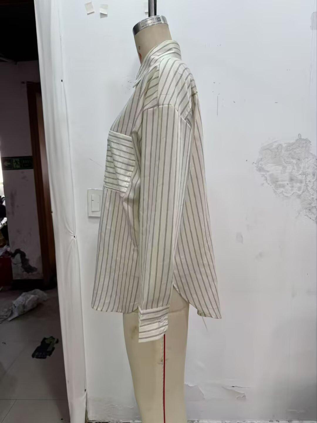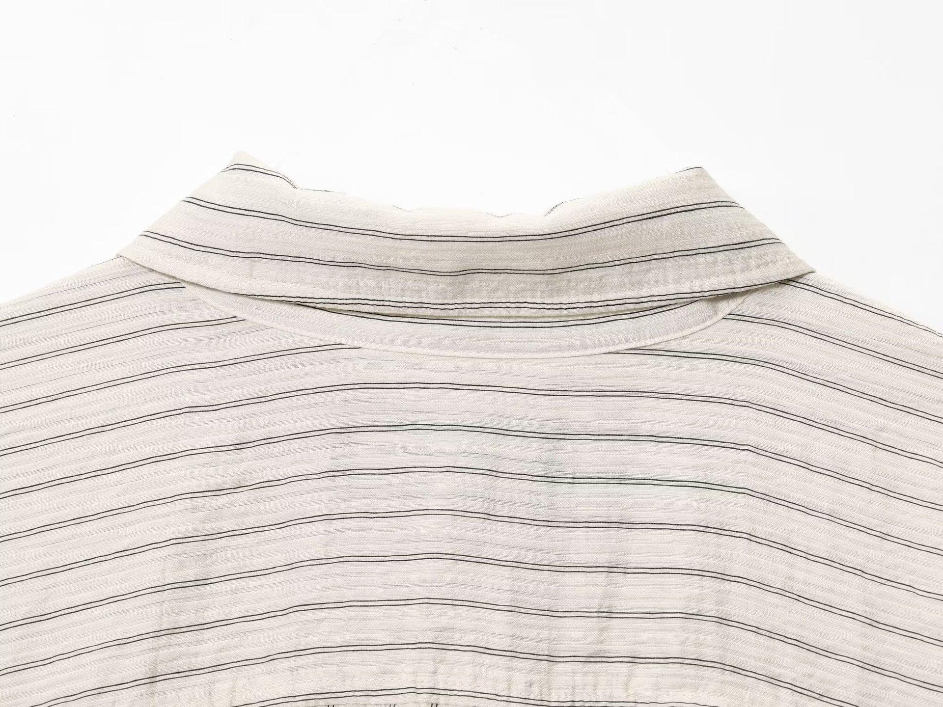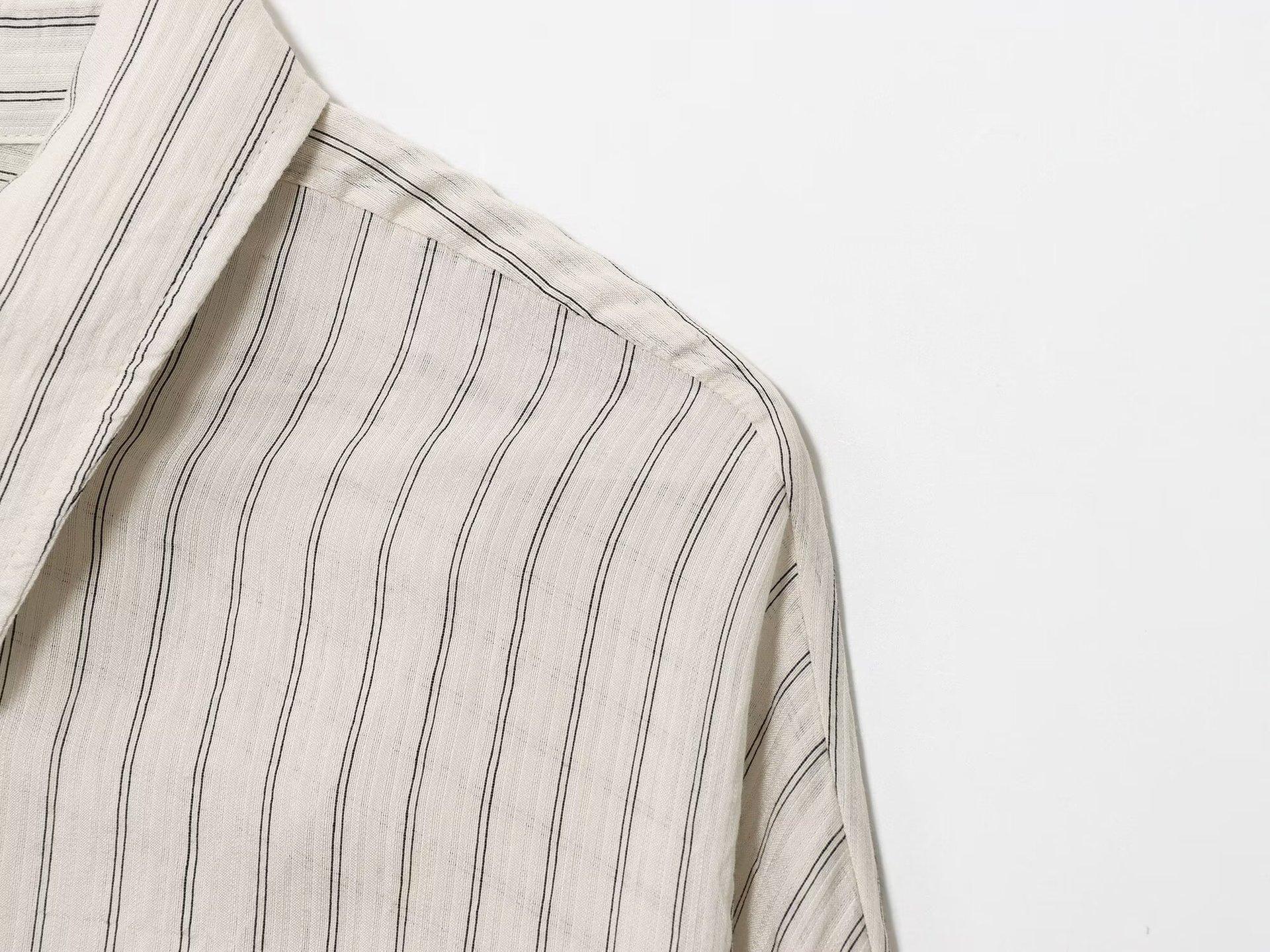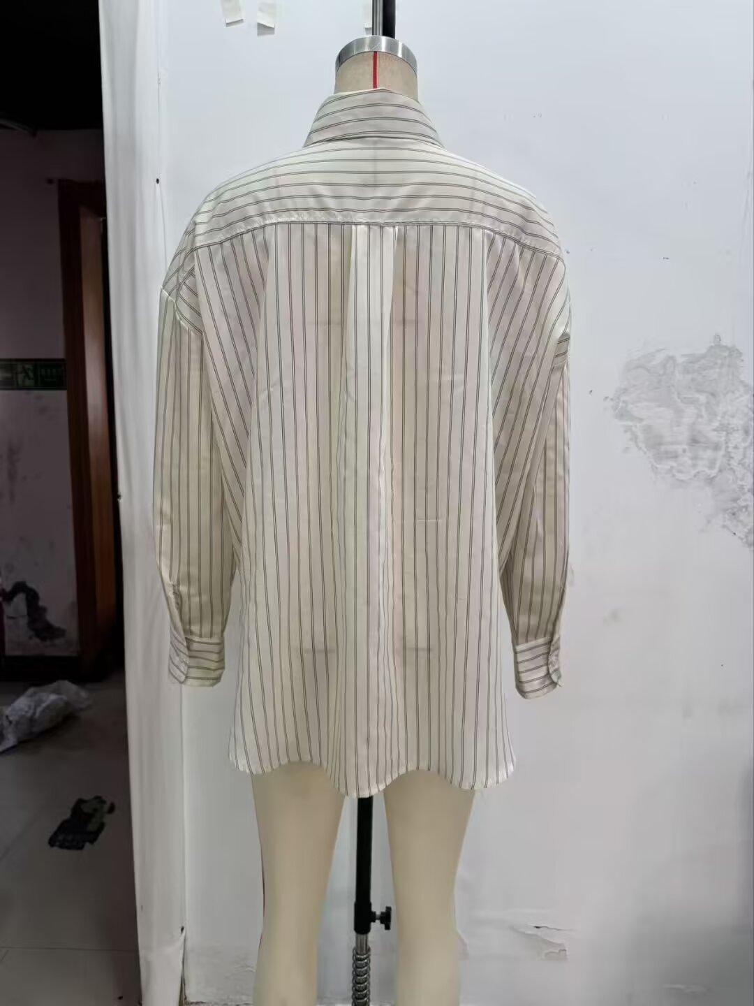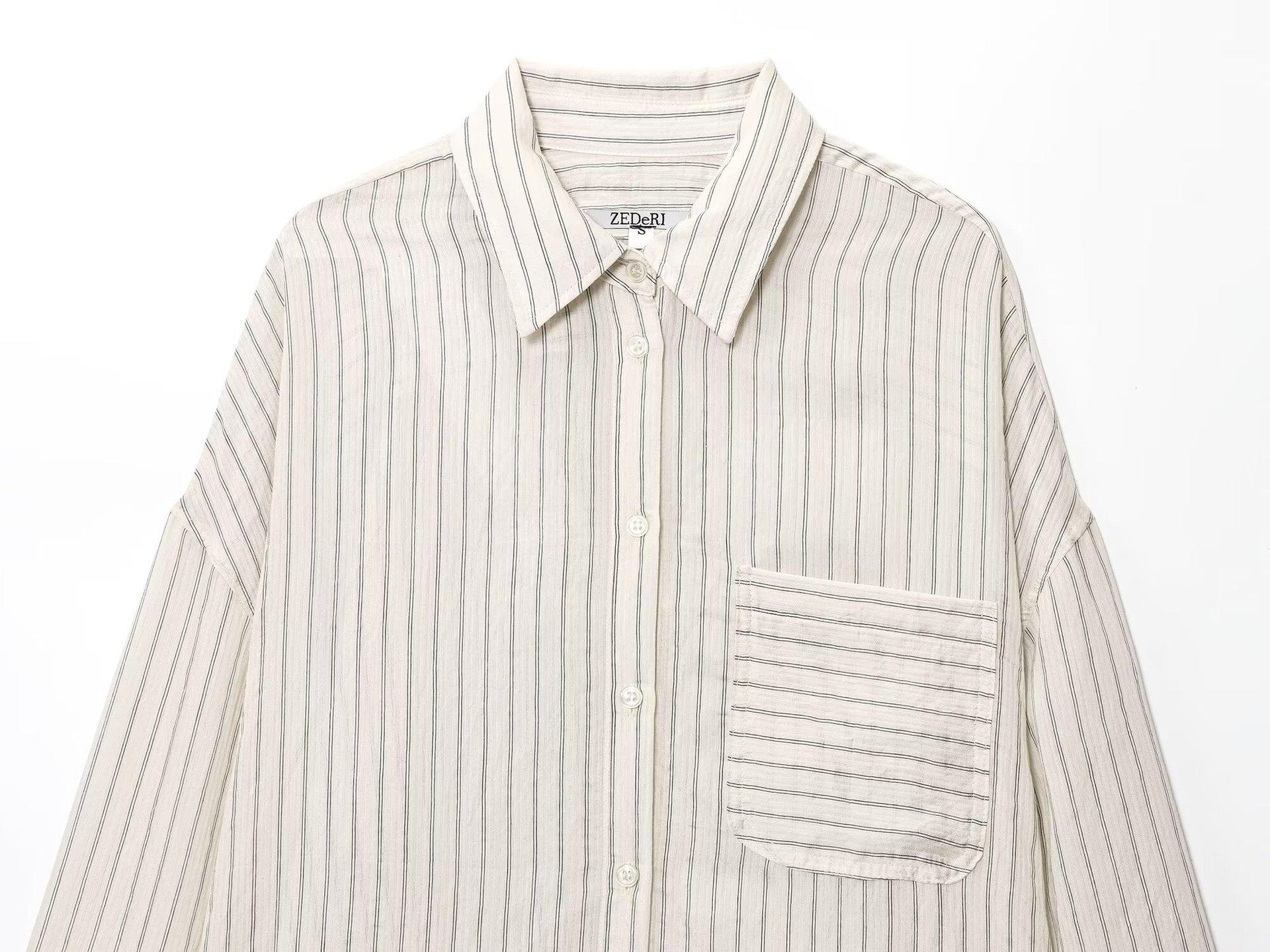 Moda transfronteriza para mujer europea y americana AliExpress más vendido moda casual minimalista a rayas cuello vuelto camisa de manga larga