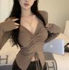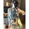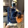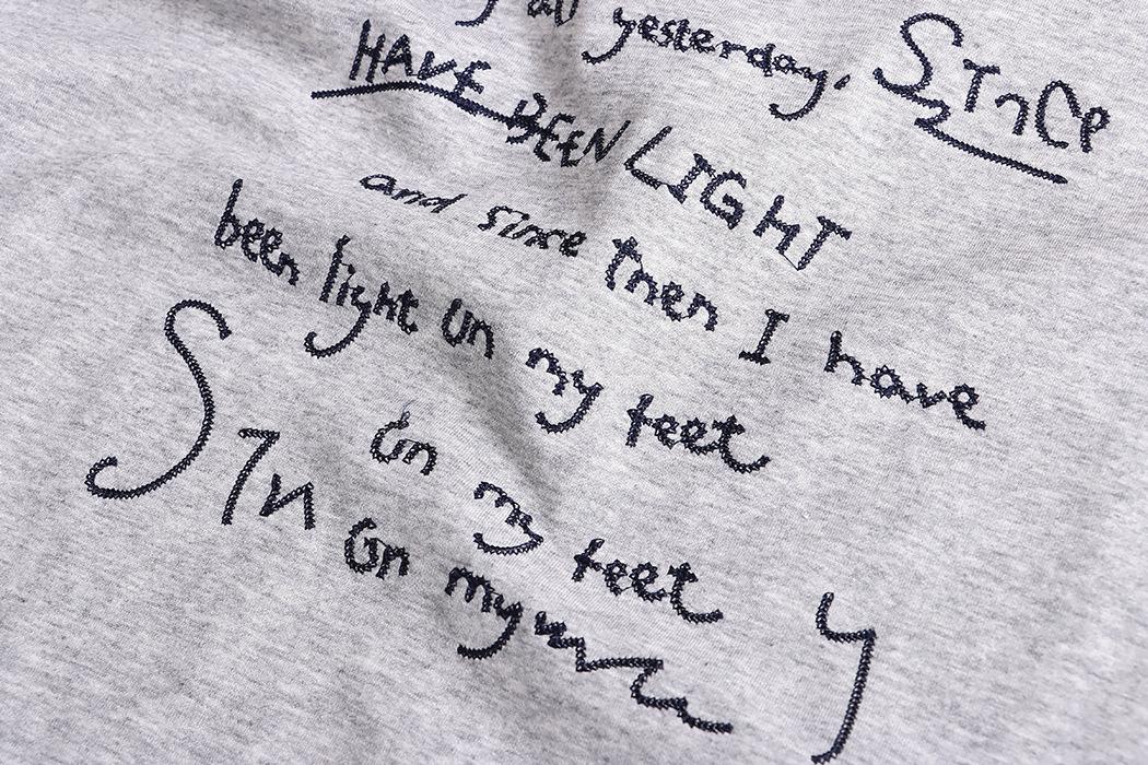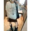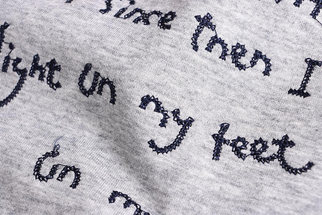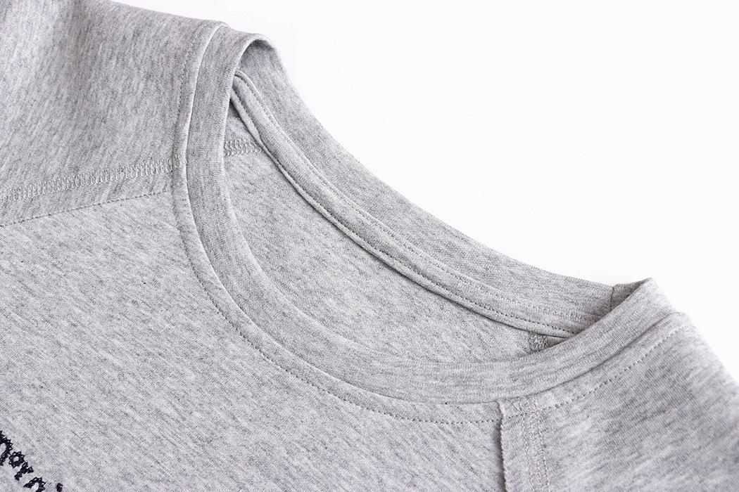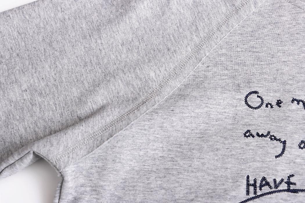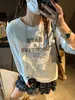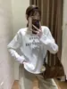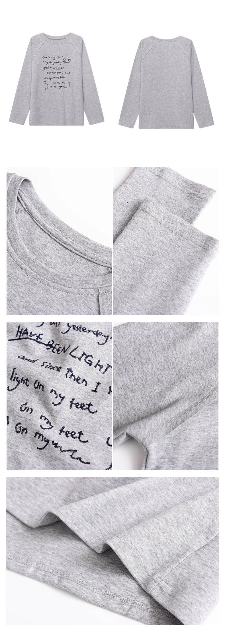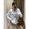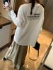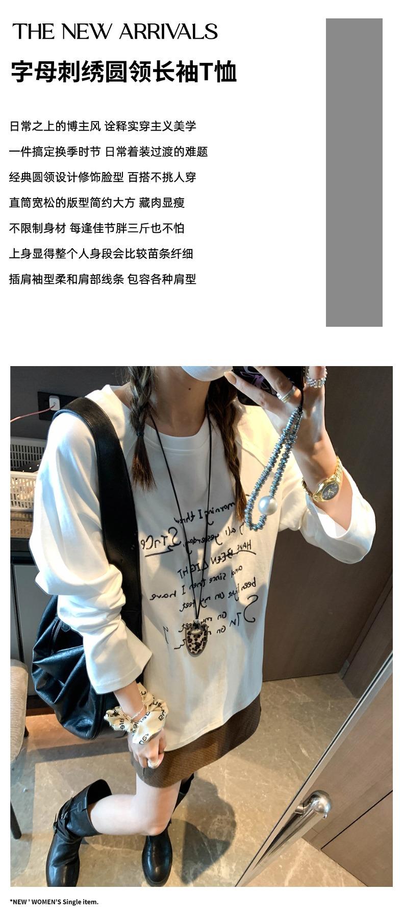 Moqie Estilo Propio de Blogger Americano Minimalista Bordado de Letras Cuello Redondo Holgado Casual Manga Larga Camiseta MQ0791