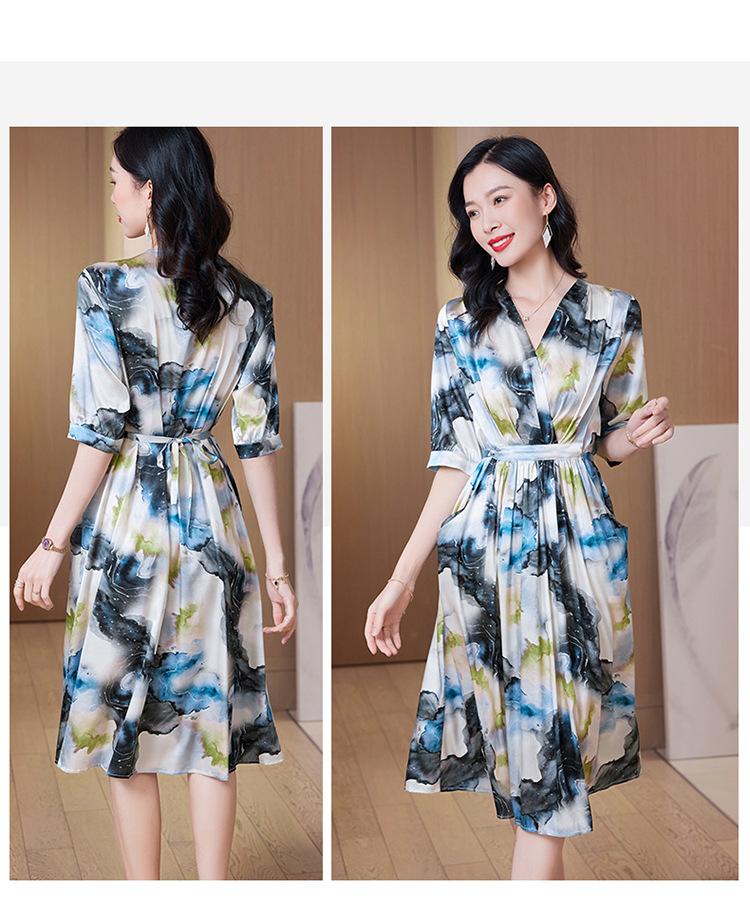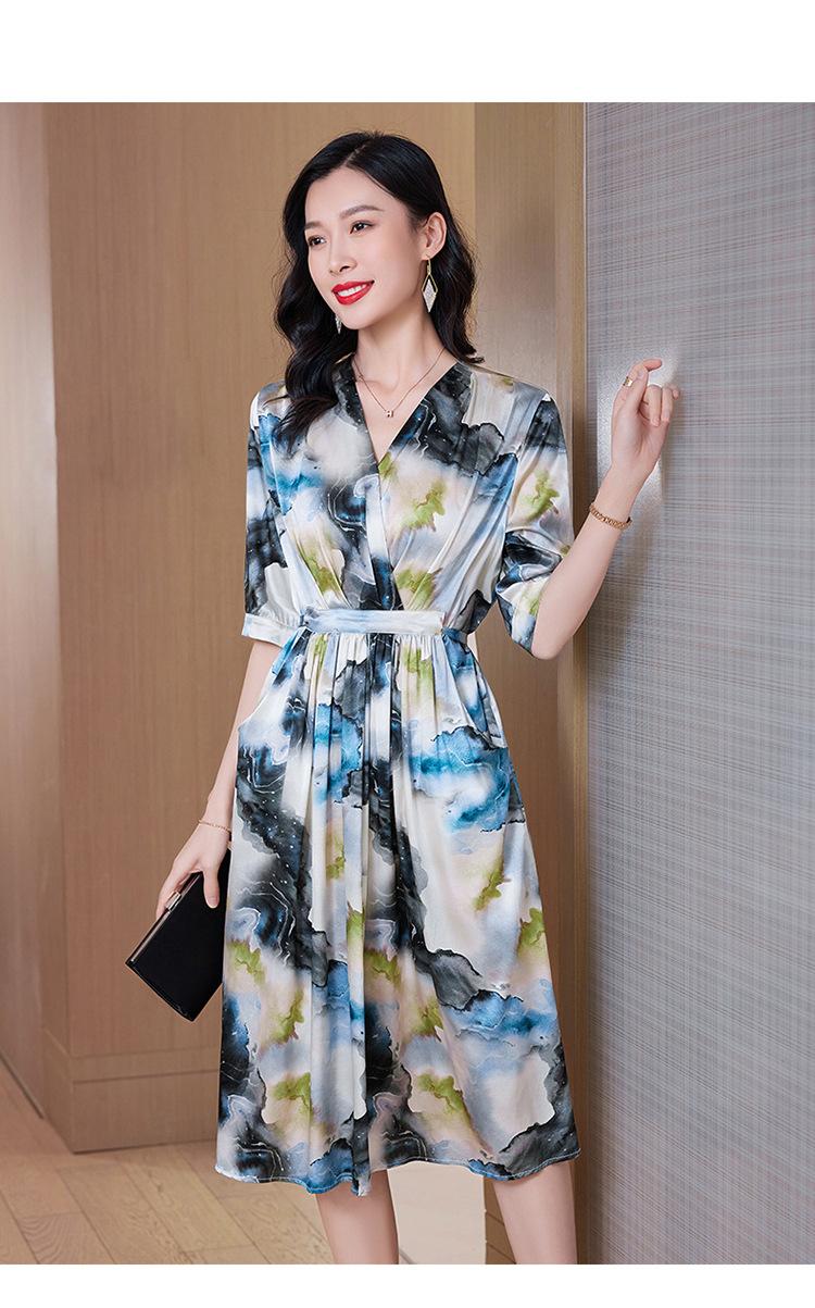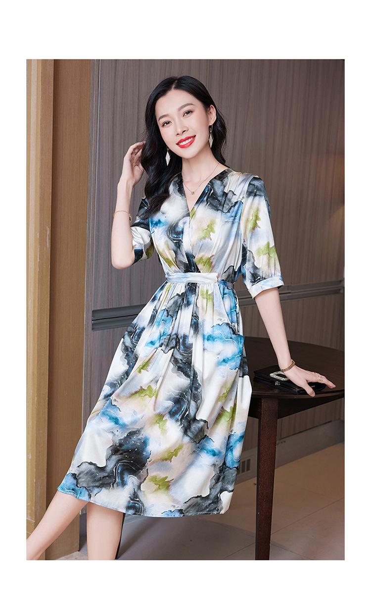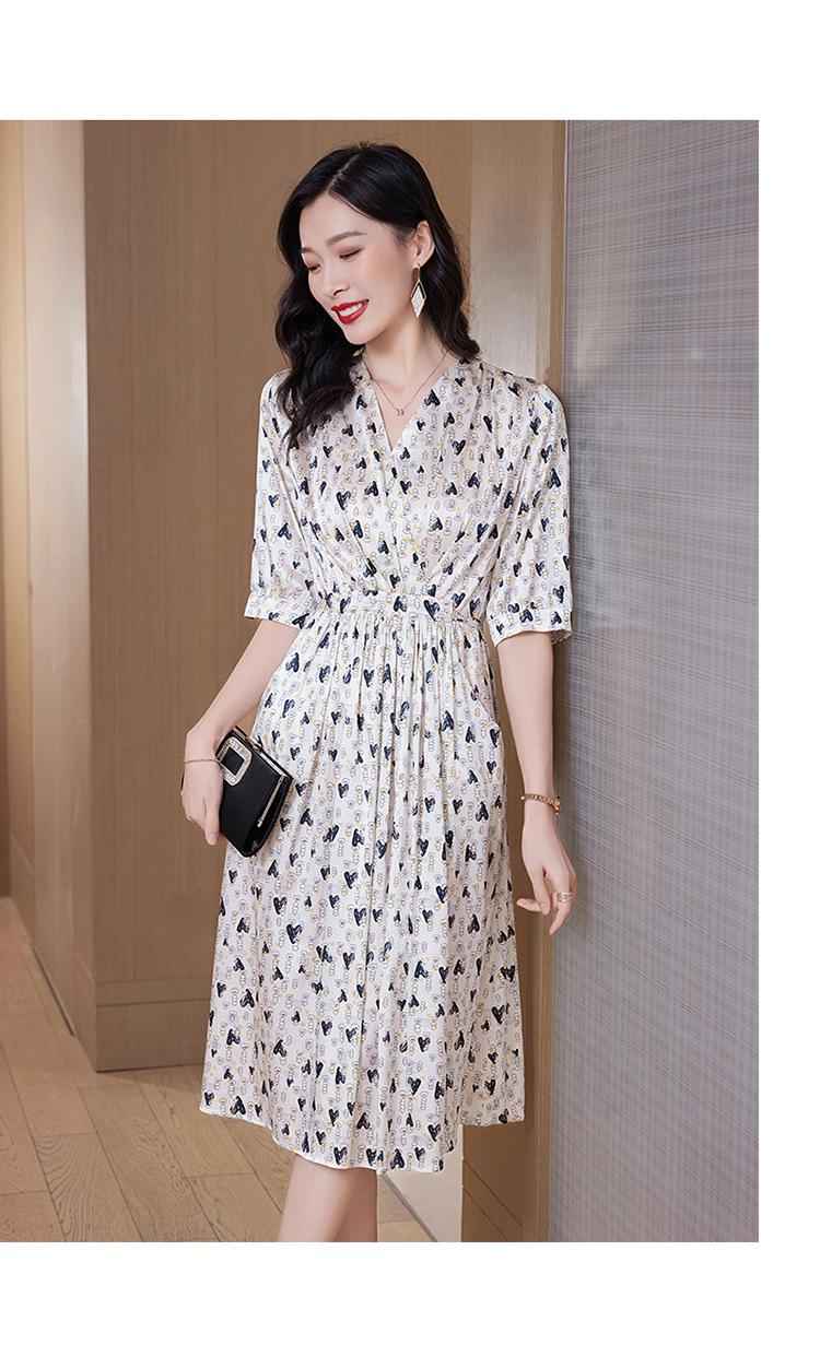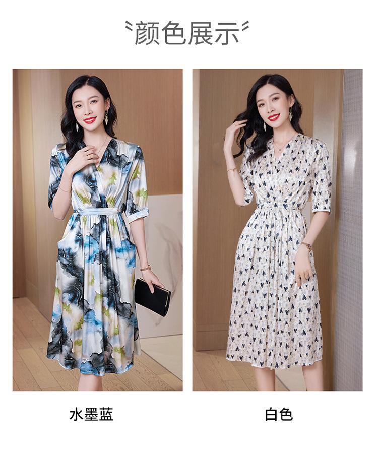 Vestido Nuevo de Verano, Vestido de Seda de Largo Medio Moderno y Fluido con Cintura Alta, Efecto Adelgazante
