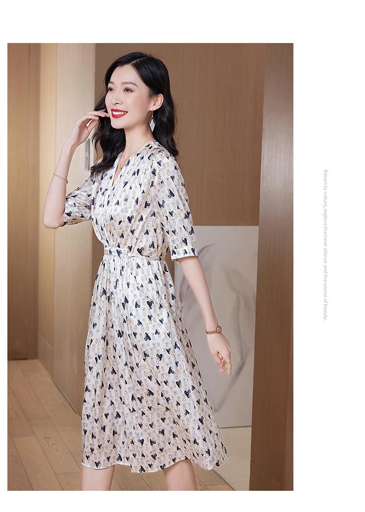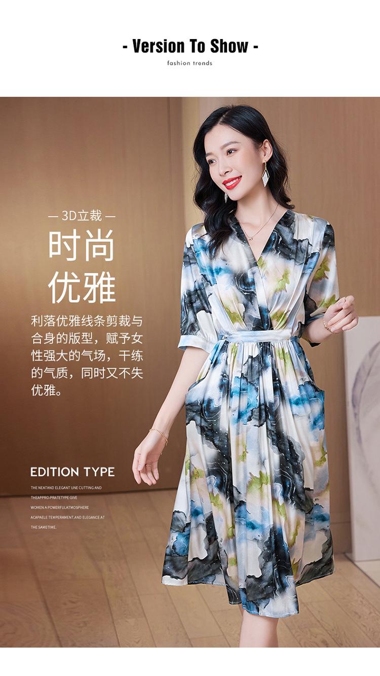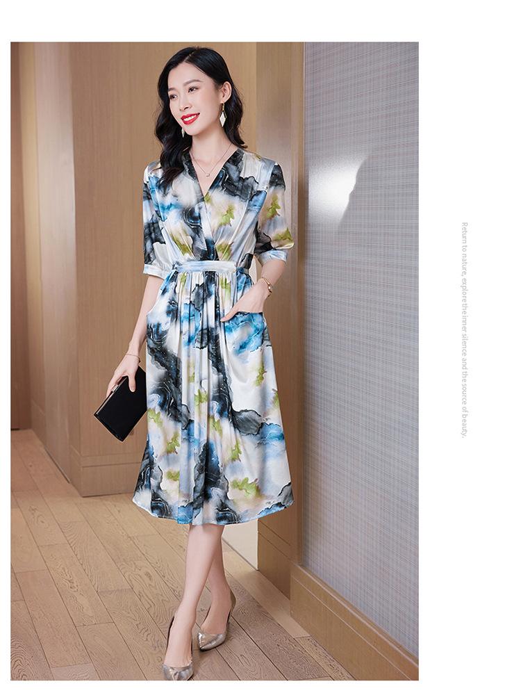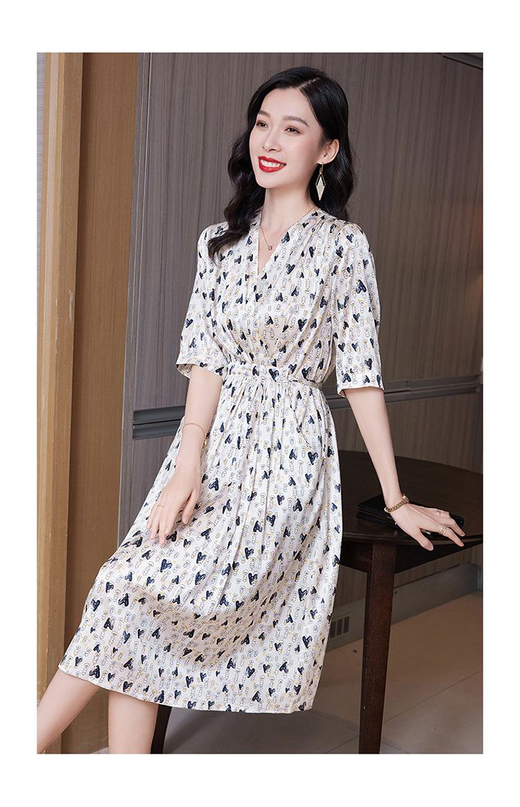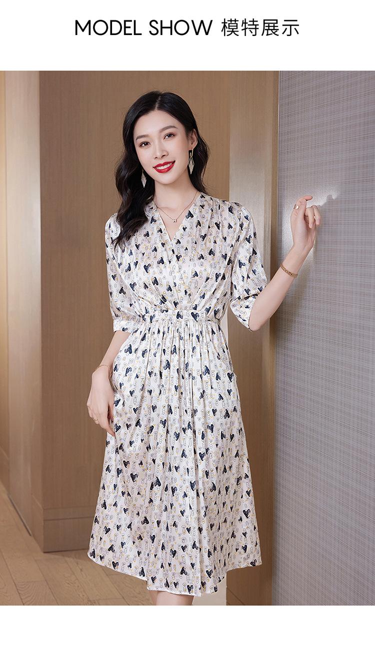 Vestido Nuevo de Verano, Vestido de Seda de Largo Medio Moderno y Fluido con Cintura Alta, Efecto Adelgazante