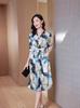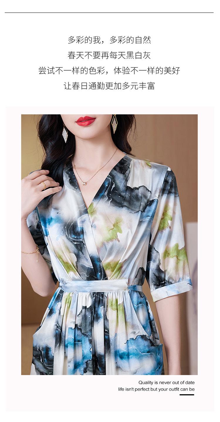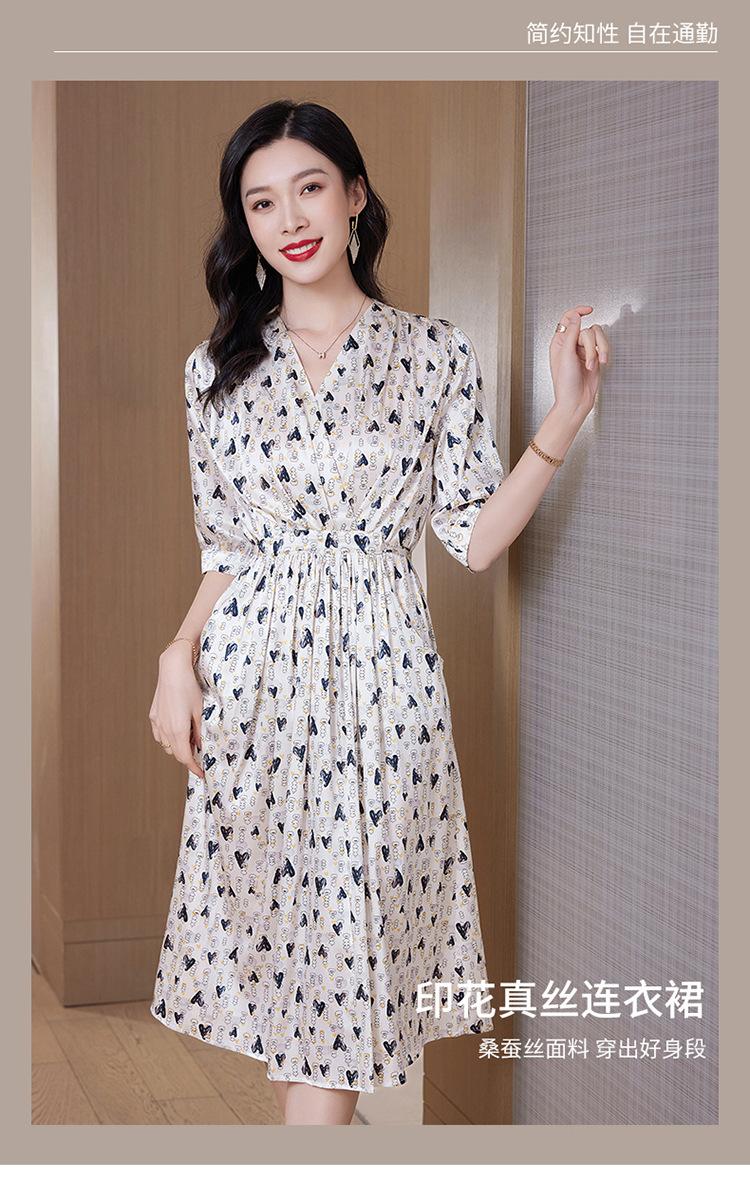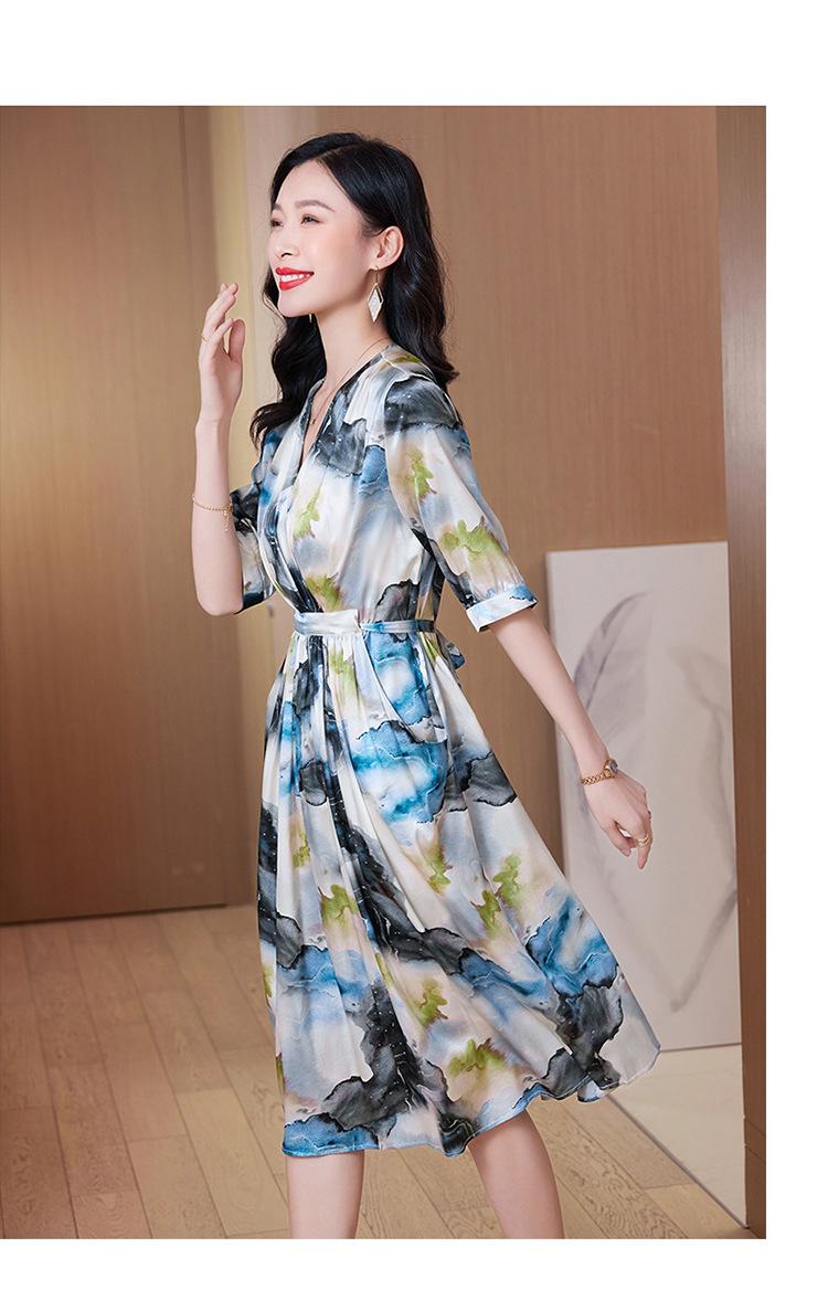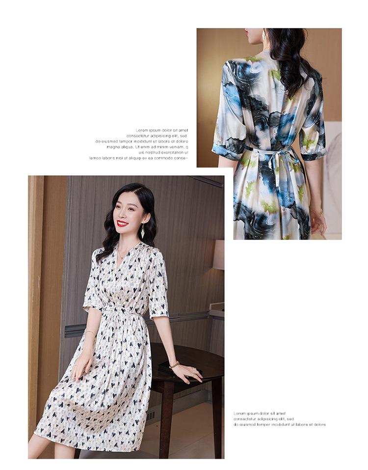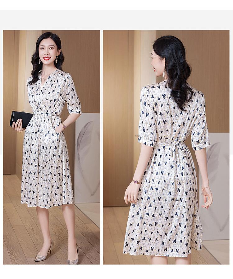 Vestido Nuevo de Verano, Vestido de Seda de Largo Medio Moderno y Fluido con Cintura Alta, Efecto Adelgazante