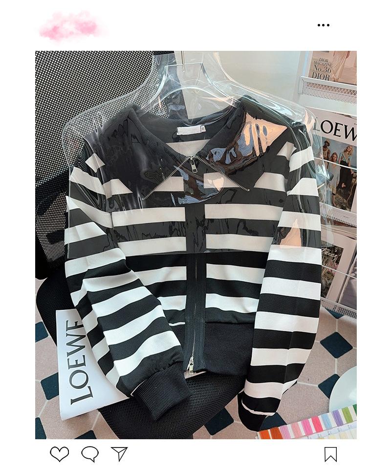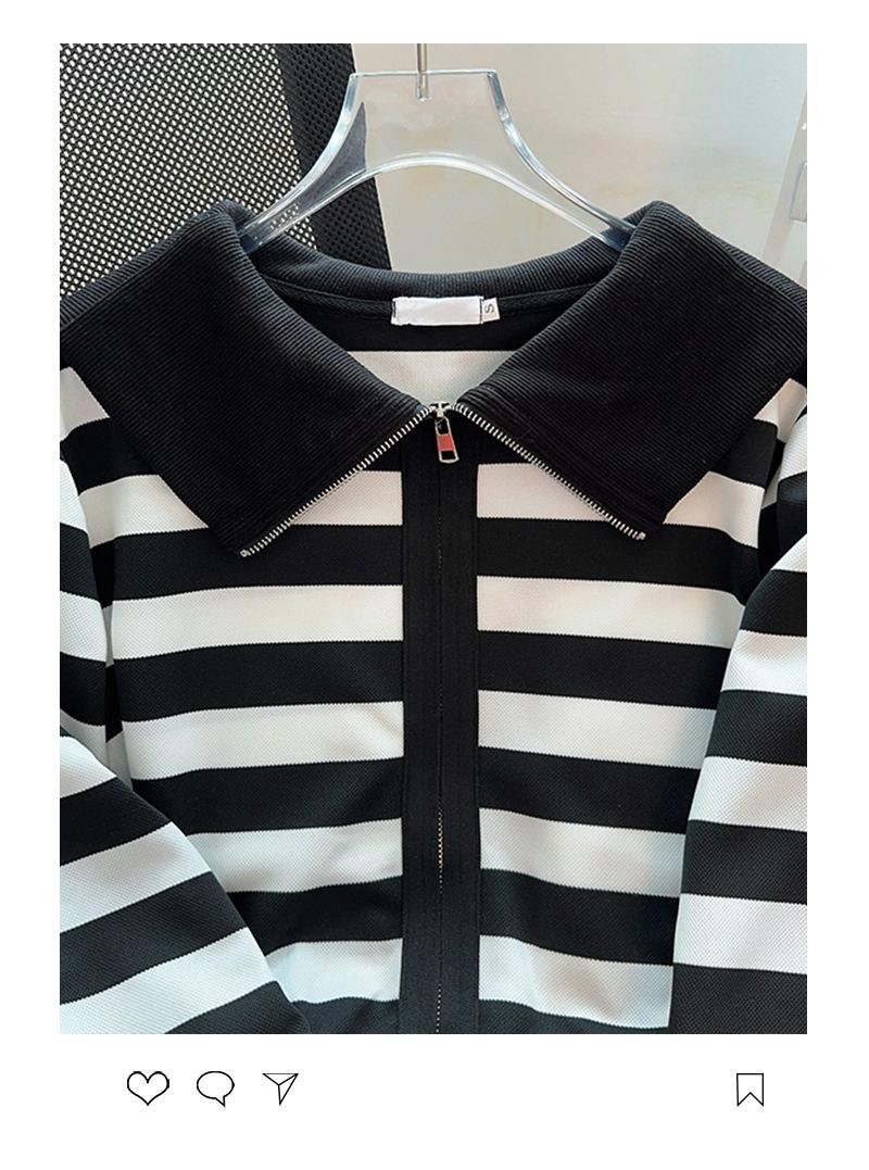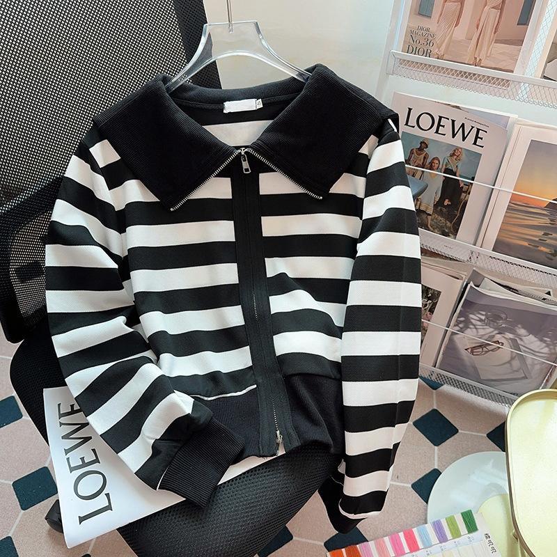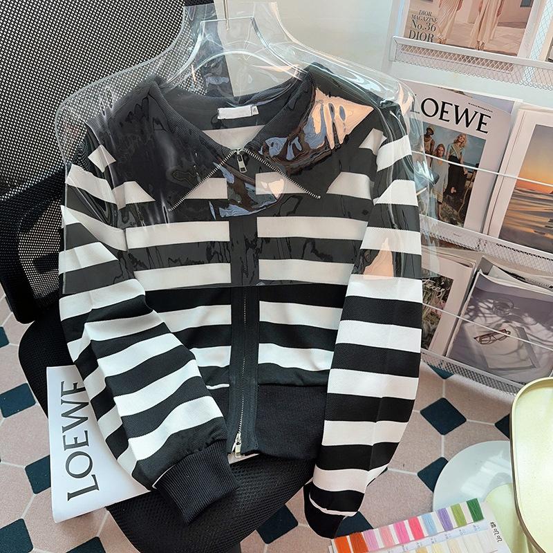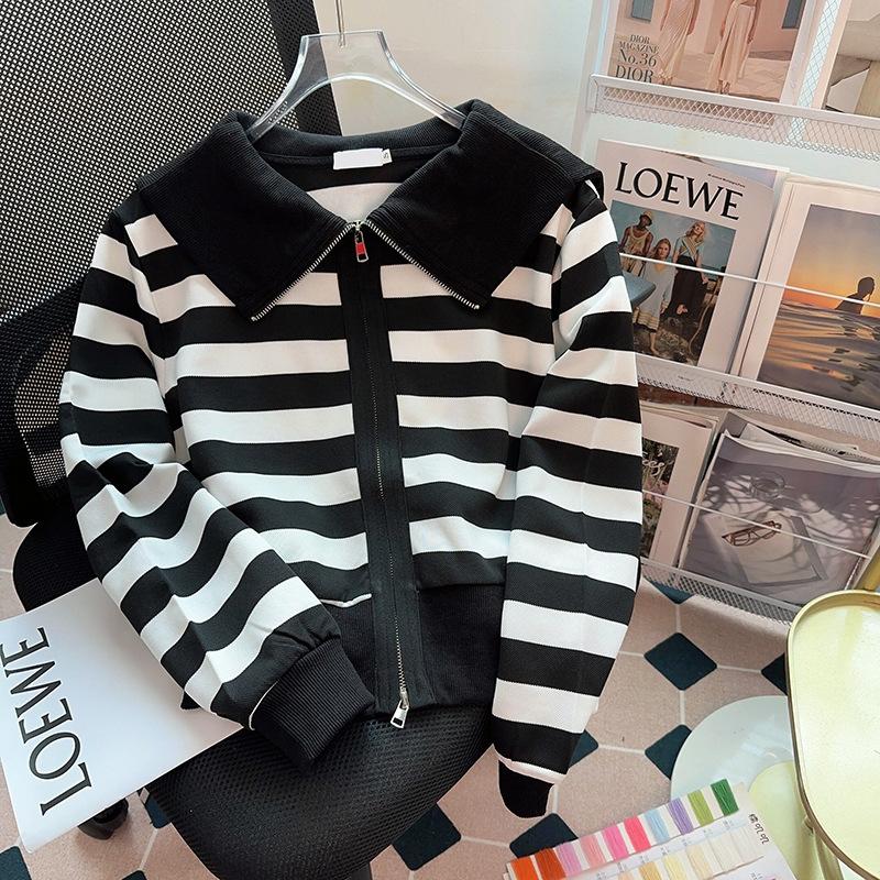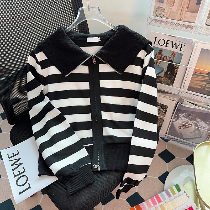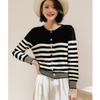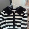 Otoño 2025 Nueva Muñeca Cuello Rayado Manga Larga Chaqueta Corta Casual Coreano Cárdigan Sentido del Diseño Nicho Top