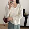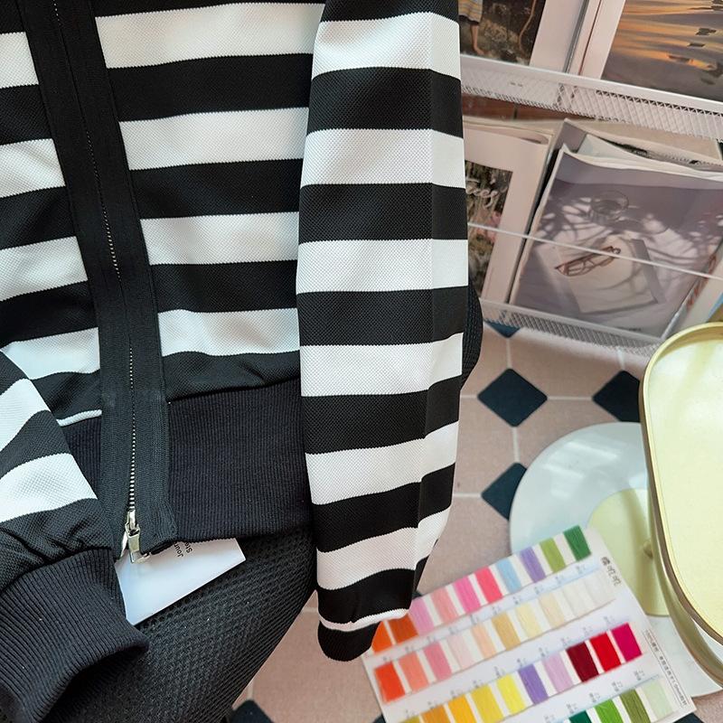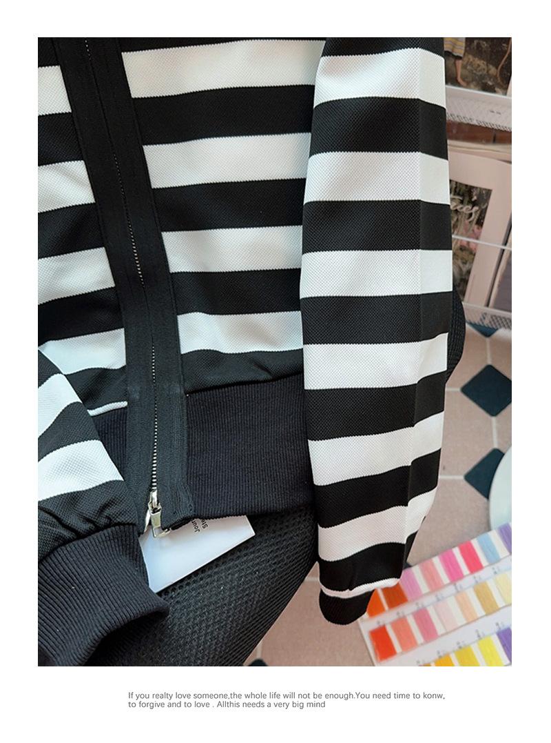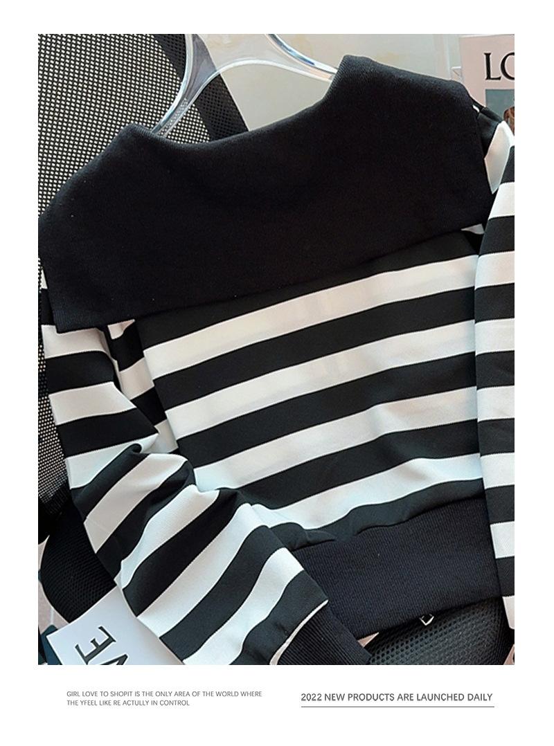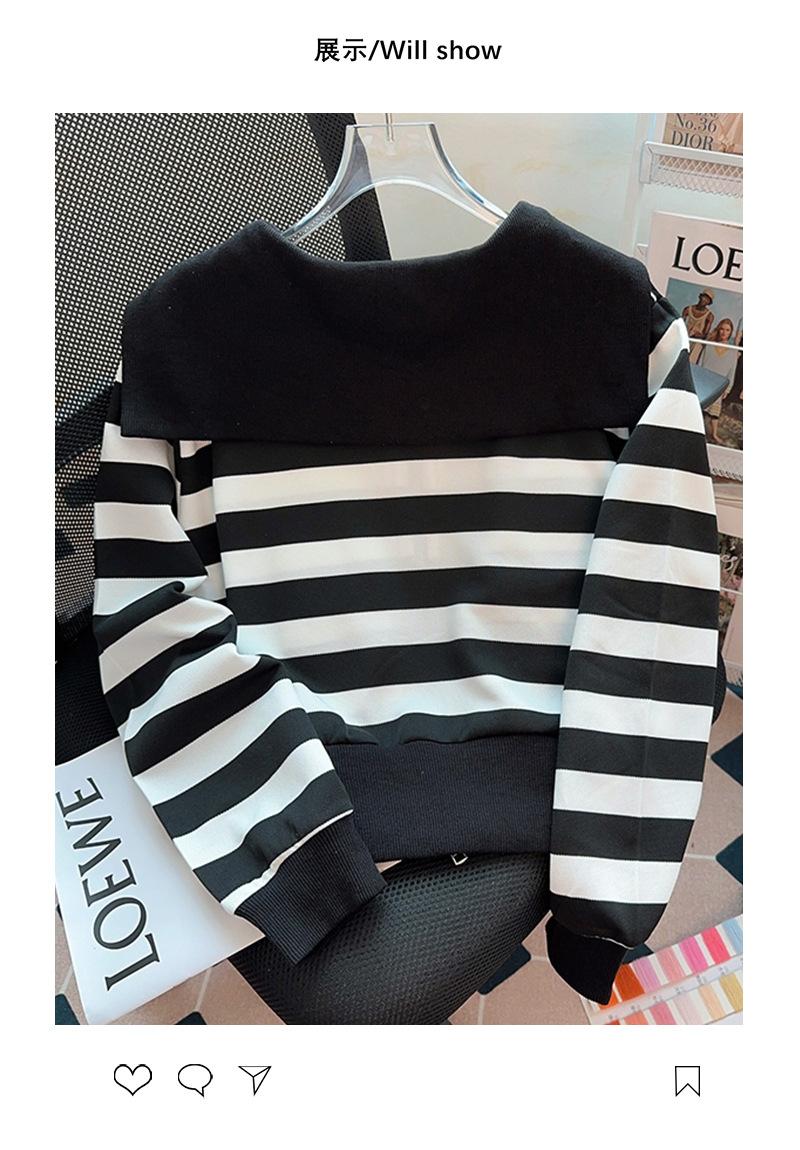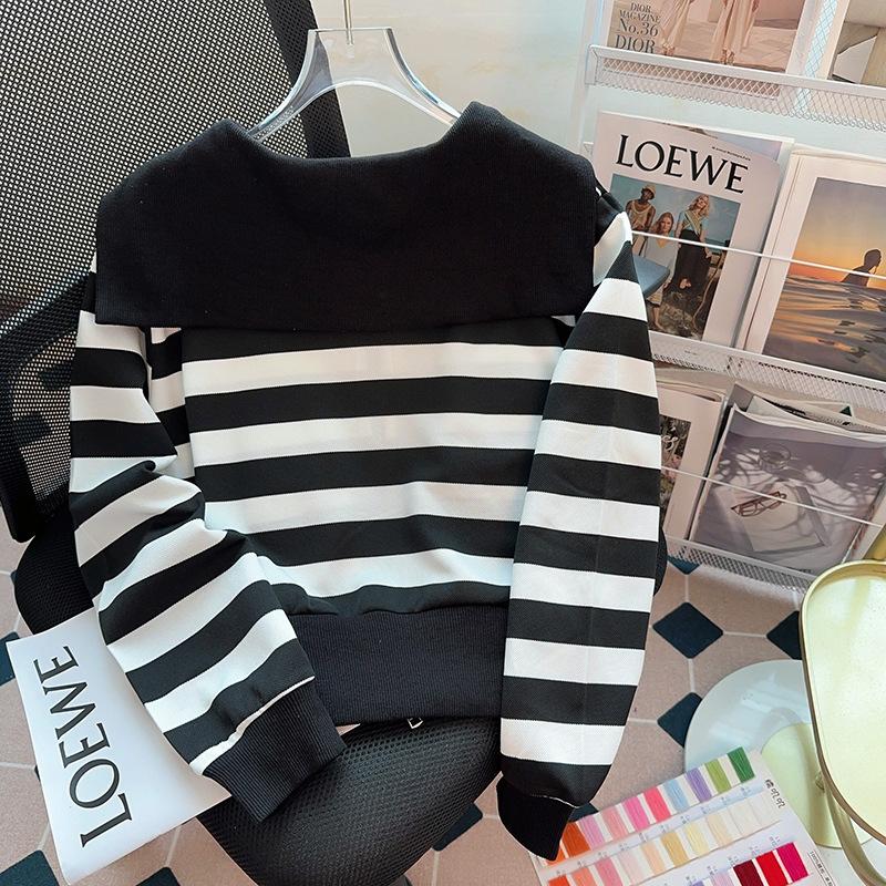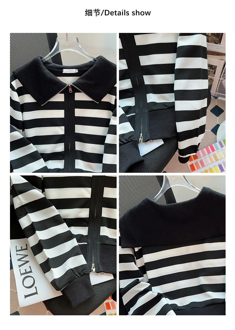 Otoño 2025 Nueva Muñeca Cuello Rayado Manga Larga Chaqueta Corta Casual Coreano Cárdigan Sentido del Diseño Nicho Top
