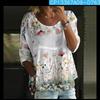 2025 Nueva Ropa de Mujer Europea y Americana de Comercio Exterior Transfronterizo Amazon AliExpress Estación Independiente Top de Manga con Cuello Redondo Estampado