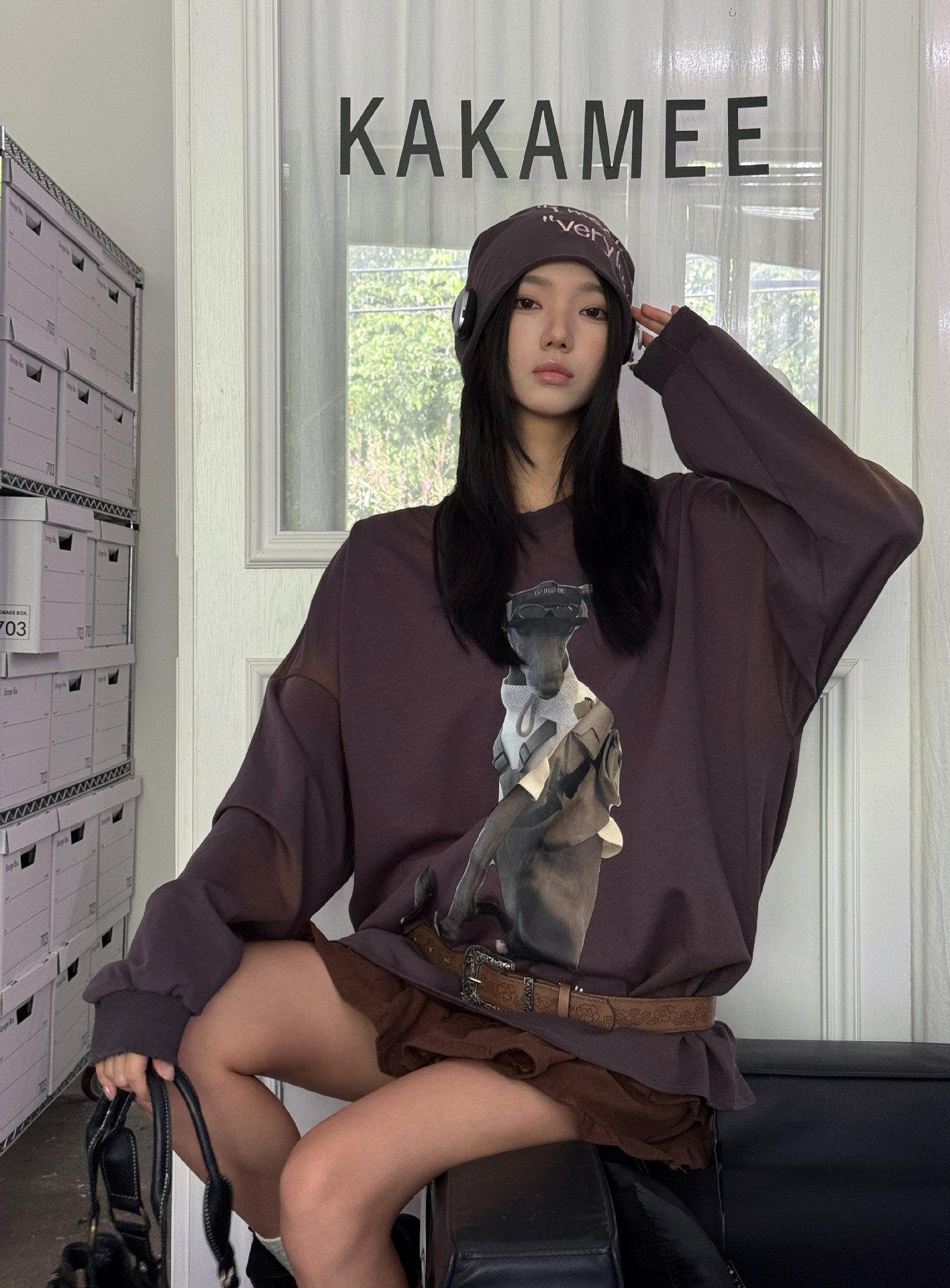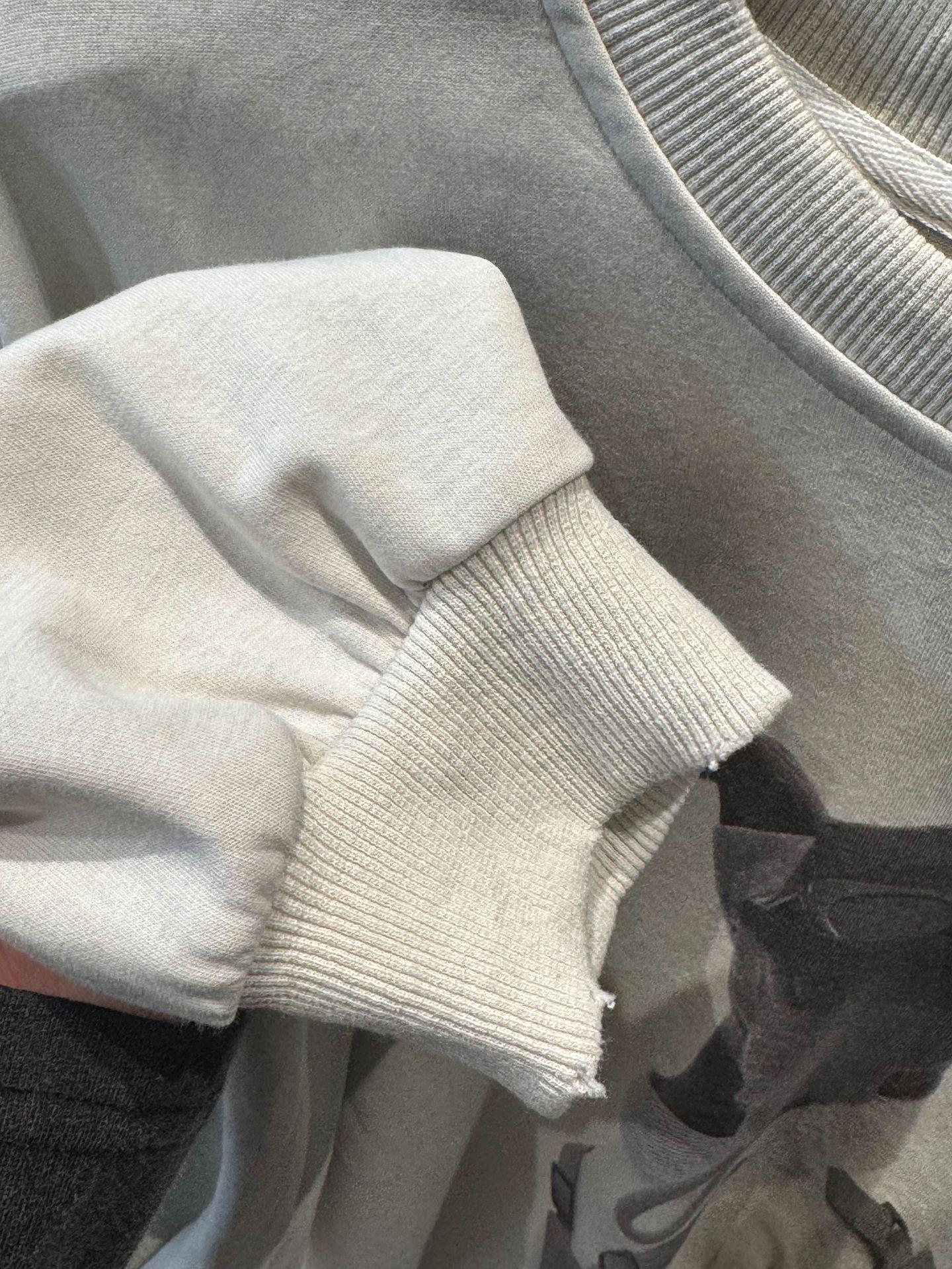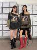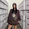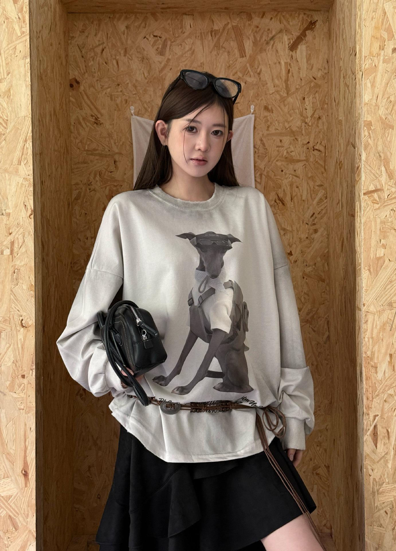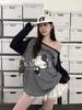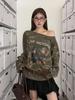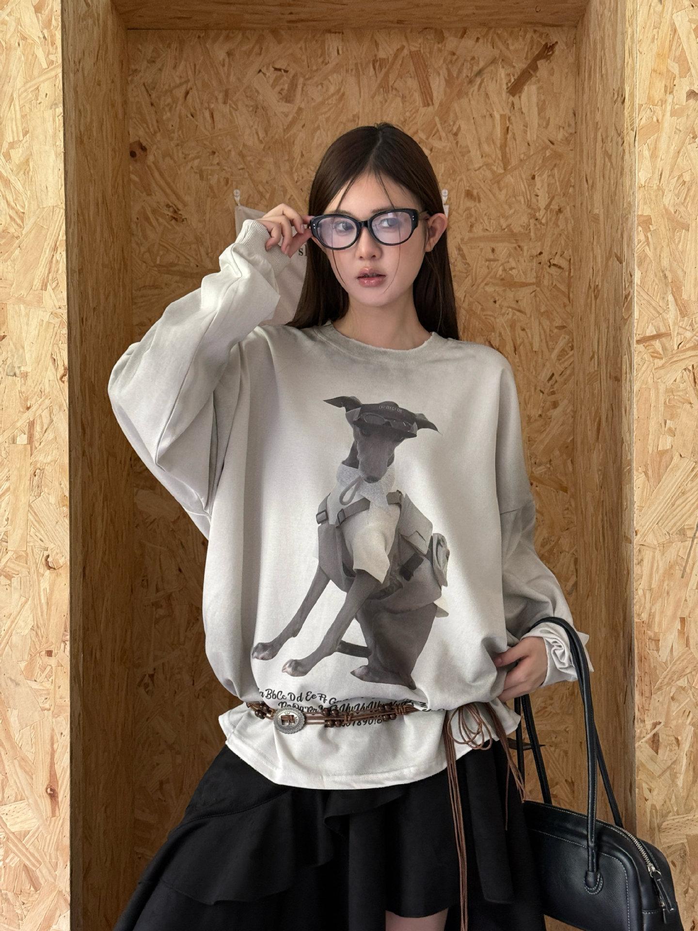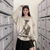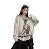 ME KAKAMEE Trece Líneas Otoño Americano Retro Tie-Dye Degradado Desgastado Oversized Manga Larga Camiseta Mujer S3621