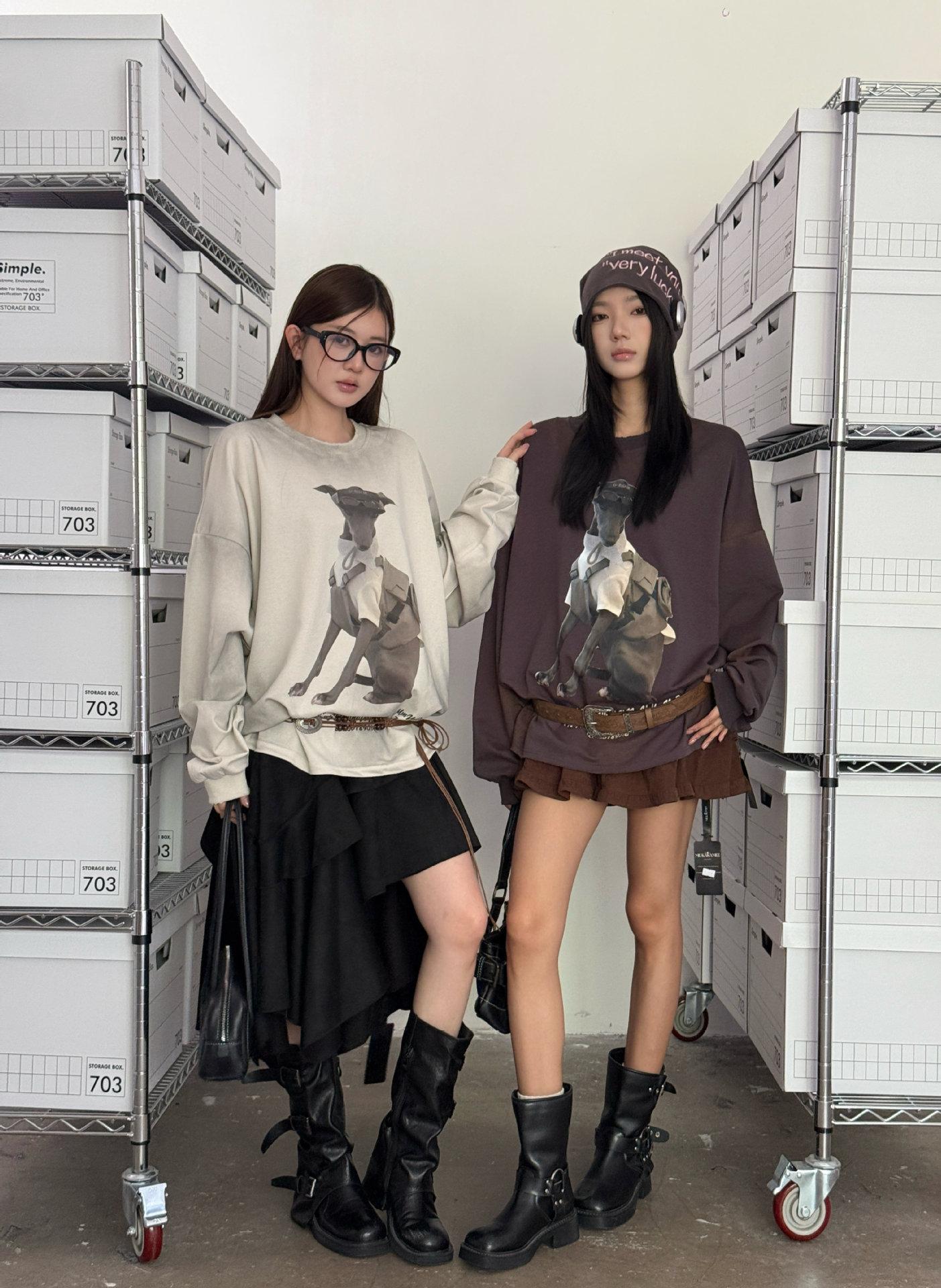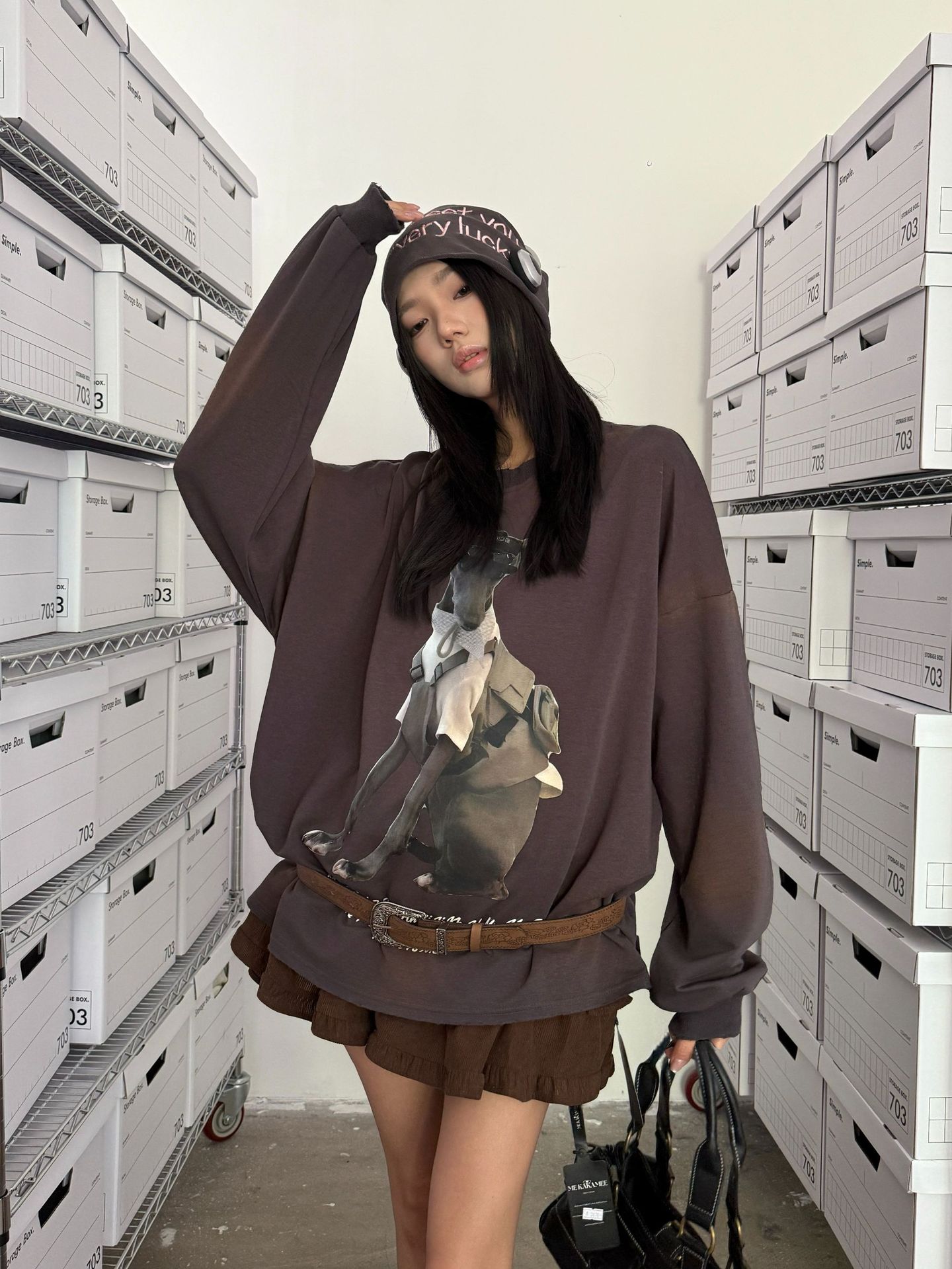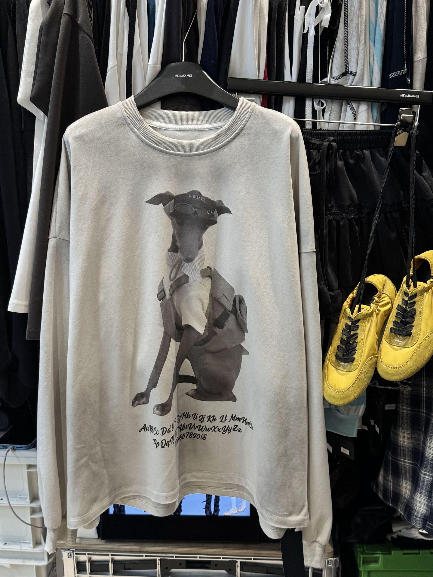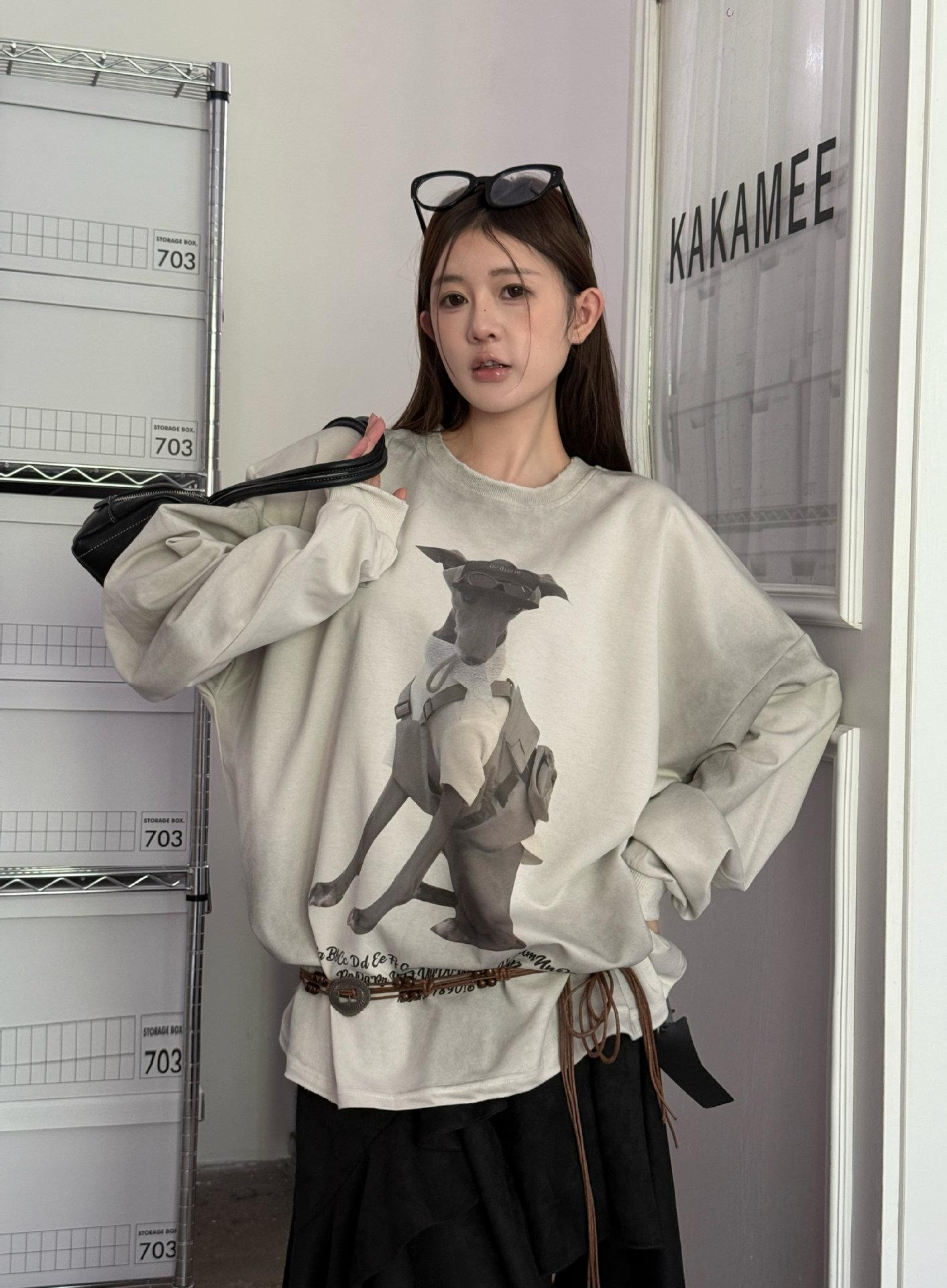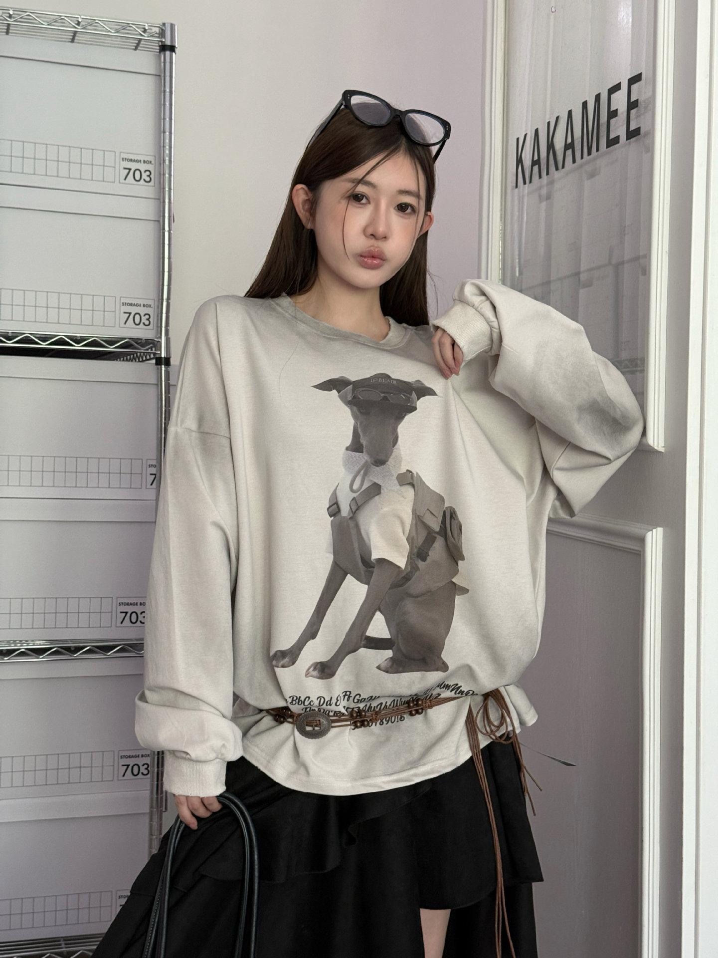 ME KAKAMEE Trece Líneas Otoño Americano Retro Tie-Dye Degradado Desgastado Oversized Manga Larga Camiseta Mujer S3621