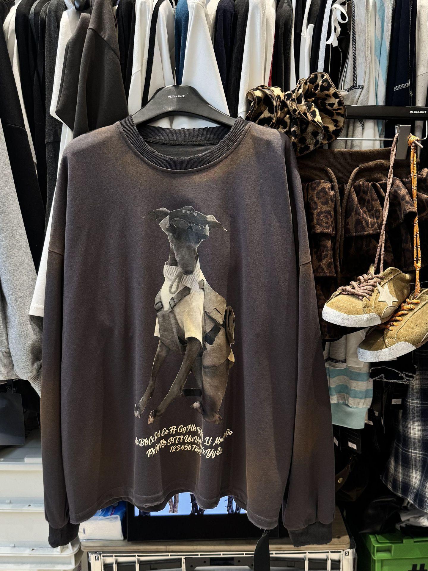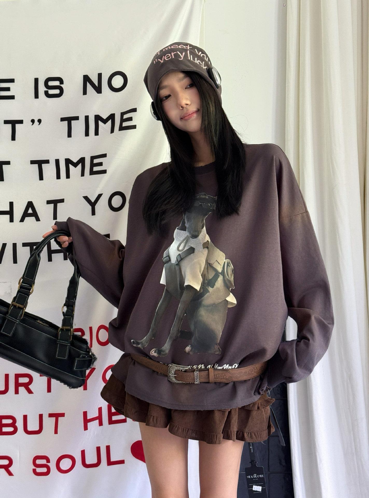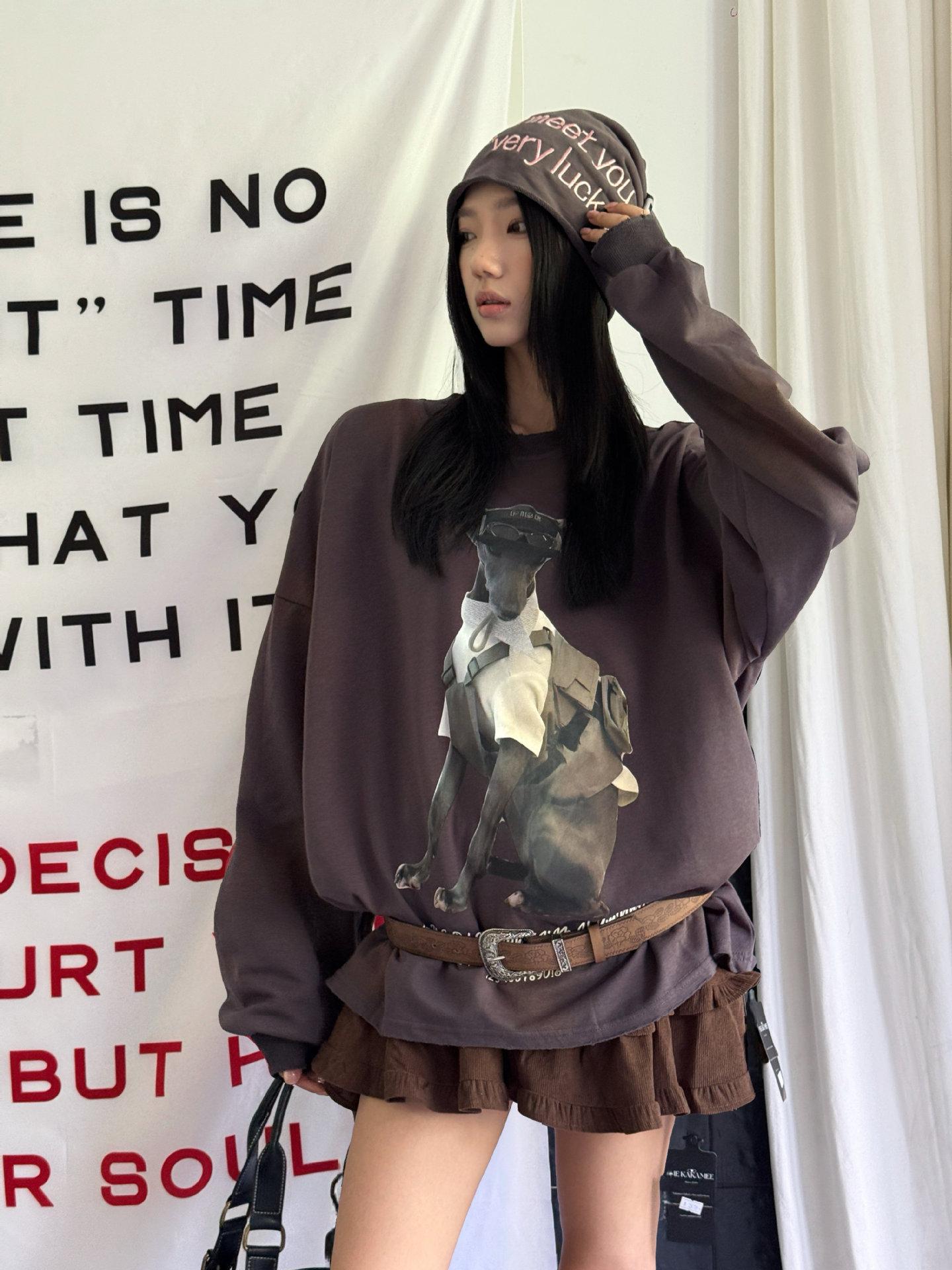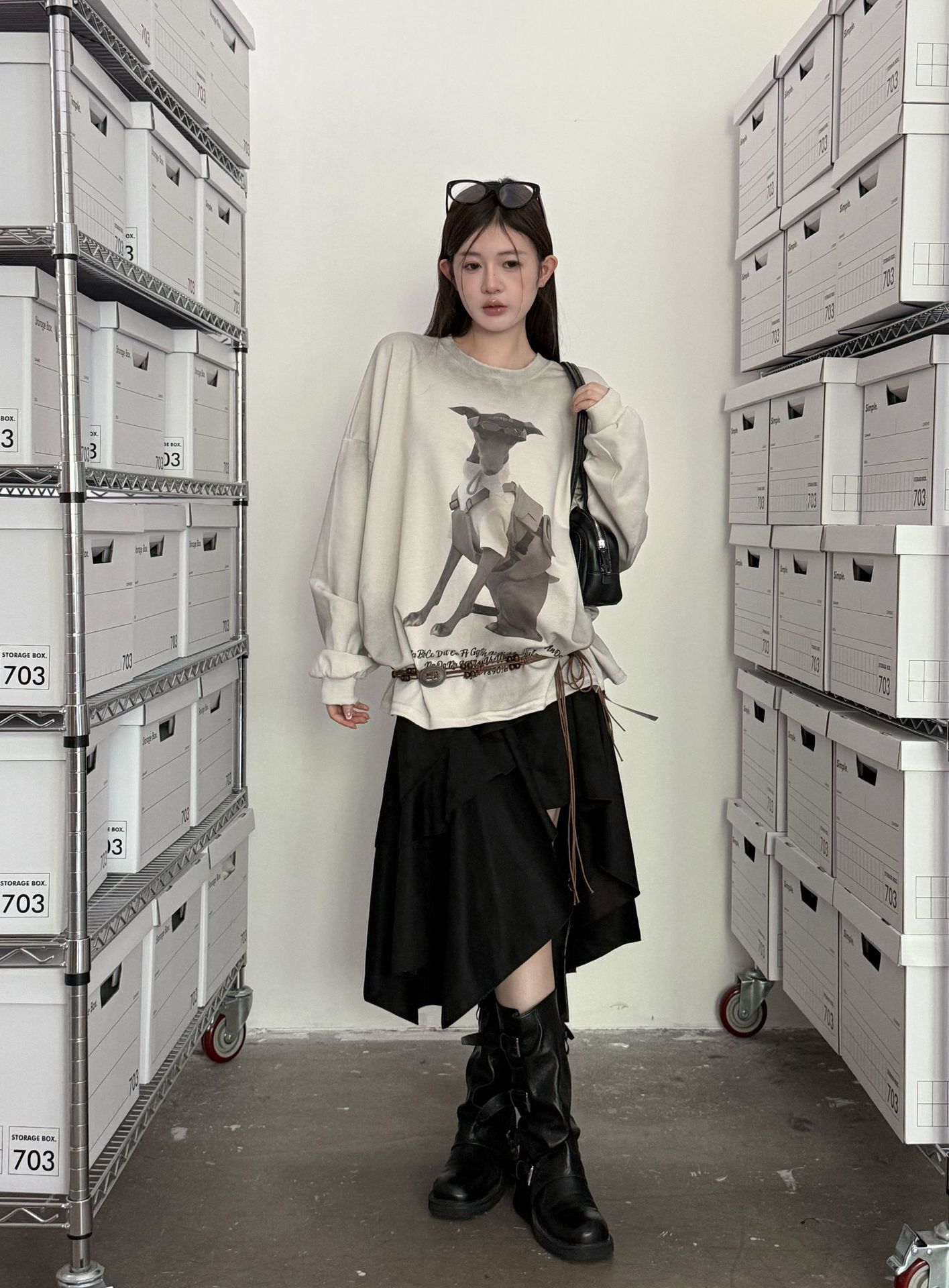 ME KAKAMEE Trece Líneas Otoño Americano Retro Tie-Dye Degradado Desgastado Oversized Manga Larga Camiseta Mujer S3621