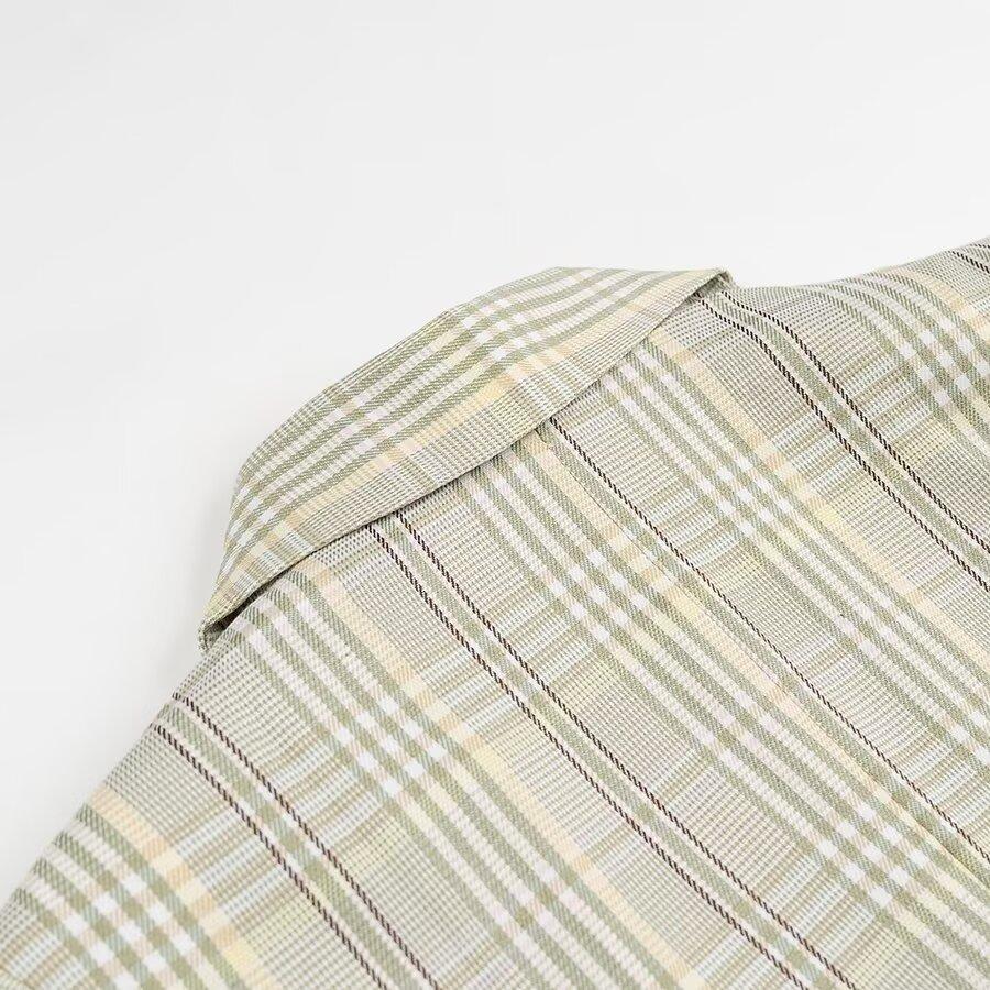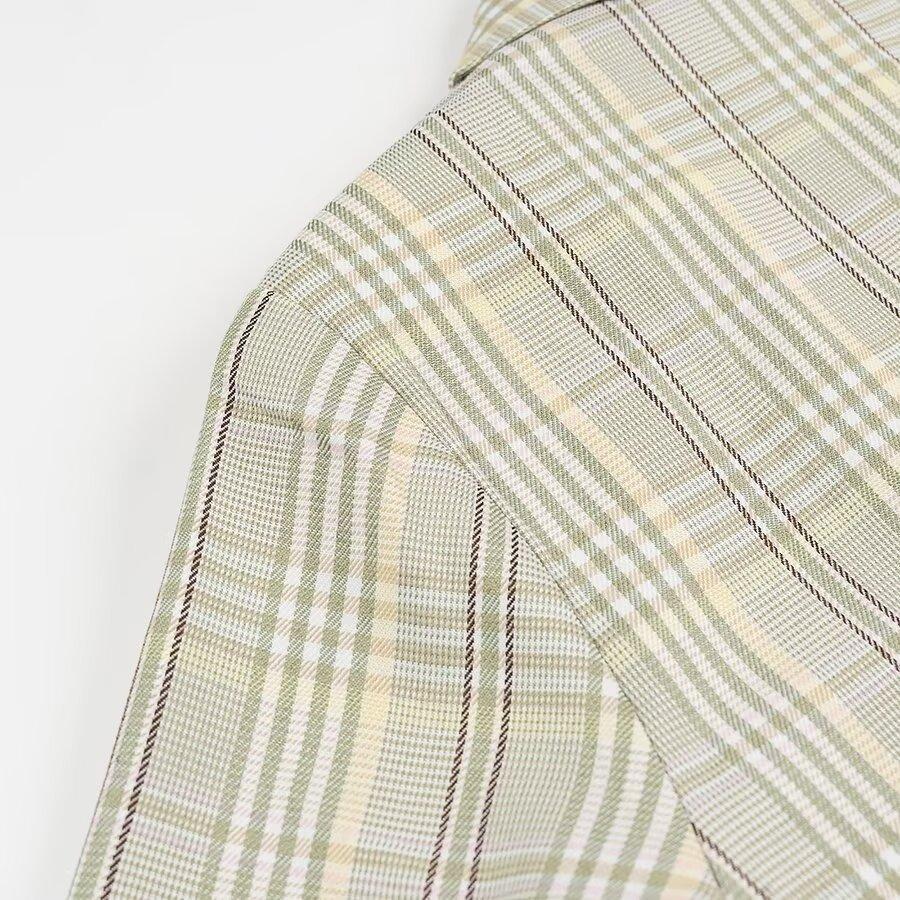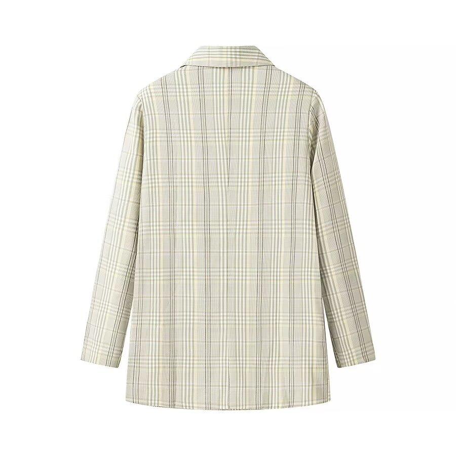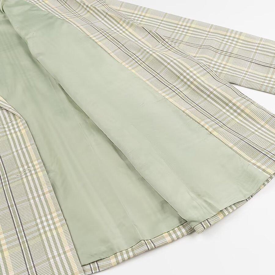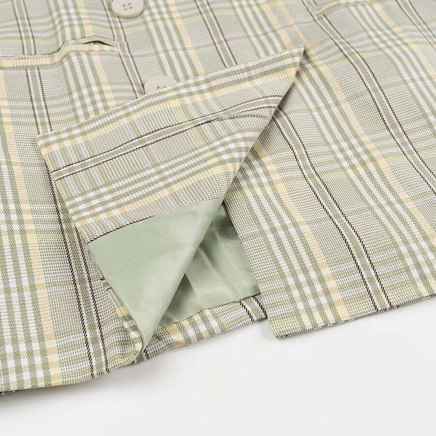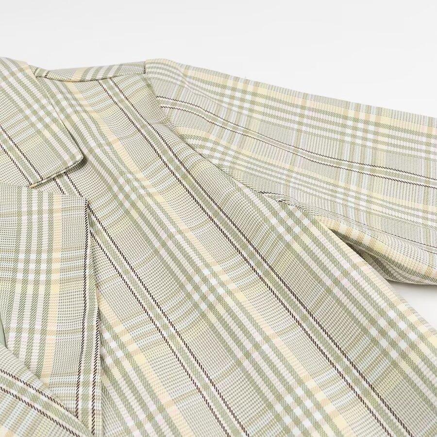 Ropa de mujer europea y americana transfronteriza al por mayor 2024 otoño e invierno nuevo temperamento suelto traje a cuadros verde fresco chaqueta traje