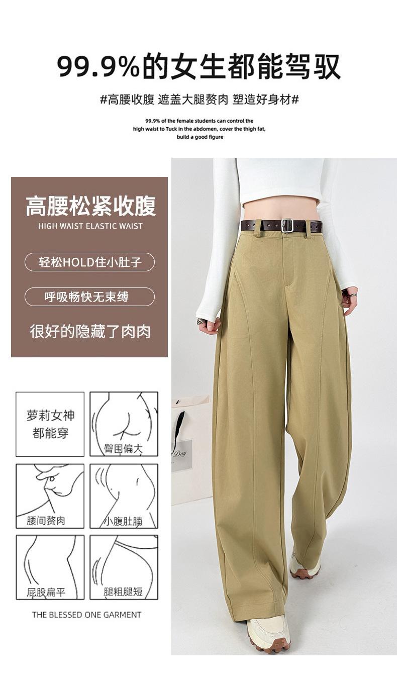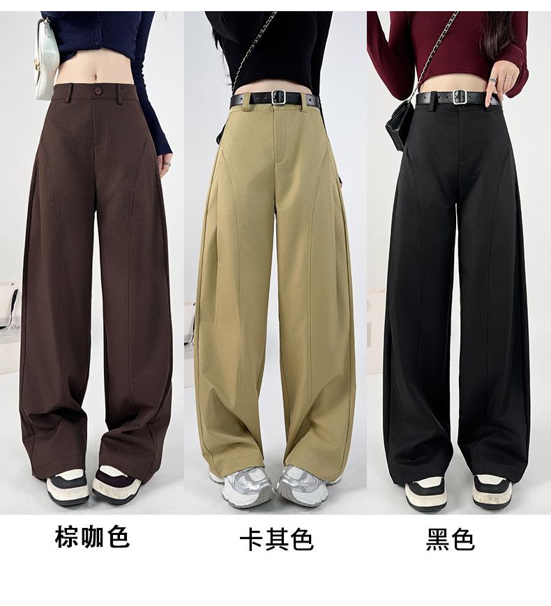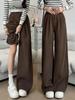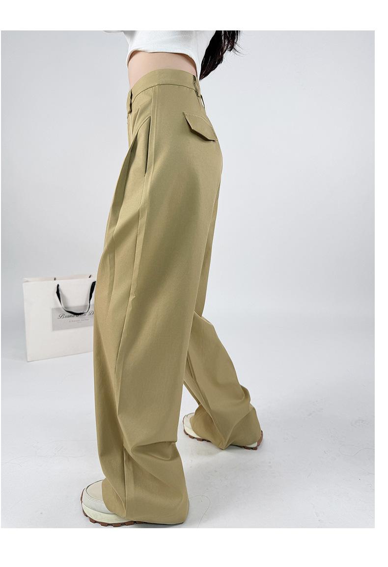 Pantalones Caqui Americanos Retro Cimitarra Mujer 2025 Nuevo Otoño/Invierno Sueltos Pierna Recta Adelgazantes Pierna Ancha Largos hasta el Piso