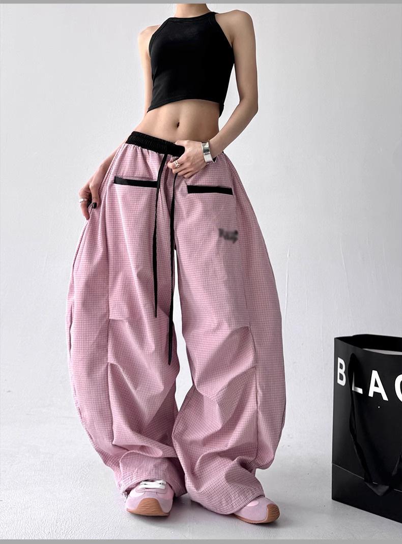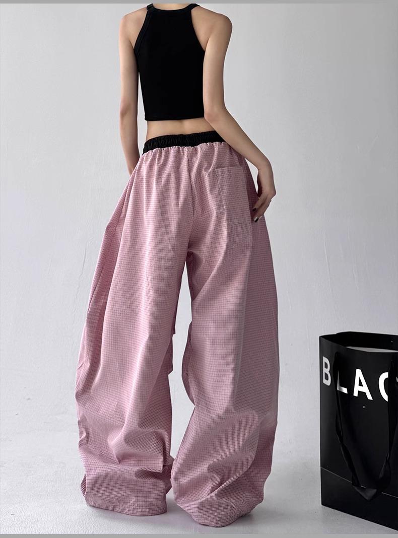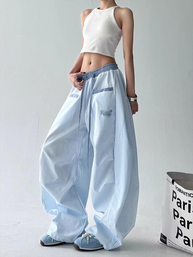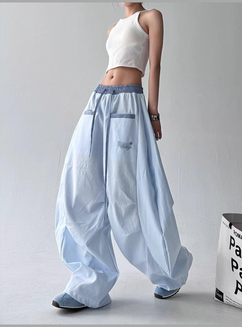 Pantalones casuales de cimitarra a rayas de nicho americano para mujer 2025 verano nuevo drapeado suelto versátil pierna ancha pantalones largos
