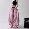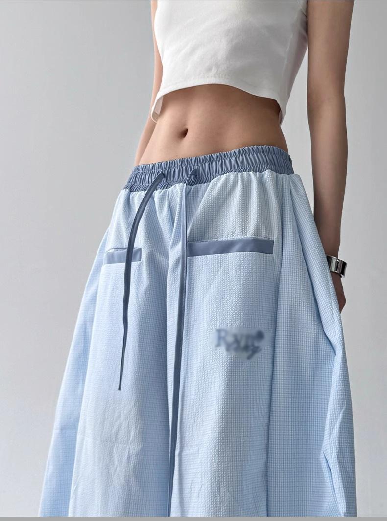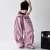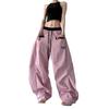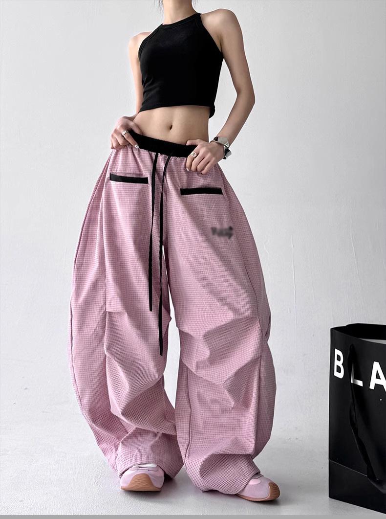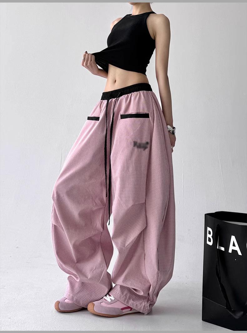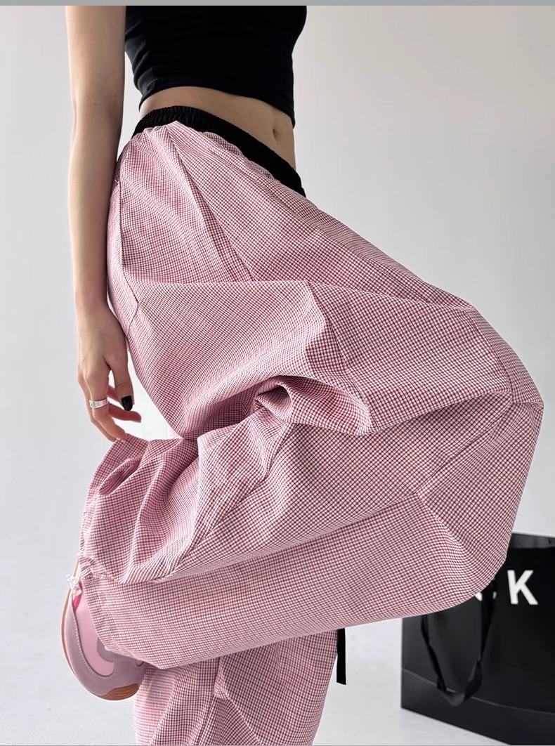 Pantalones casuales de cimitarra a rayas de nicho americano para mujer 2025 verano nuevo drapeado suelto versátil pierna ancha pantalones largos