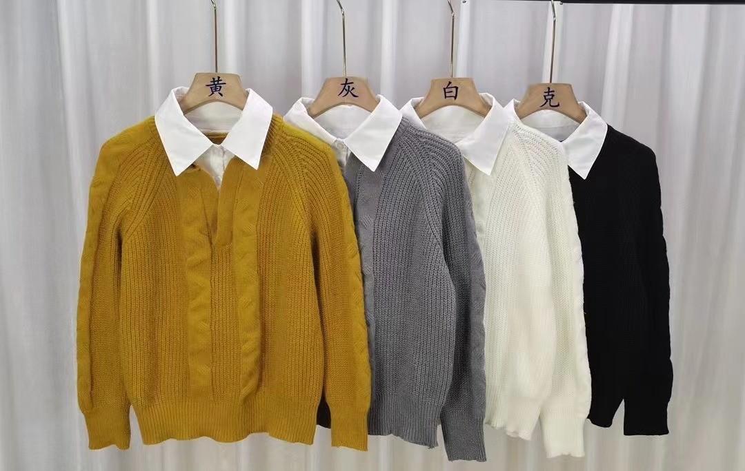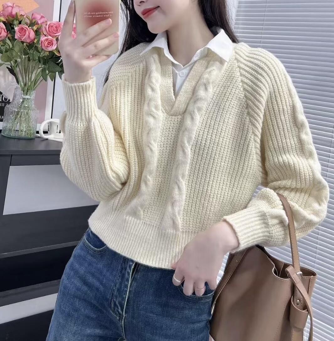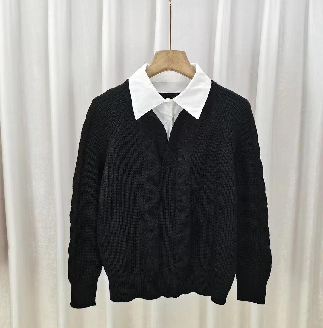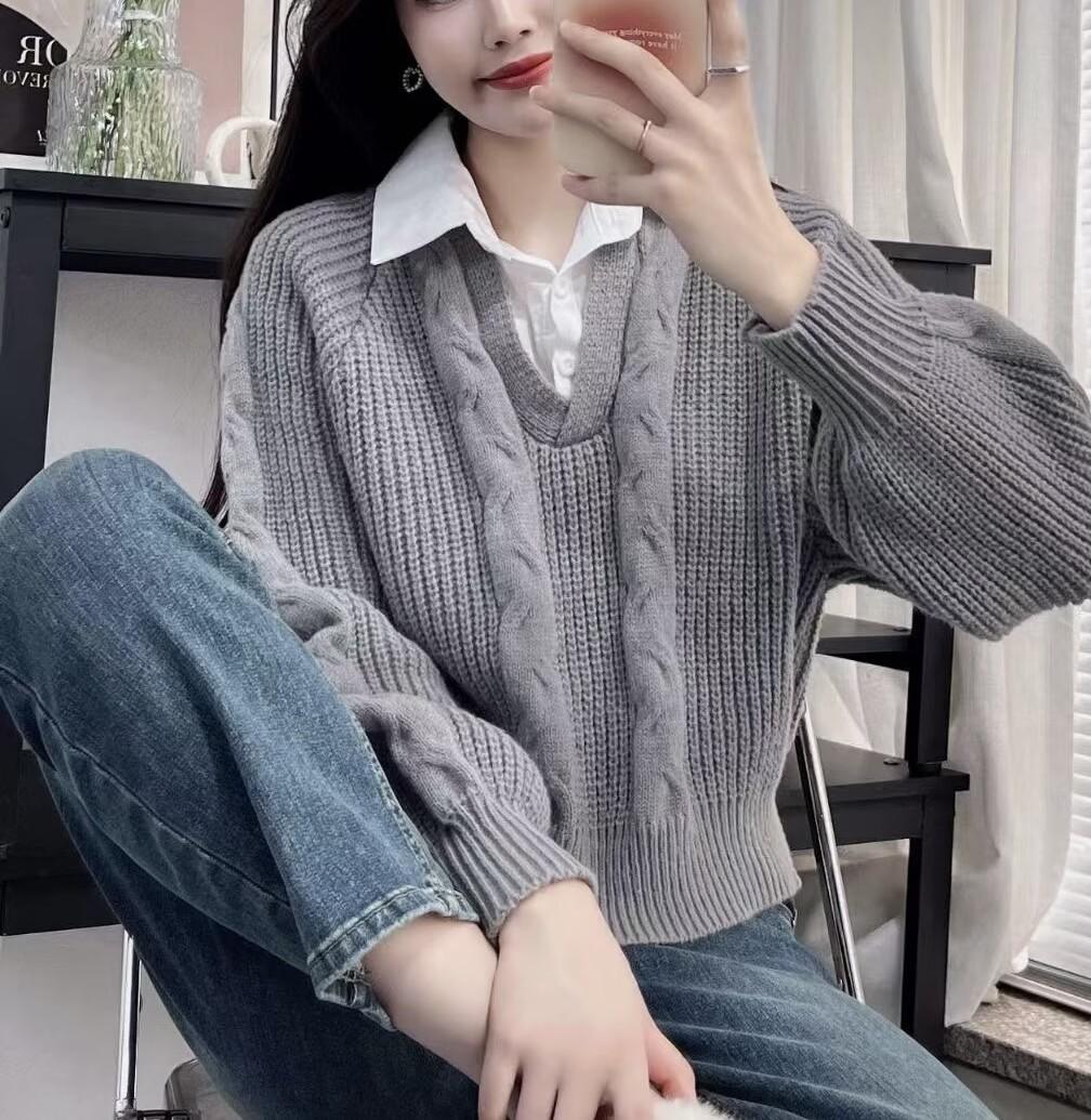 2023 Primavera y Otoño Nuevo estilo coreano punto falso de dos piezas costura moda camisa cuello diseño sentido nicho top para mujer