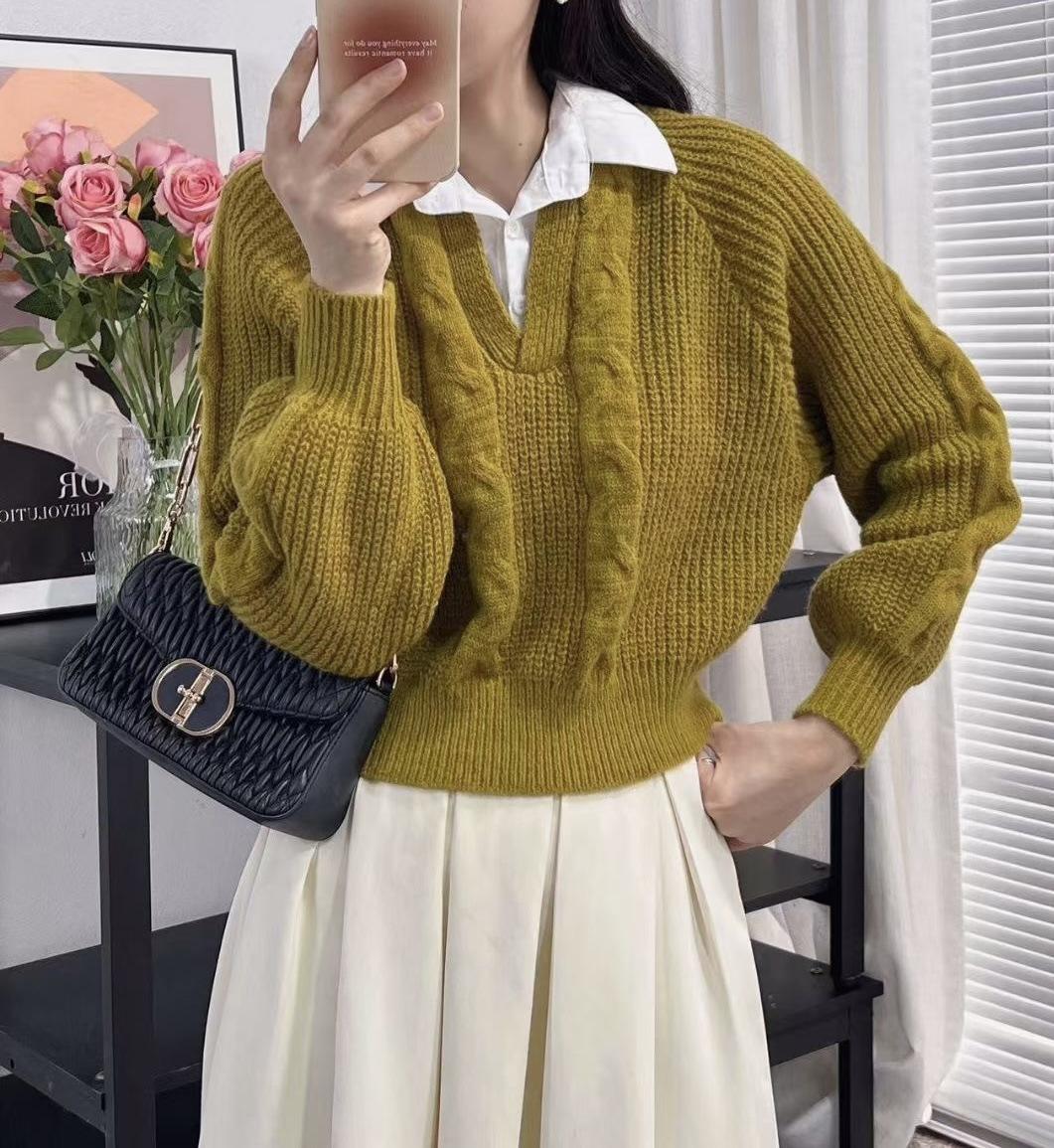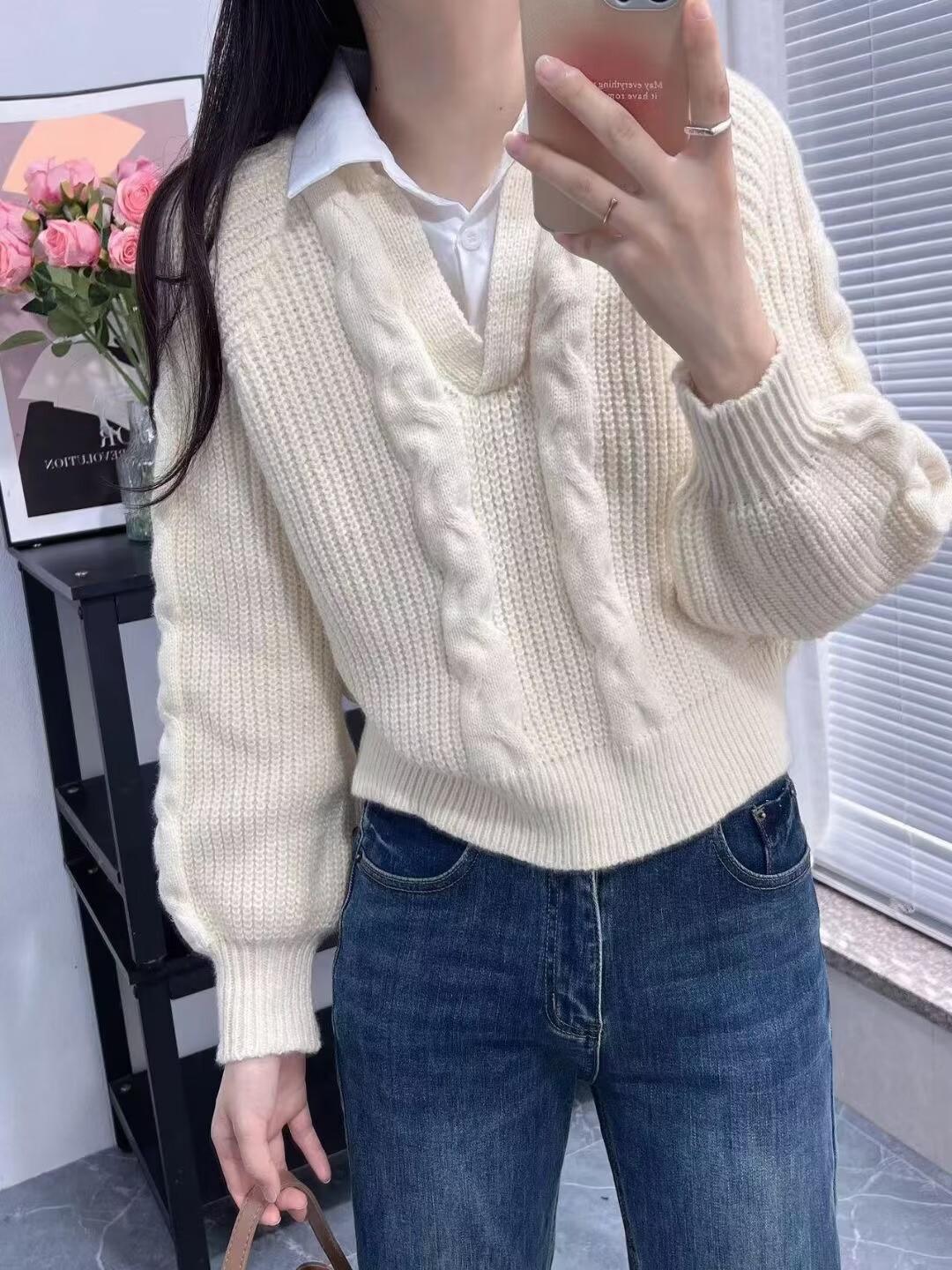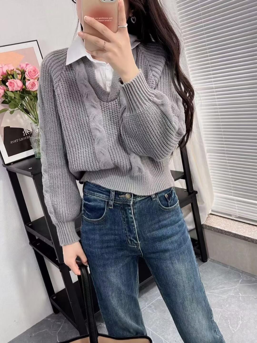 2023 Primavera y Otoño Nuevo estilo coreano punto falso de dos piezas costura moda camisa cuello diseño sentido nicho top para mujer
