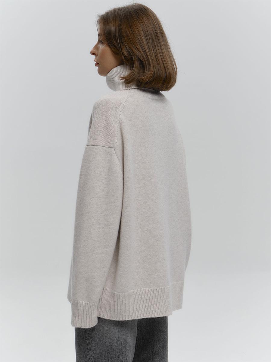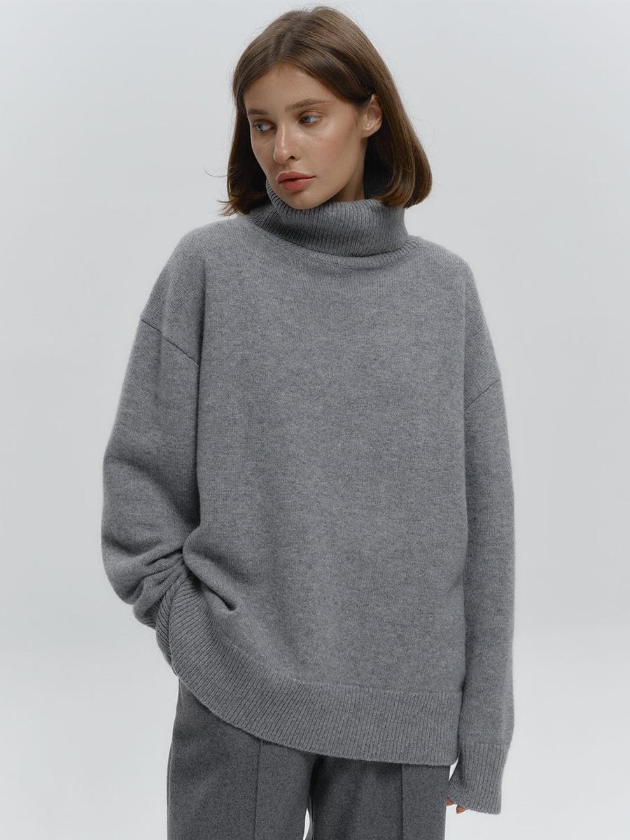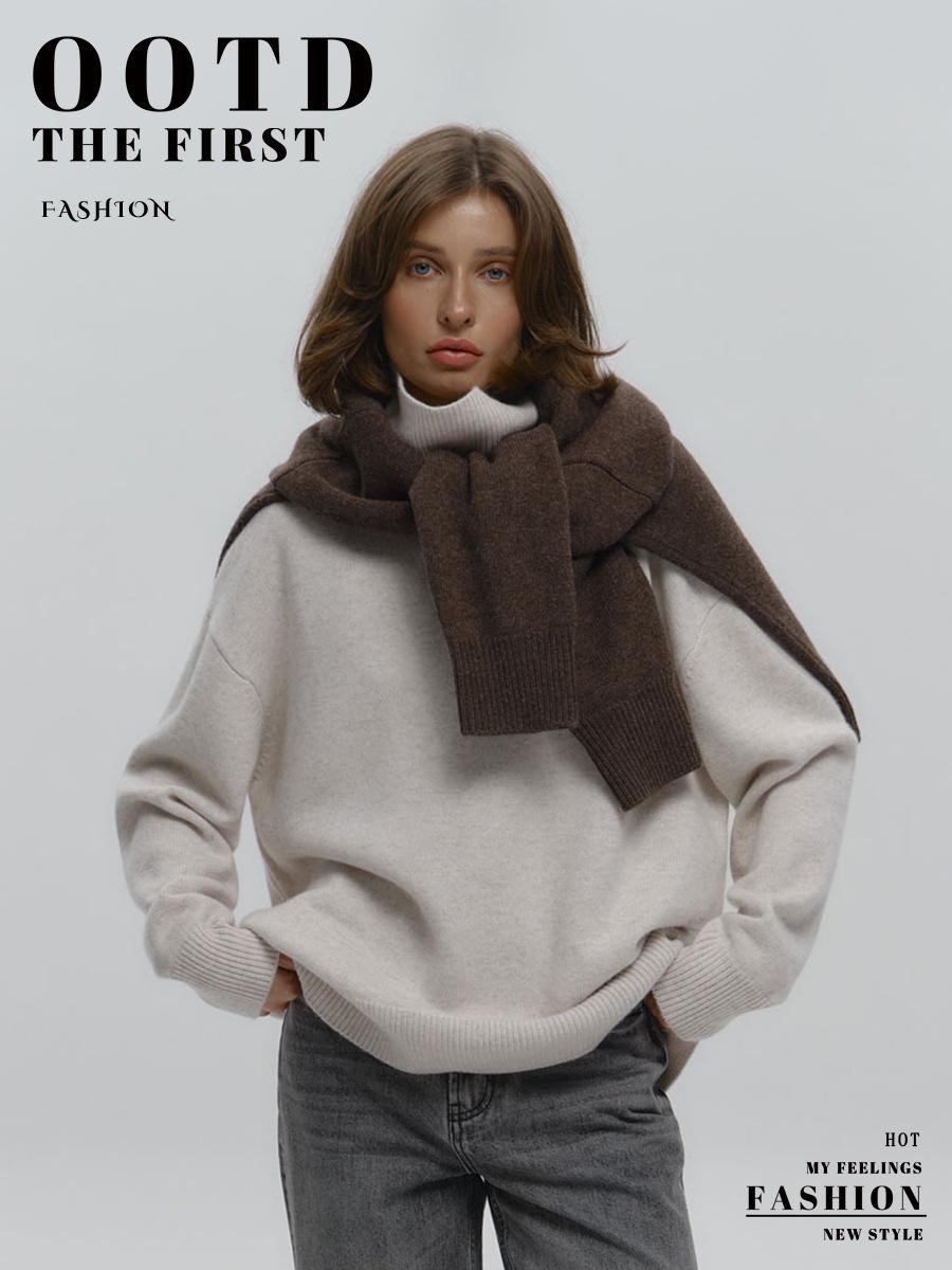 Suéter Holgado de Cuello Alto Transfronterizo Europeo y Americano Otoño/Invierno 2025 Nuevo Suéter Tejido de Color Sólido Simple Cálido Suéter Pulóver para Mujer