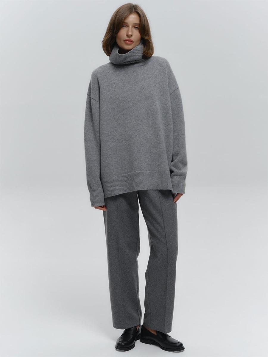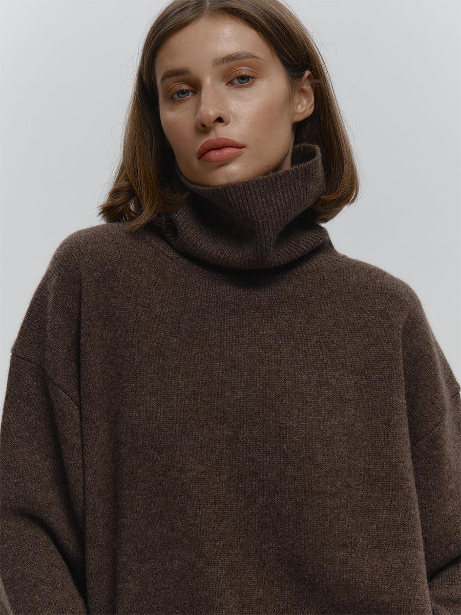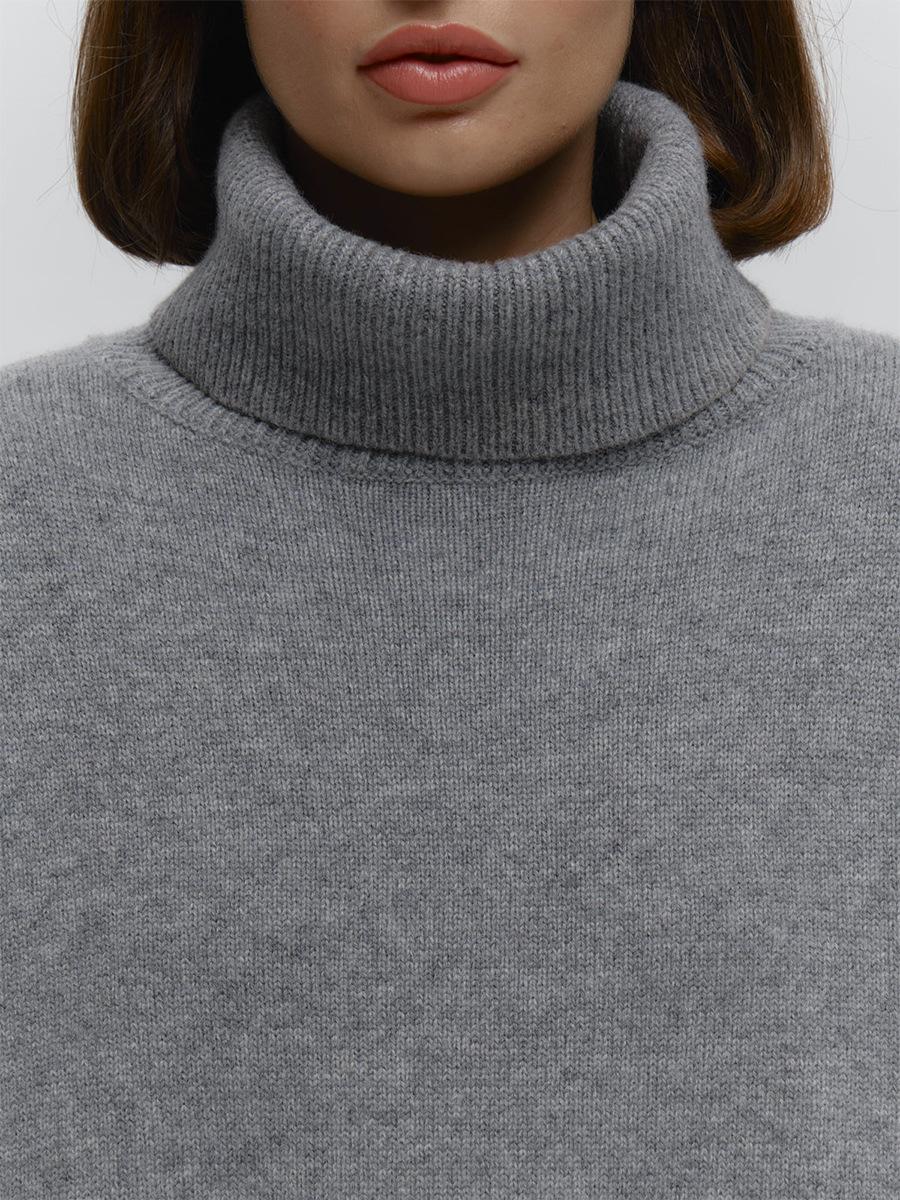 Suéter Holgado de Cuello Alto Transfronterizo Europeo y Americano Otoño/Invierno 2025 Nuevo Suéter Tejido de Color Sólido Simple Cálido Suéter Pulóver para Mujer