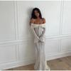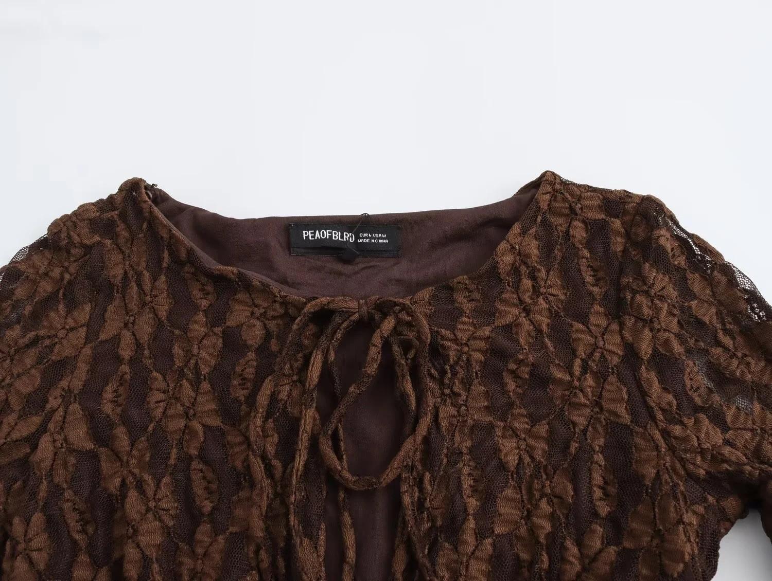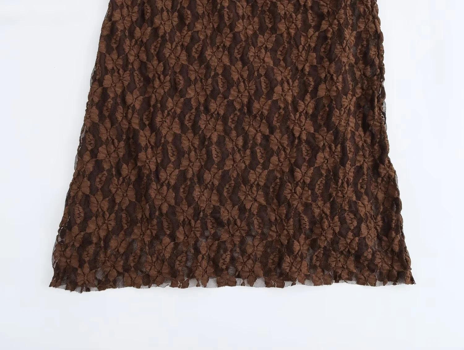 Moda transfronteriza europea y americana para mujer AliExpress más vendido vestido largo de encaje de manga campana y cuello redondo