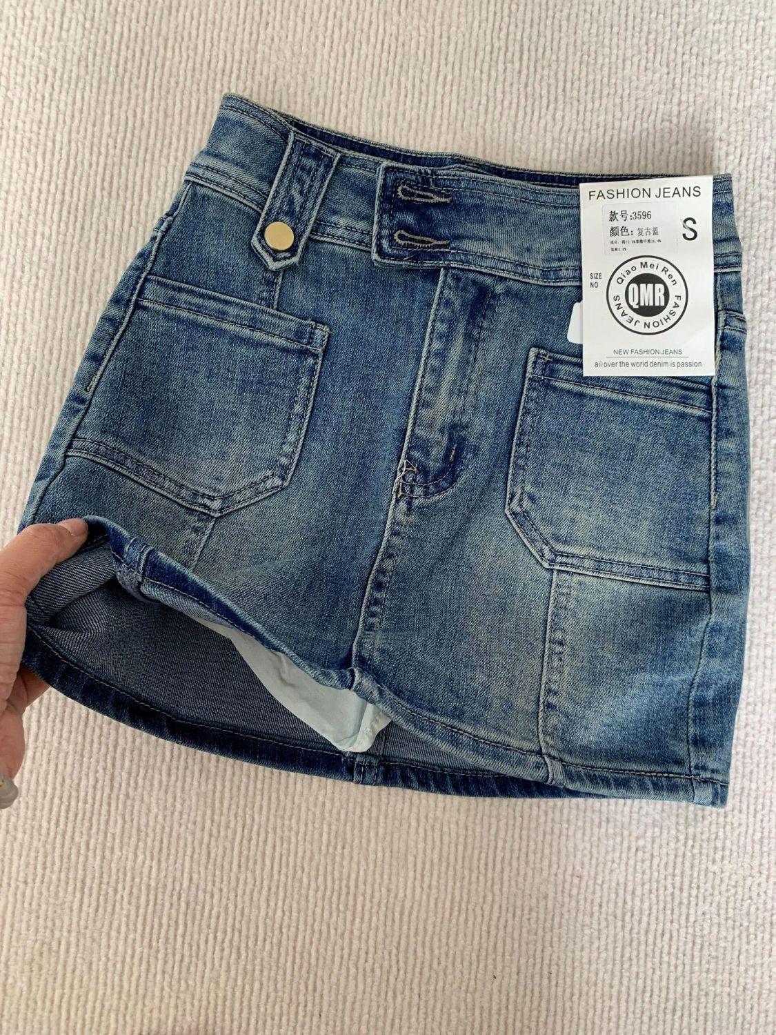 Falda de mezclilla retro forrada 2025 Look adelgazante dulce y picante Cintura alta Falda de cadera Verano para mujer Cintura Nueva Falda corta