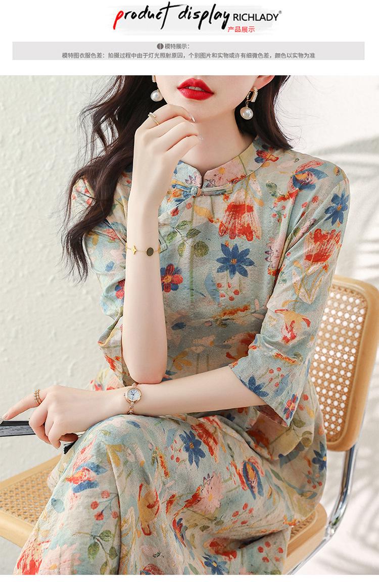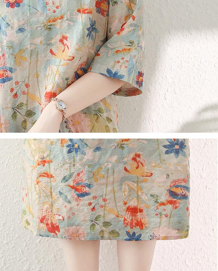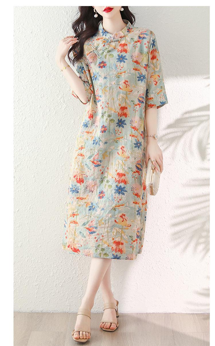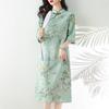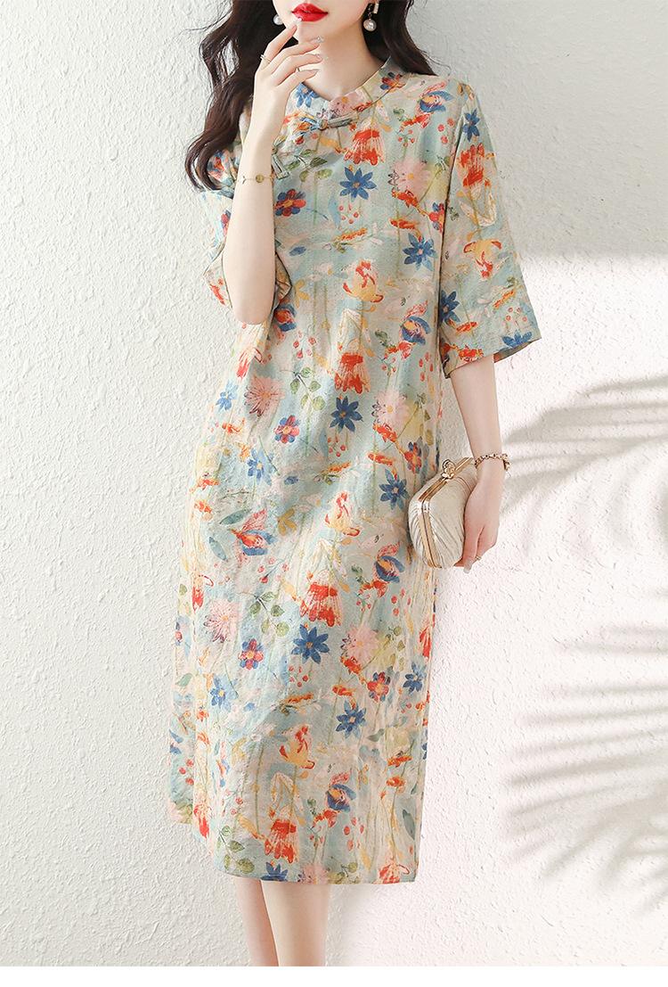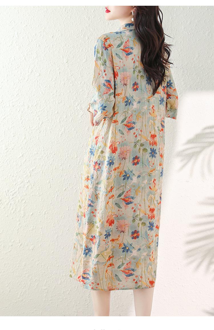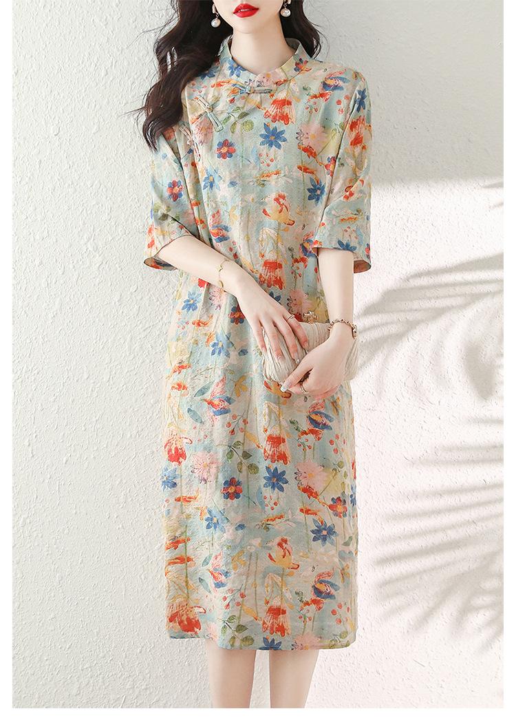 Cuello Mao Estampado Cheongsam Mejorado Verano Nuevo Chinoiserie Estilo Nacional Vestido Retro Suelto Cubre Vientre Seda de Morera Falda Midi