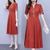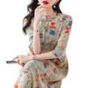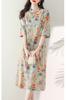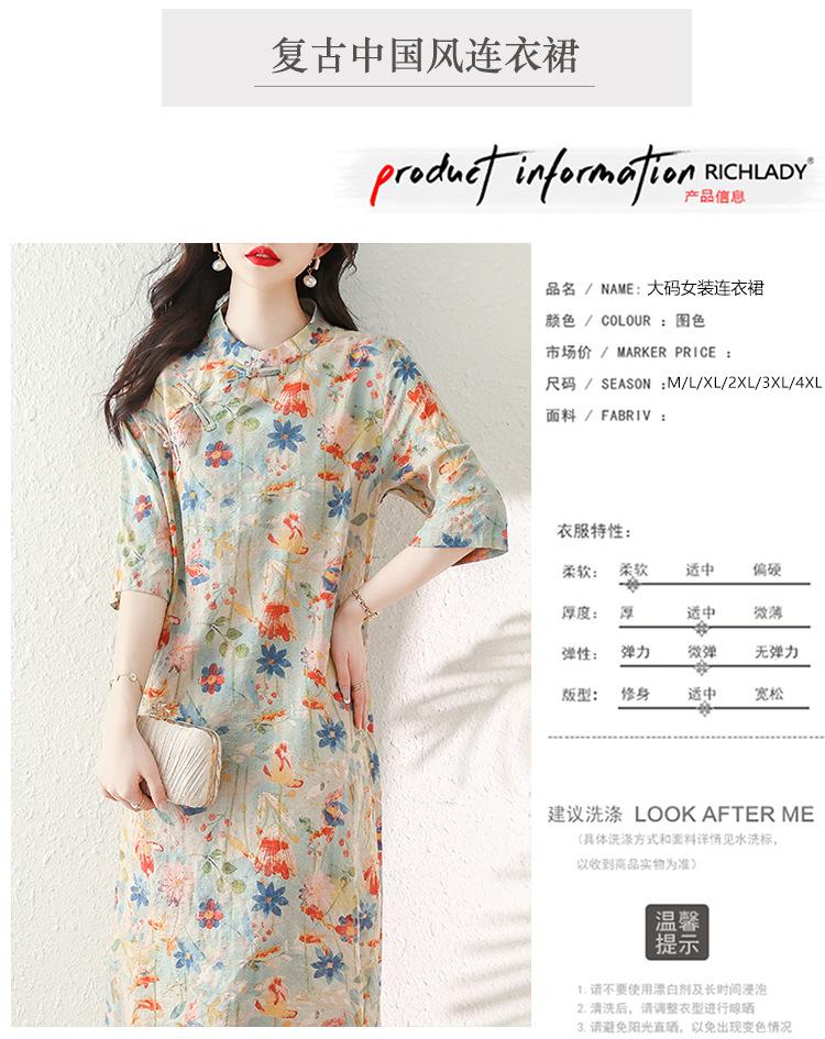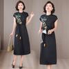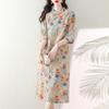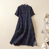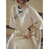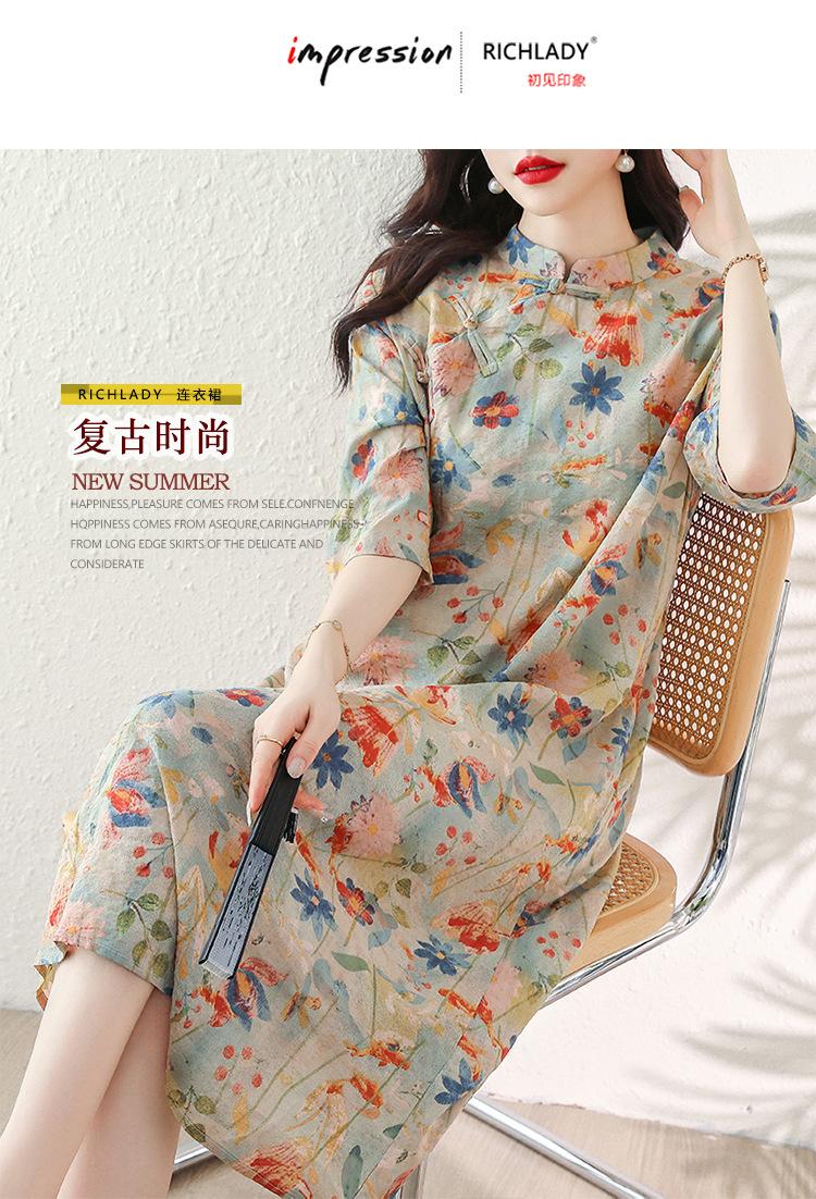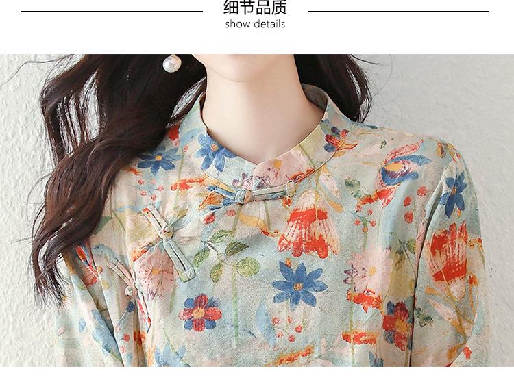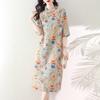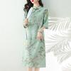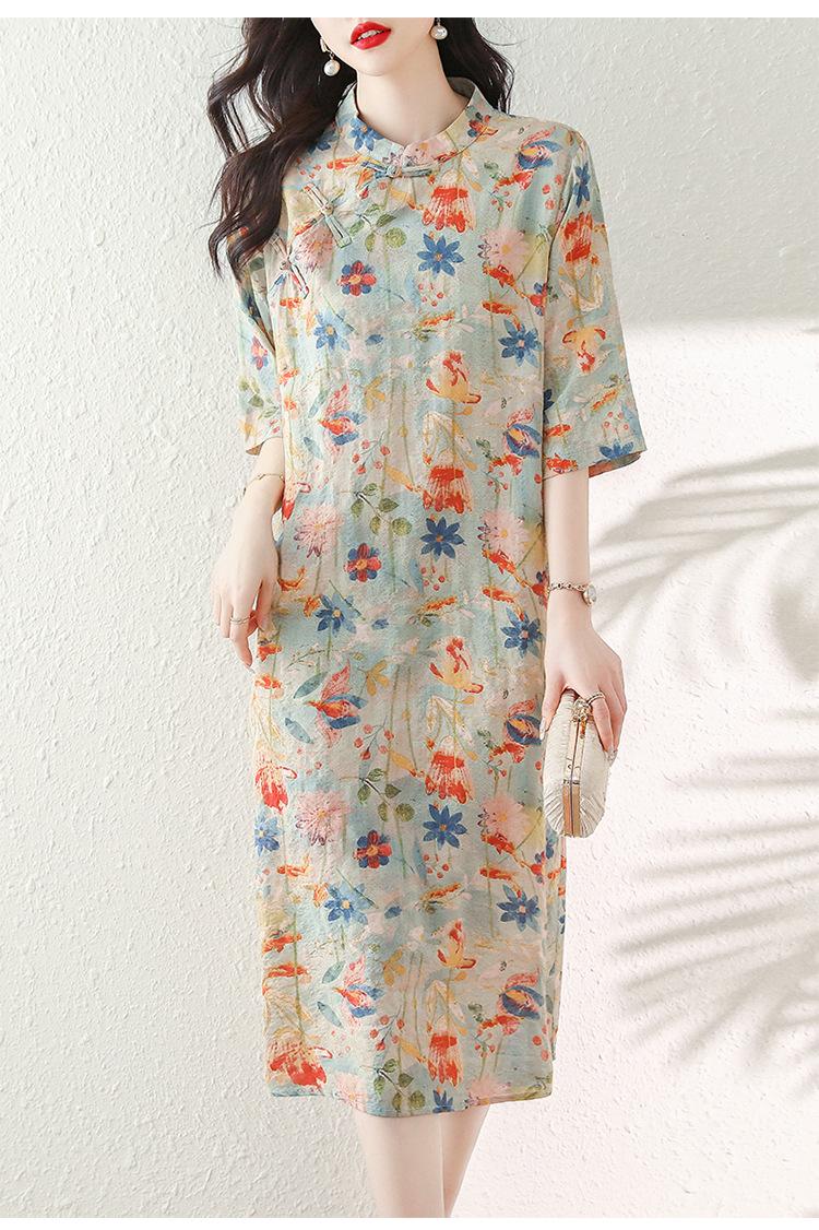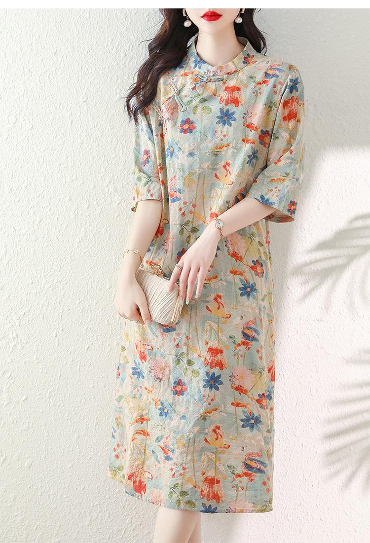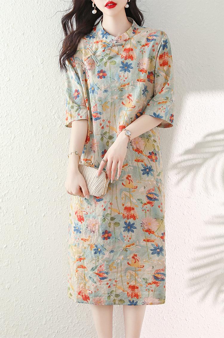 Cuello Mao Estampado Cheongsam Mejorado Verano Nuevo Chinoiserie Estilo Nacional Vestido Retro Suelto Cubre Vientre Seda de Morera Falda Midi