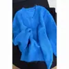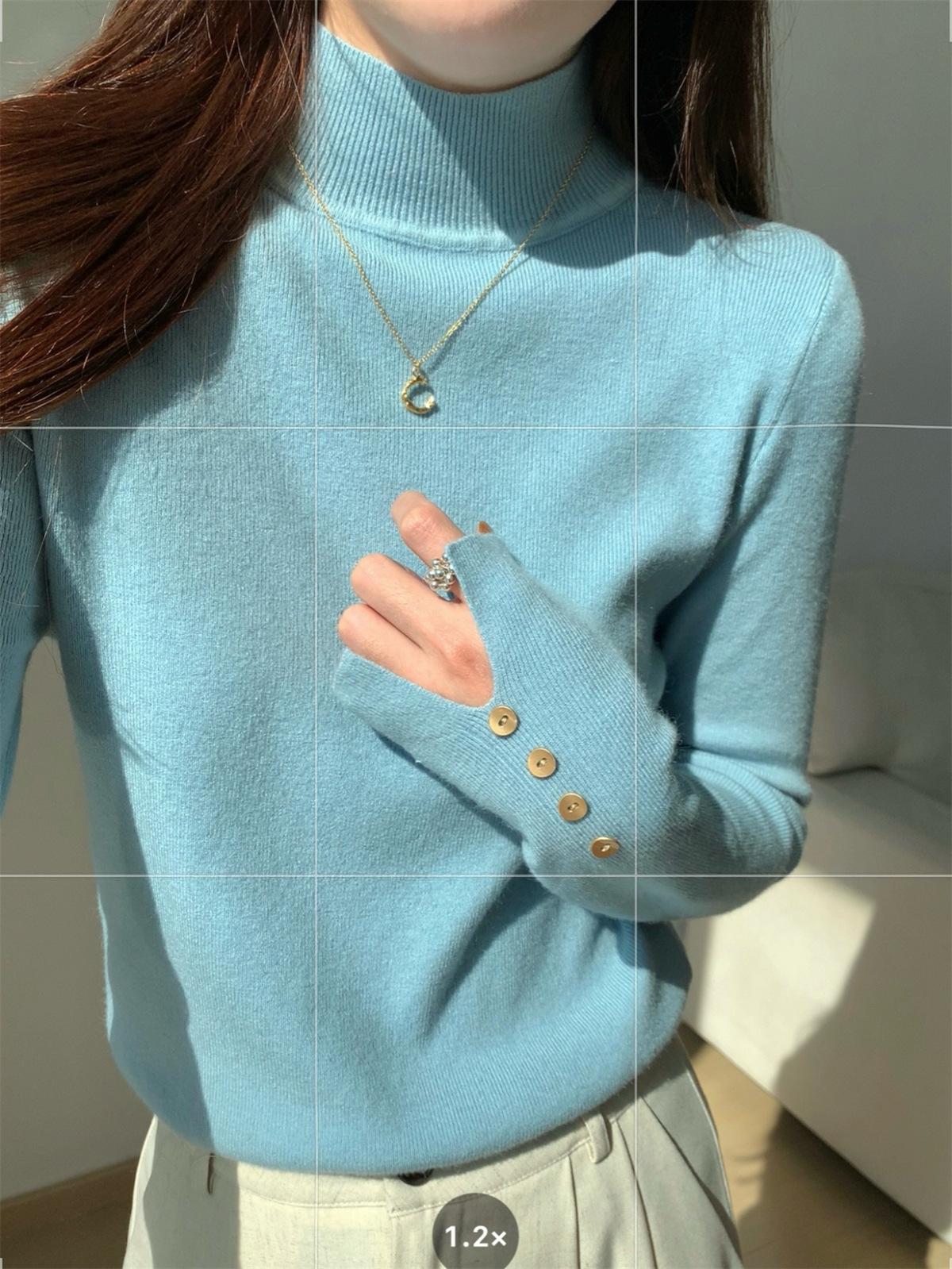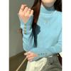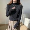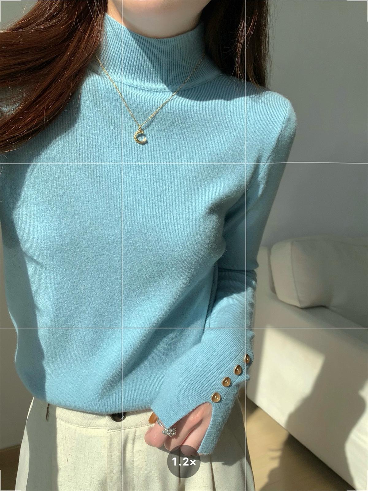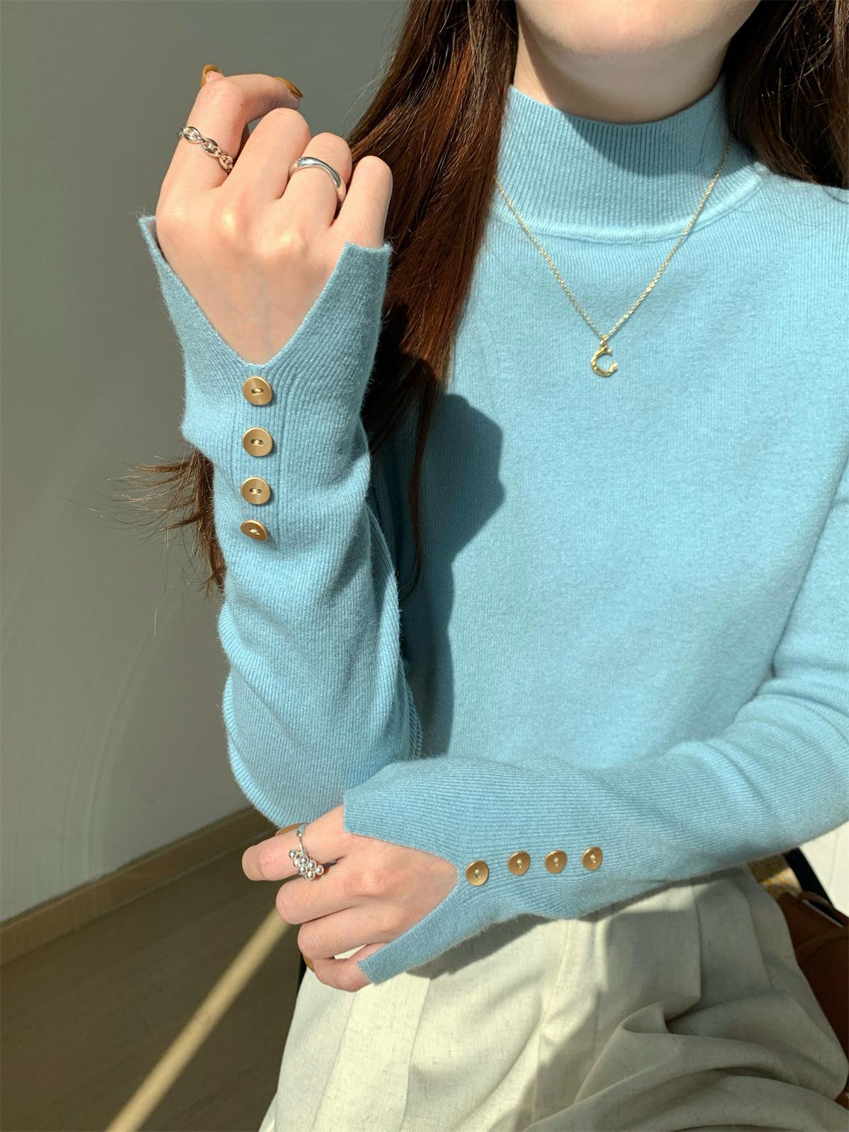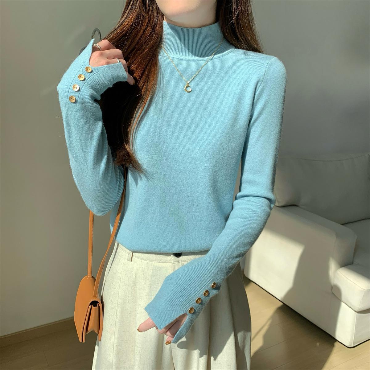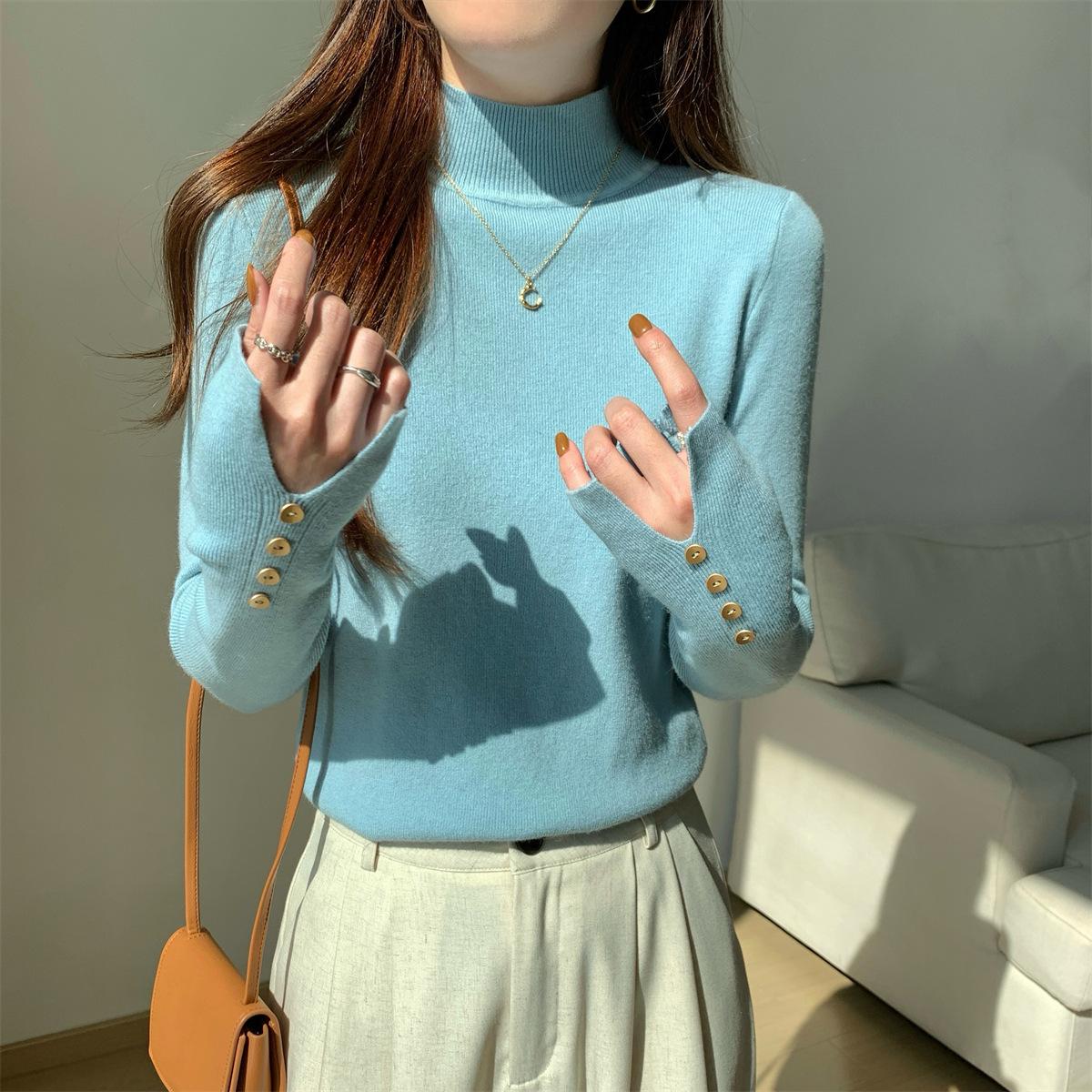 Estilo Americano Otoño 2025 Estilo Coreano Color Sólido Temperamento Ajustado Cuello Medio Alto Botón Andy Terciopelo Capa Interior Suéter de Punto Mujer