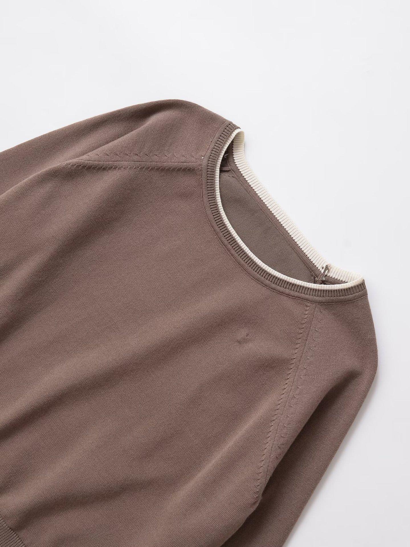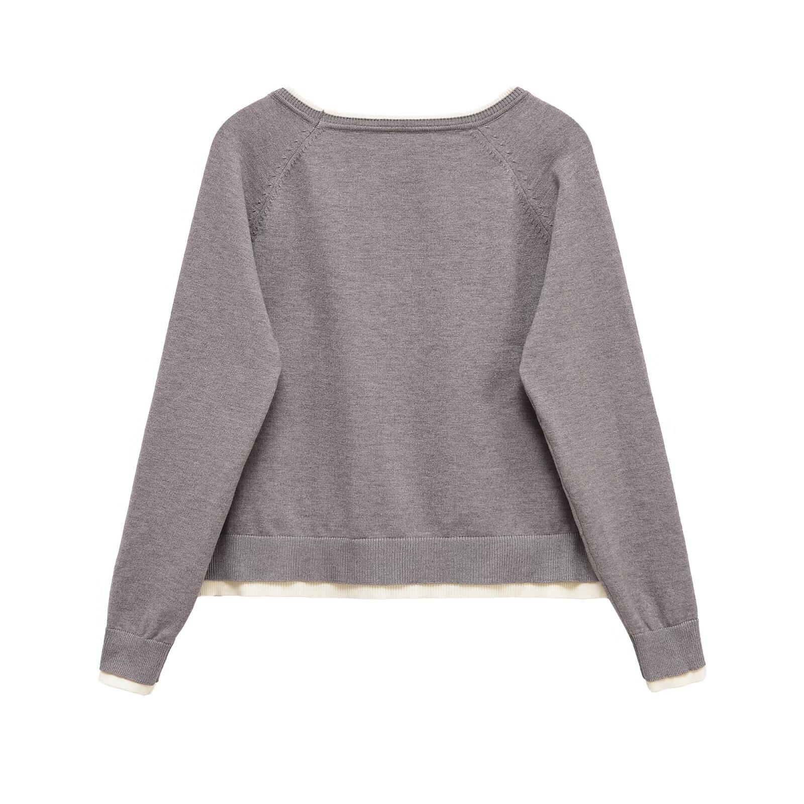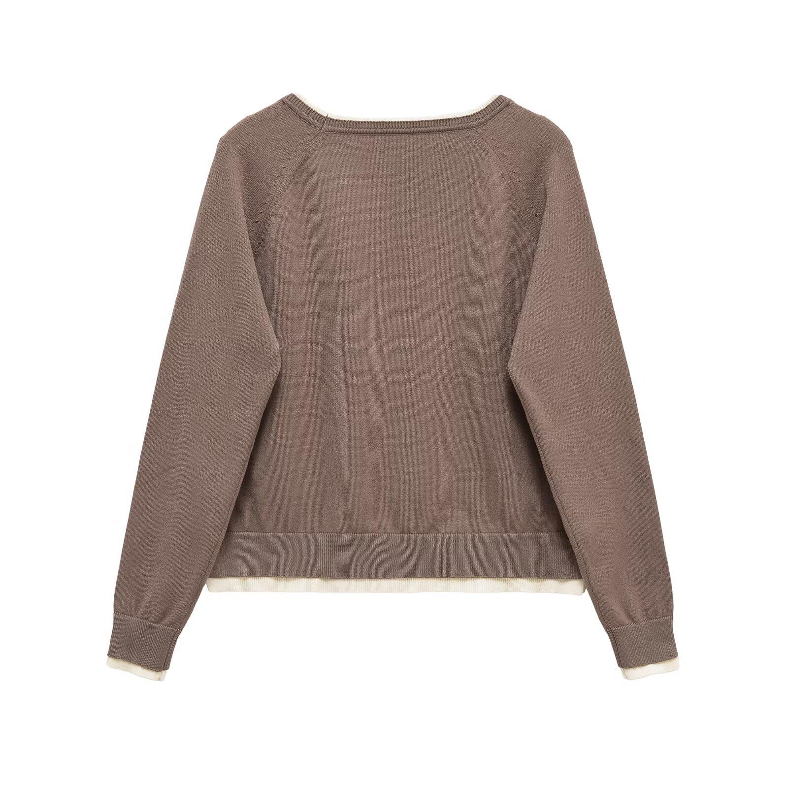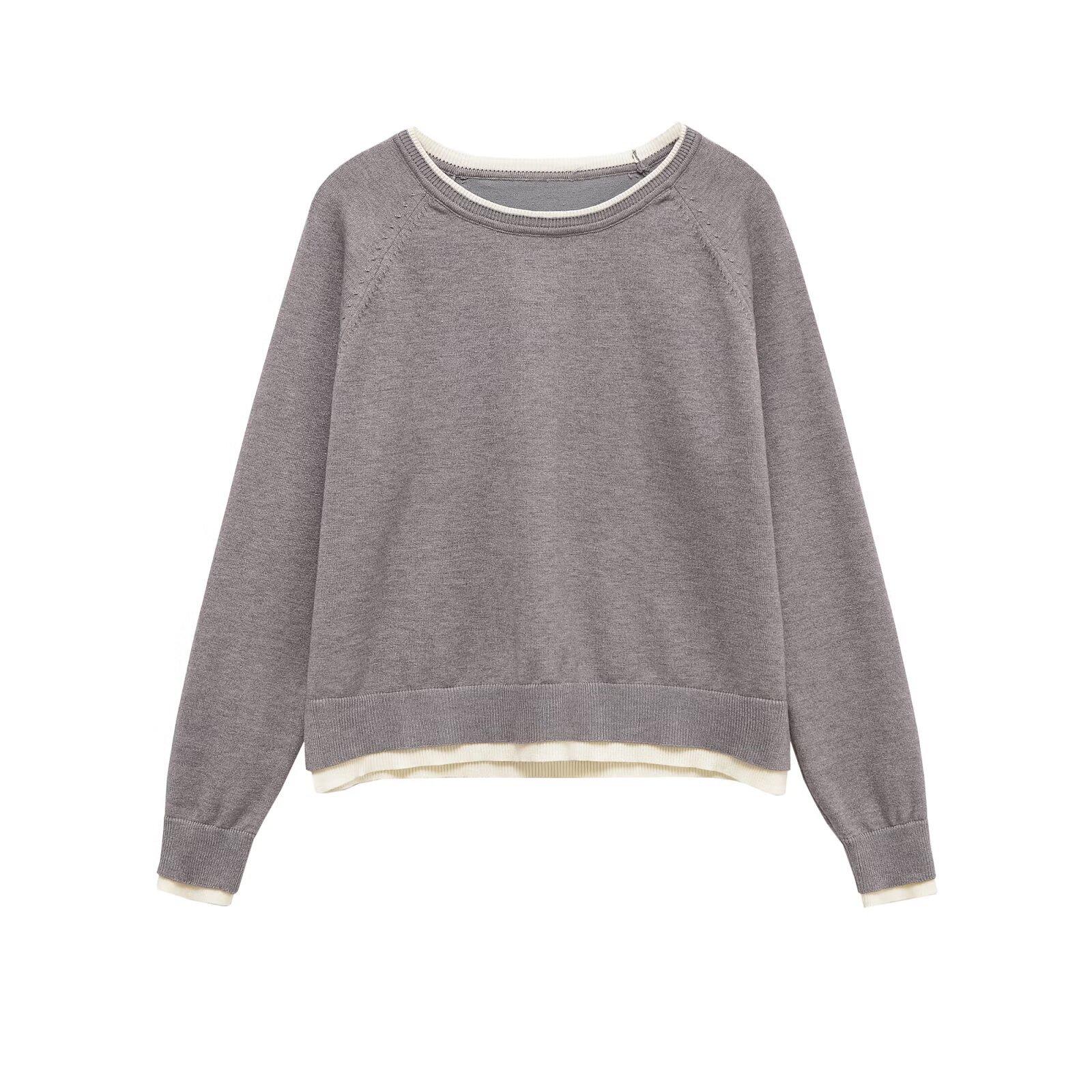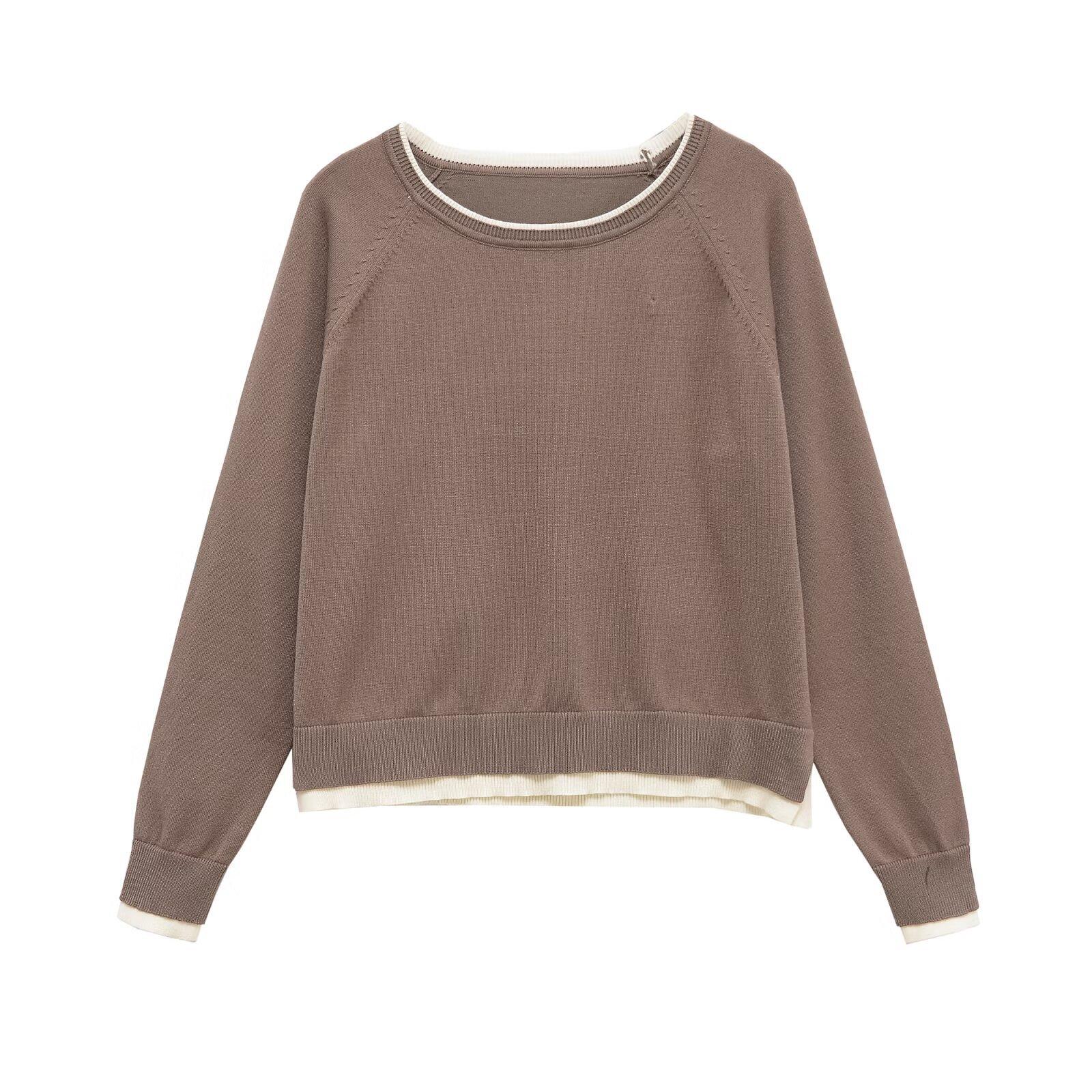 Otoño 2025 Ropa Nueva para Mujer Estilo Europeo y Americano Moda Suelto Doble Capa Sencillo Top de Manga Larga con Cuello Redondo 1509130