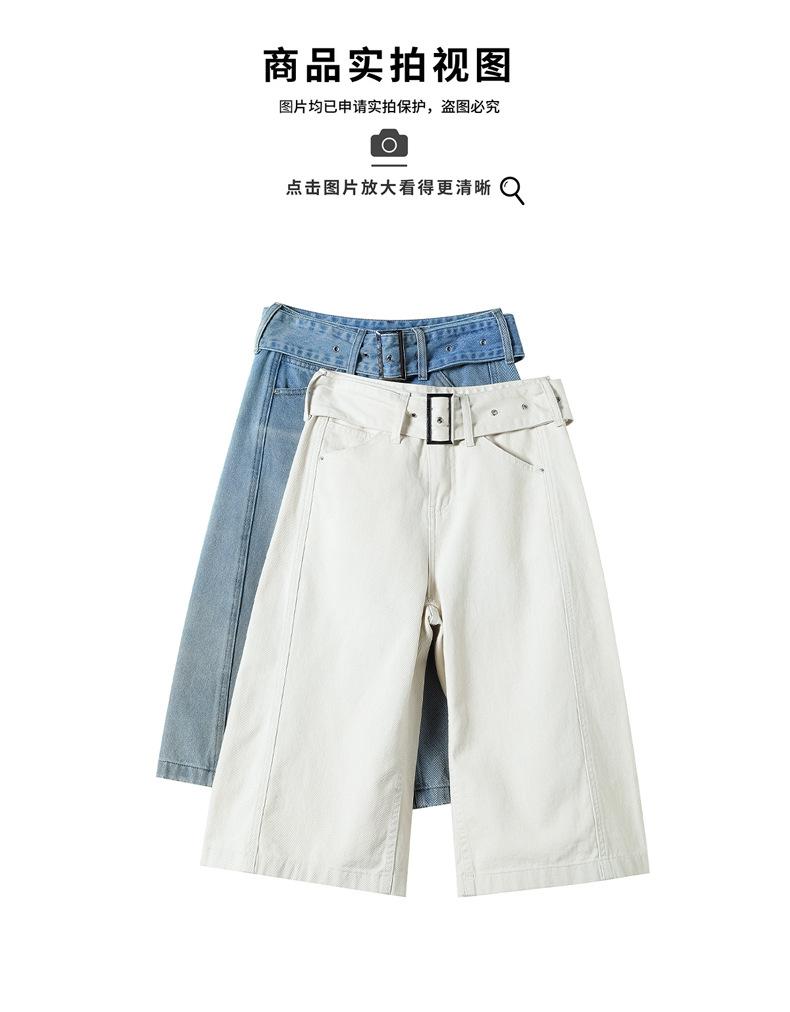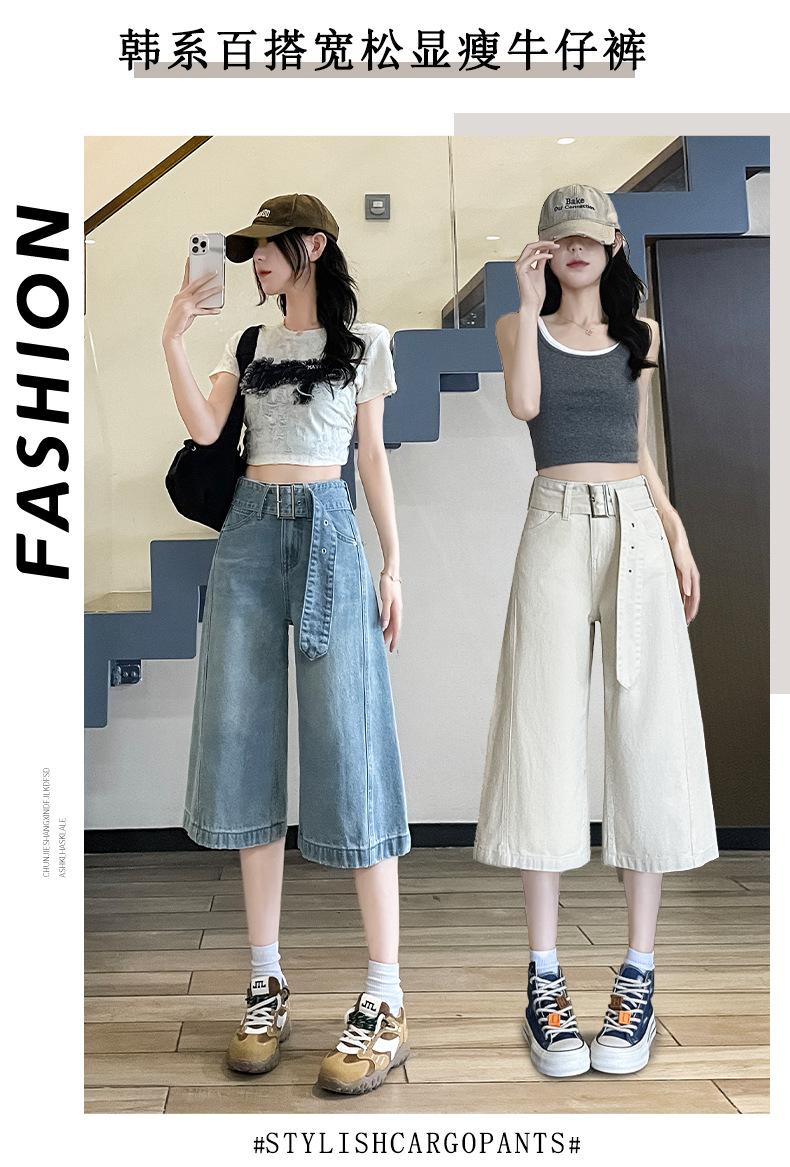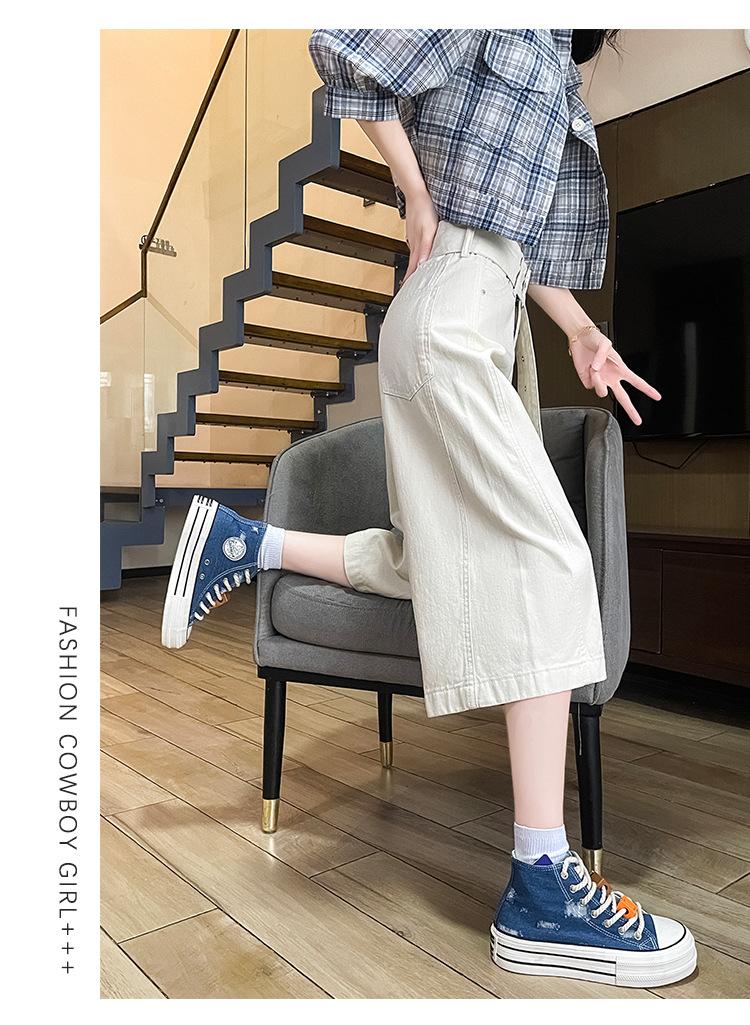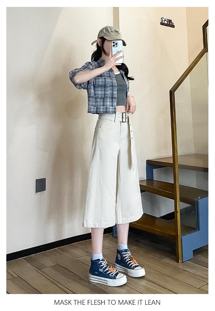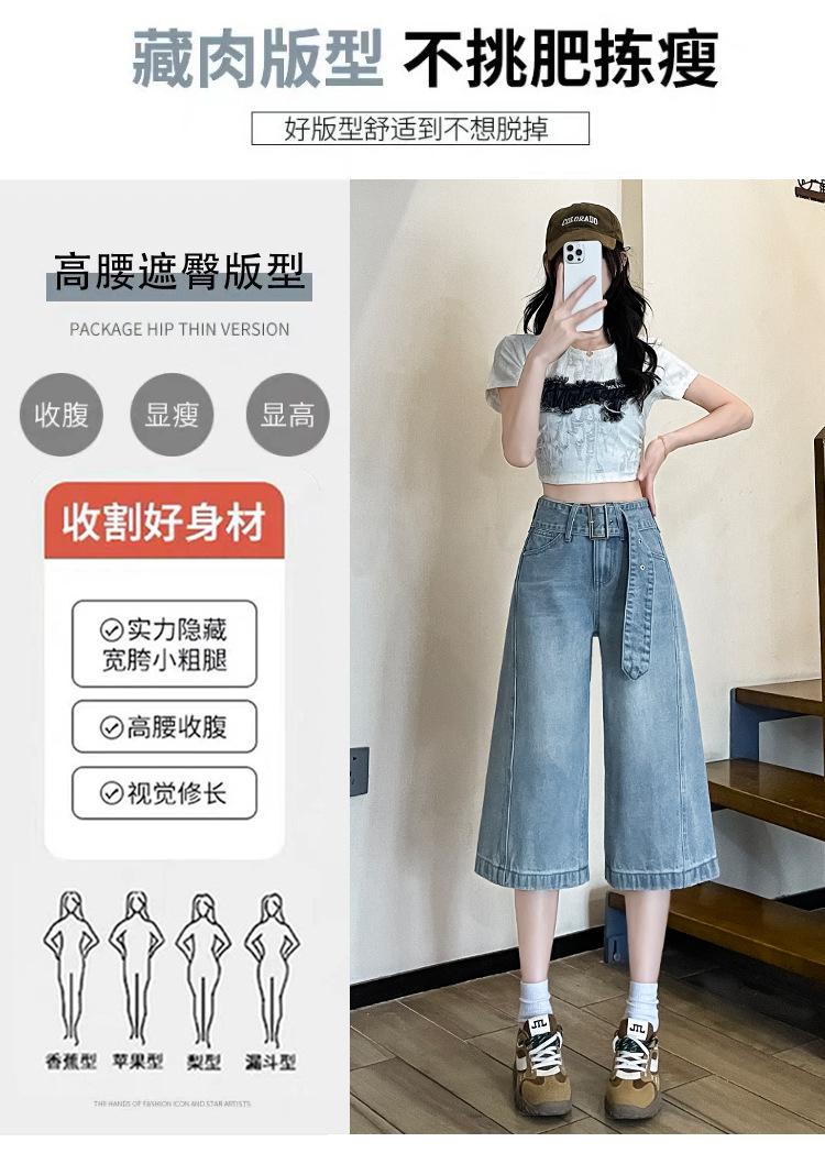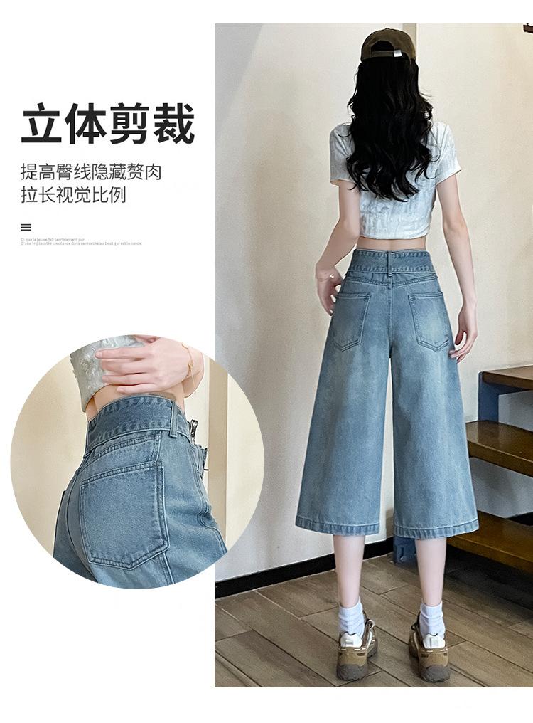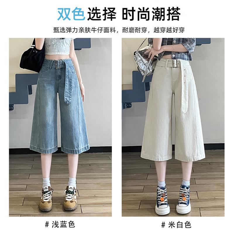 Jeans blanco cremoso de cintura alta para mujer 2025 verano nuevo talla grande slim niña gordita pantalones cropped de pierna ancha