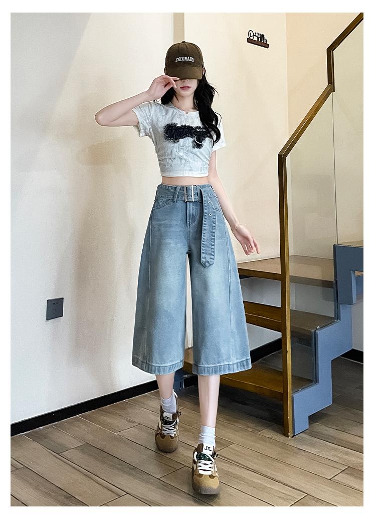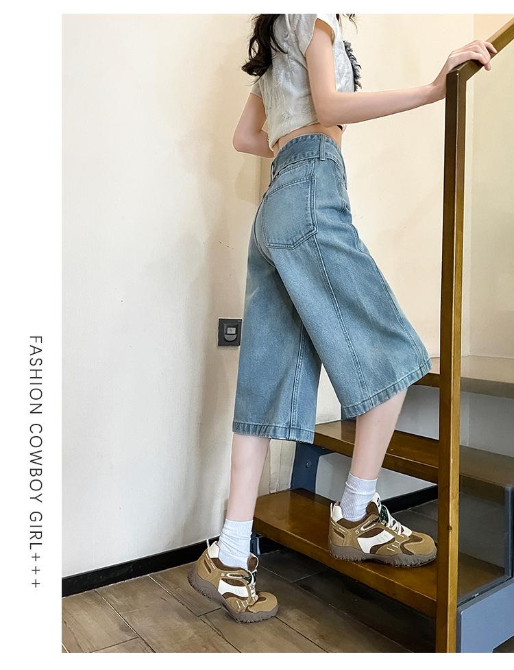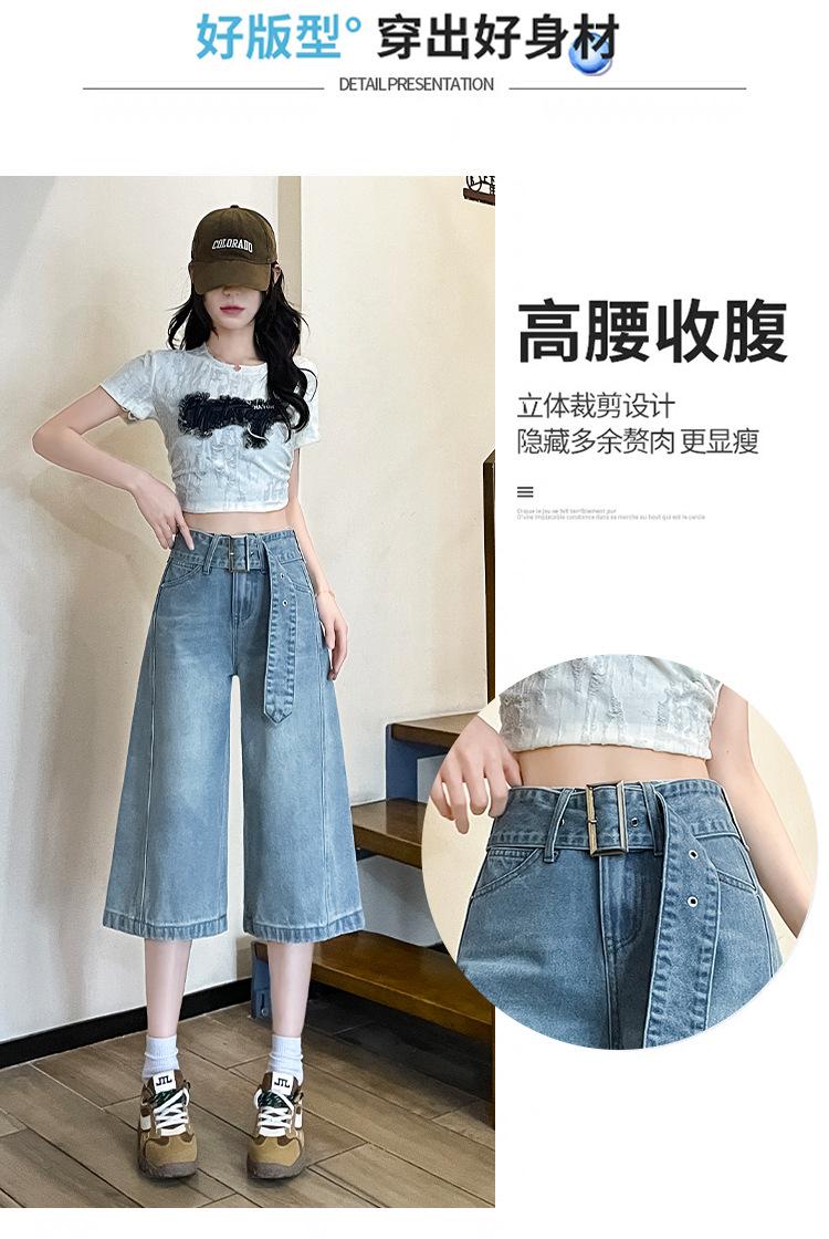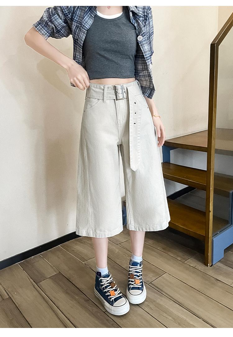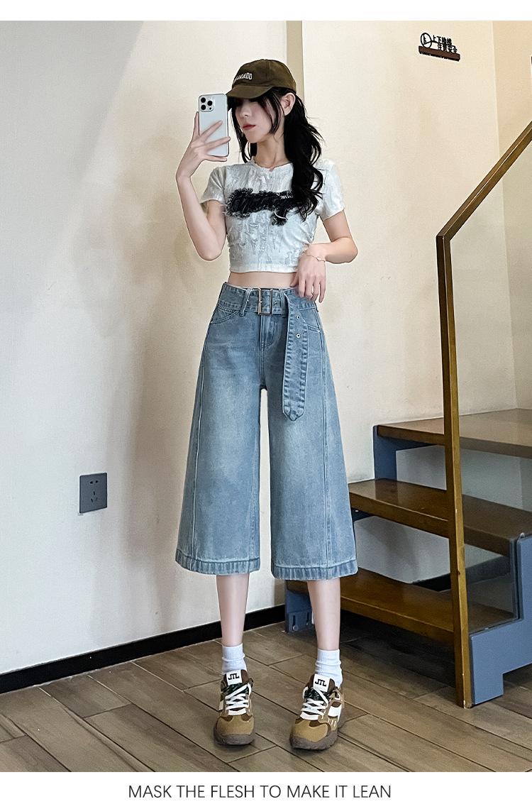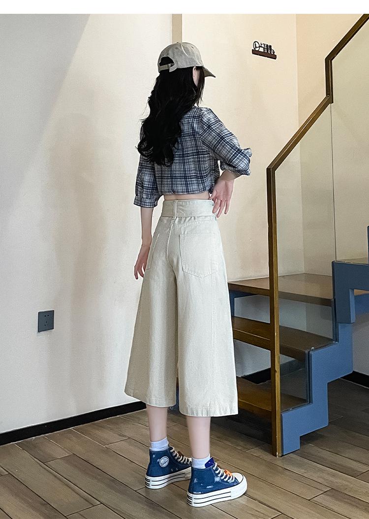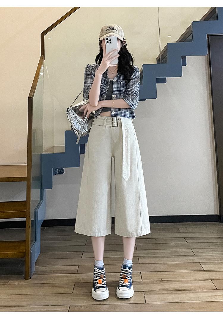 Jeans blanco cremoso de cintura alta para mujer 2025 verano nuevo talla grande slim niña gordita pantalones cropped de pierna ancha