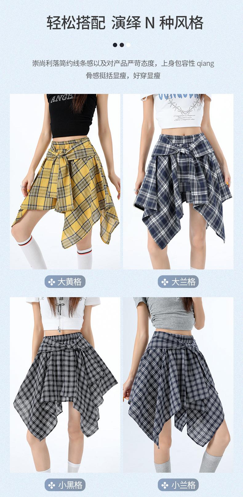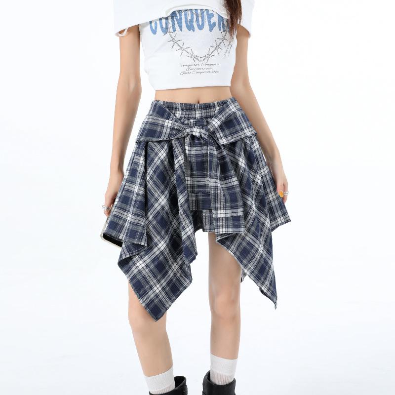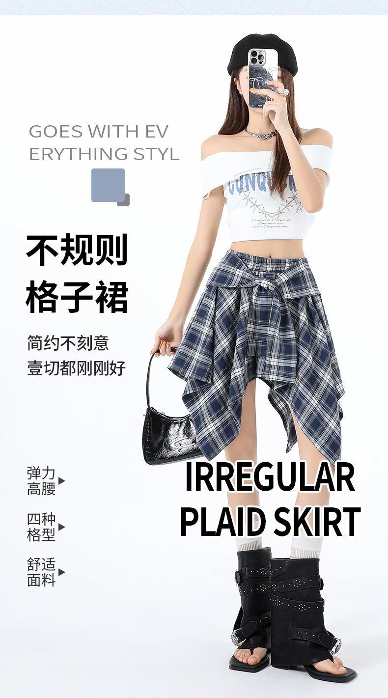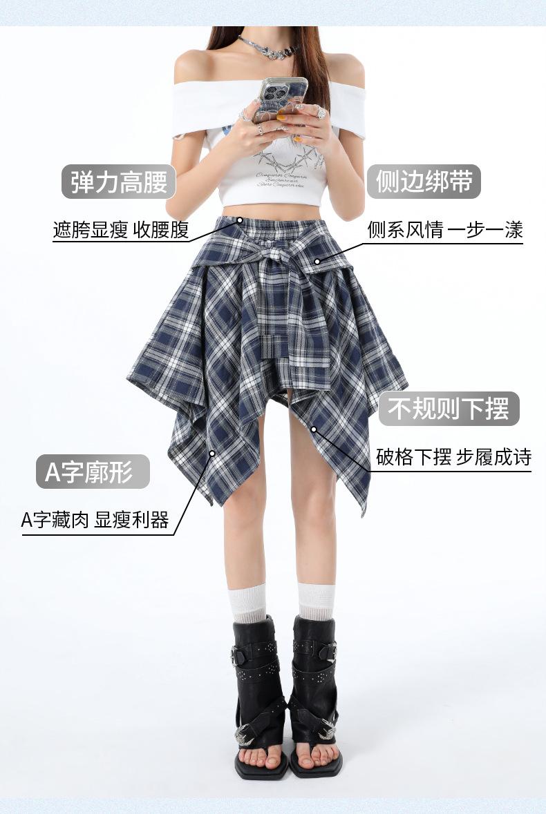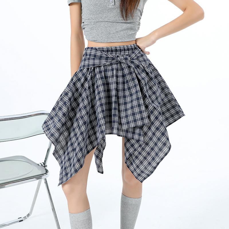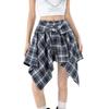 3328 falda midi a cuadros irregular para mujer 2025 nuevo verano petite corte A cintura elástica falda corta talla única
