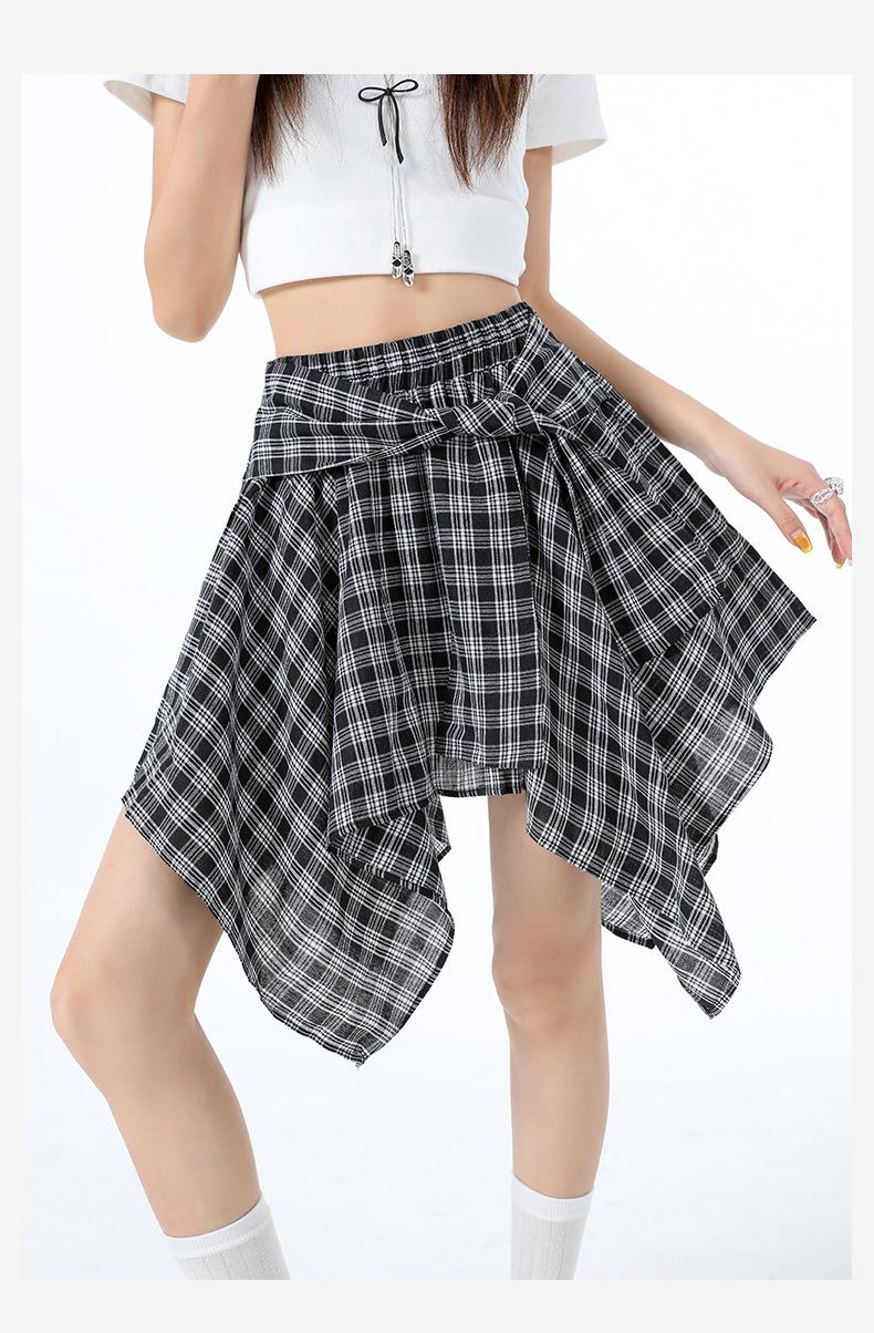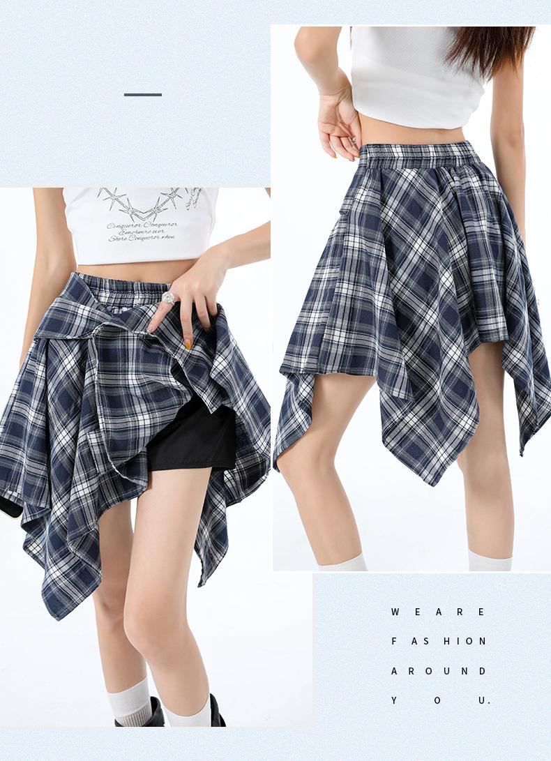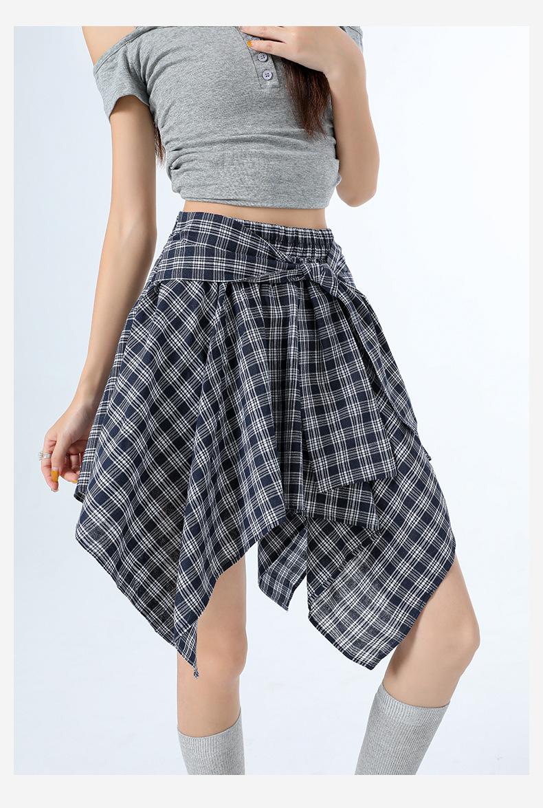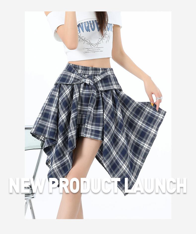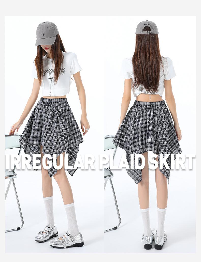 3328 falda midi a cuadros irregular para mujer 2025 nuevo verano petite corte A cintura elástica falda corta talla única