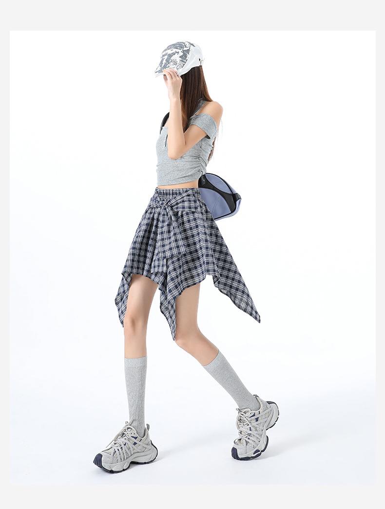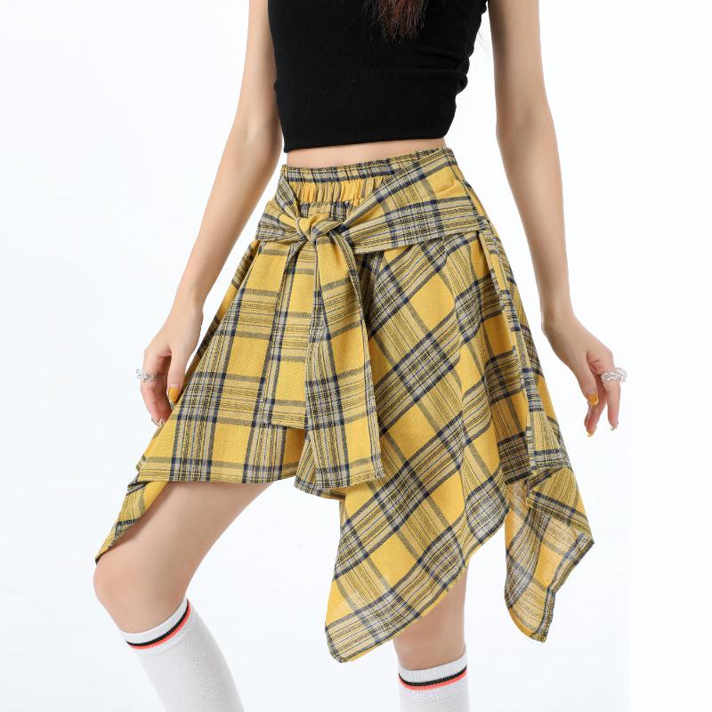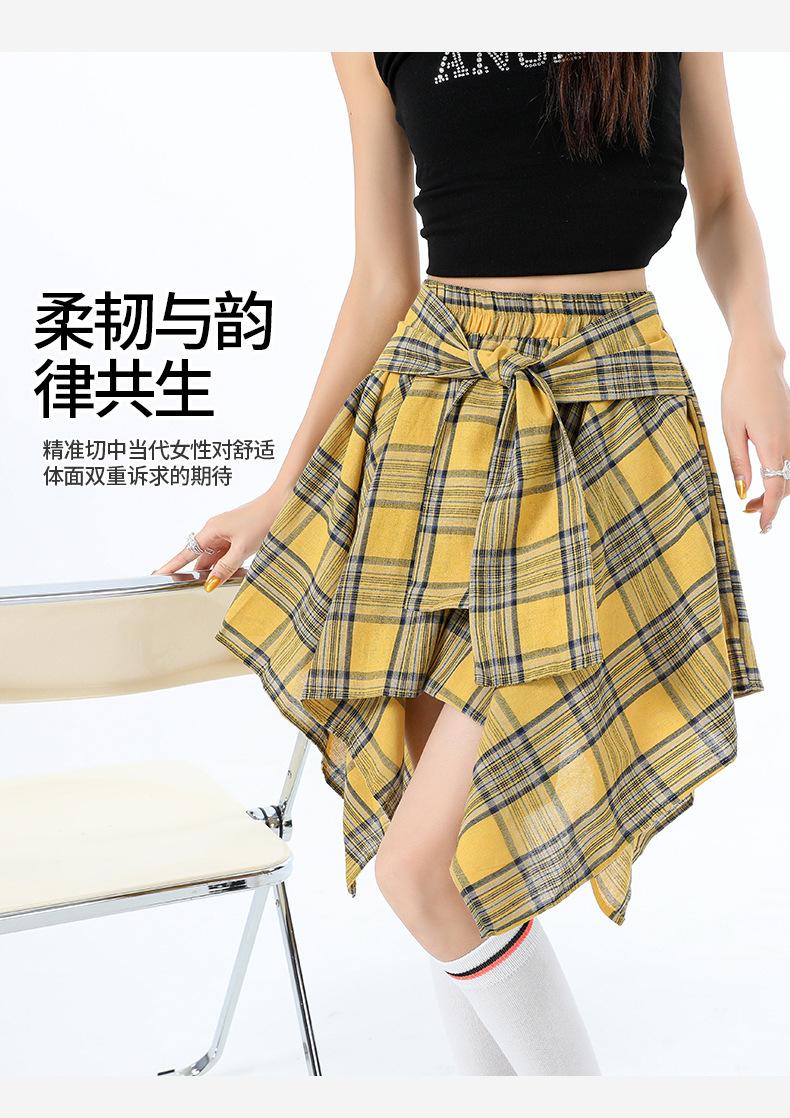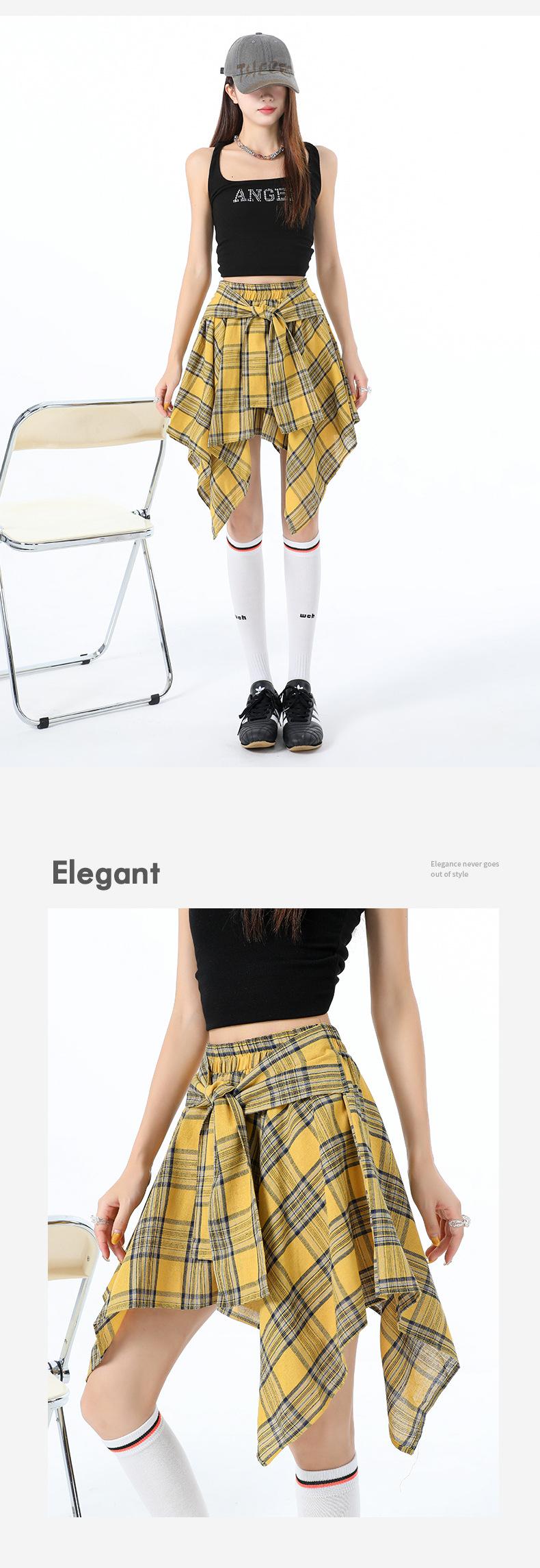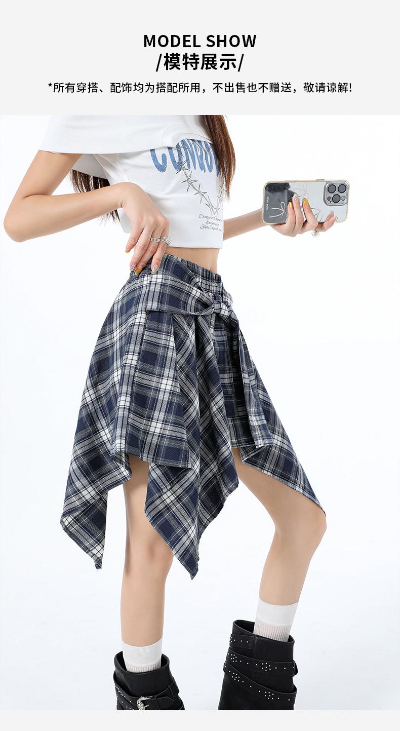 3328 falda midi a cuadros irregular para mujer 2025 nuevo verano petite corte A cintura elástica falda corta talla única