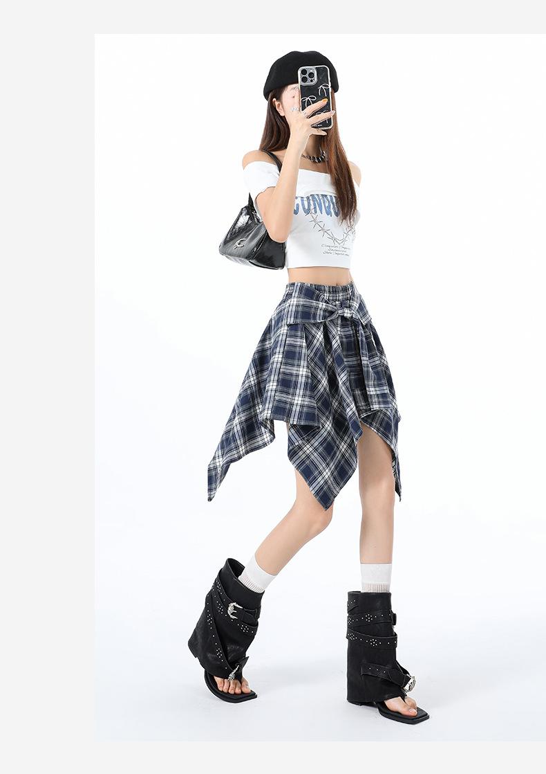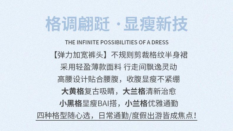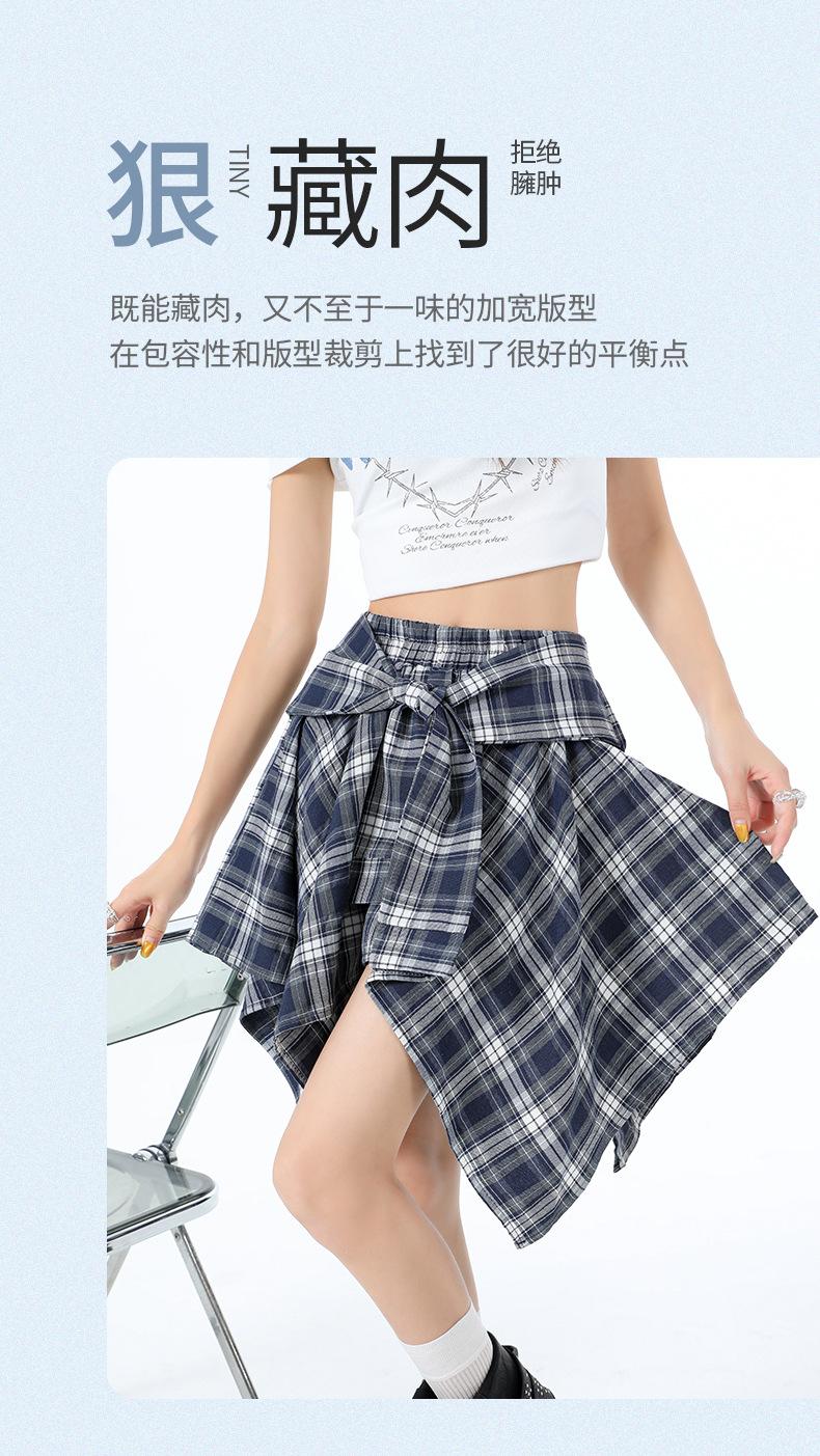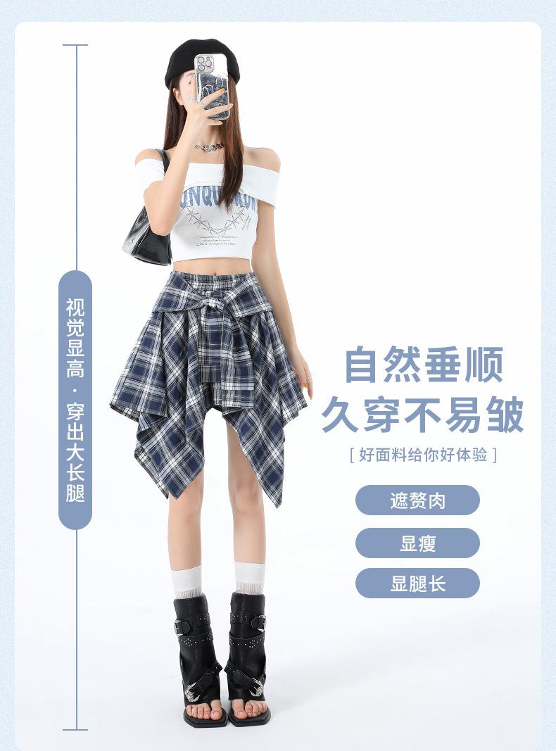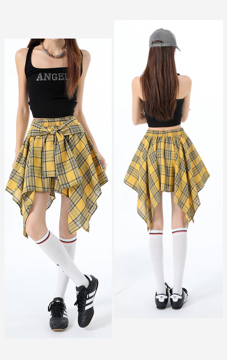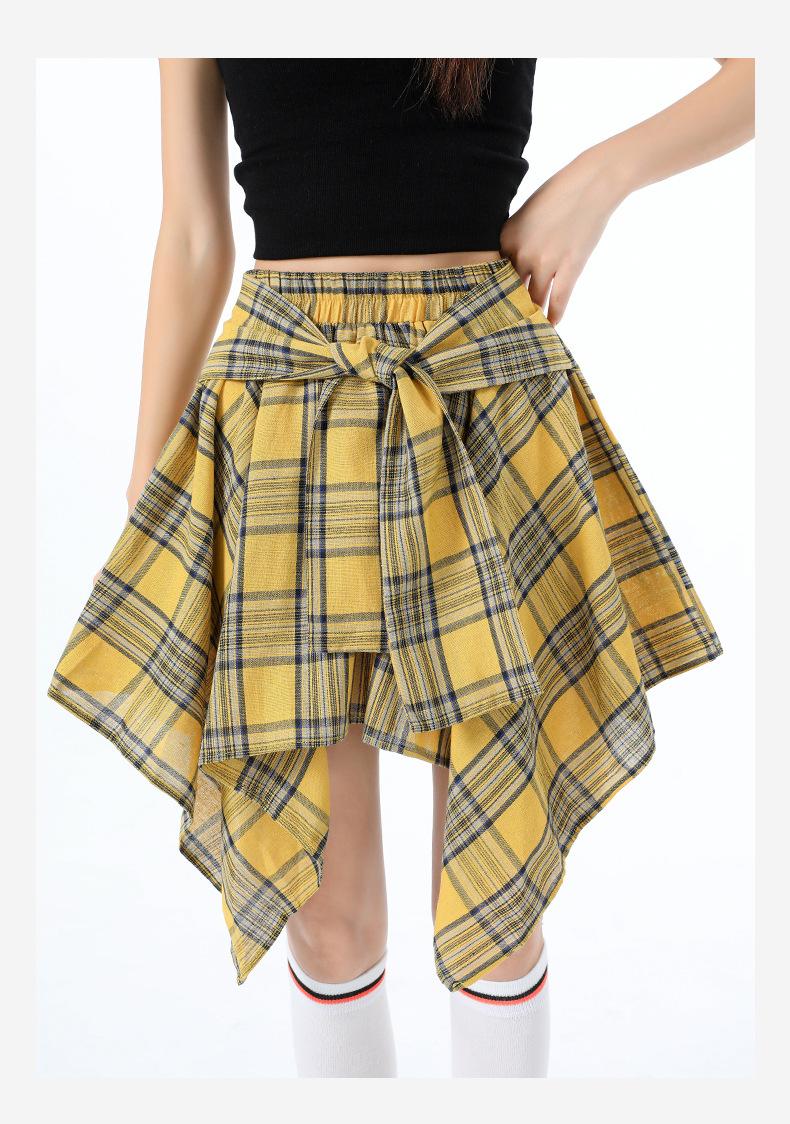 3328 falda midi a cuadros irregular para mujer 2025 nuevo verano petite corte A cintura elástica falda corta talla única