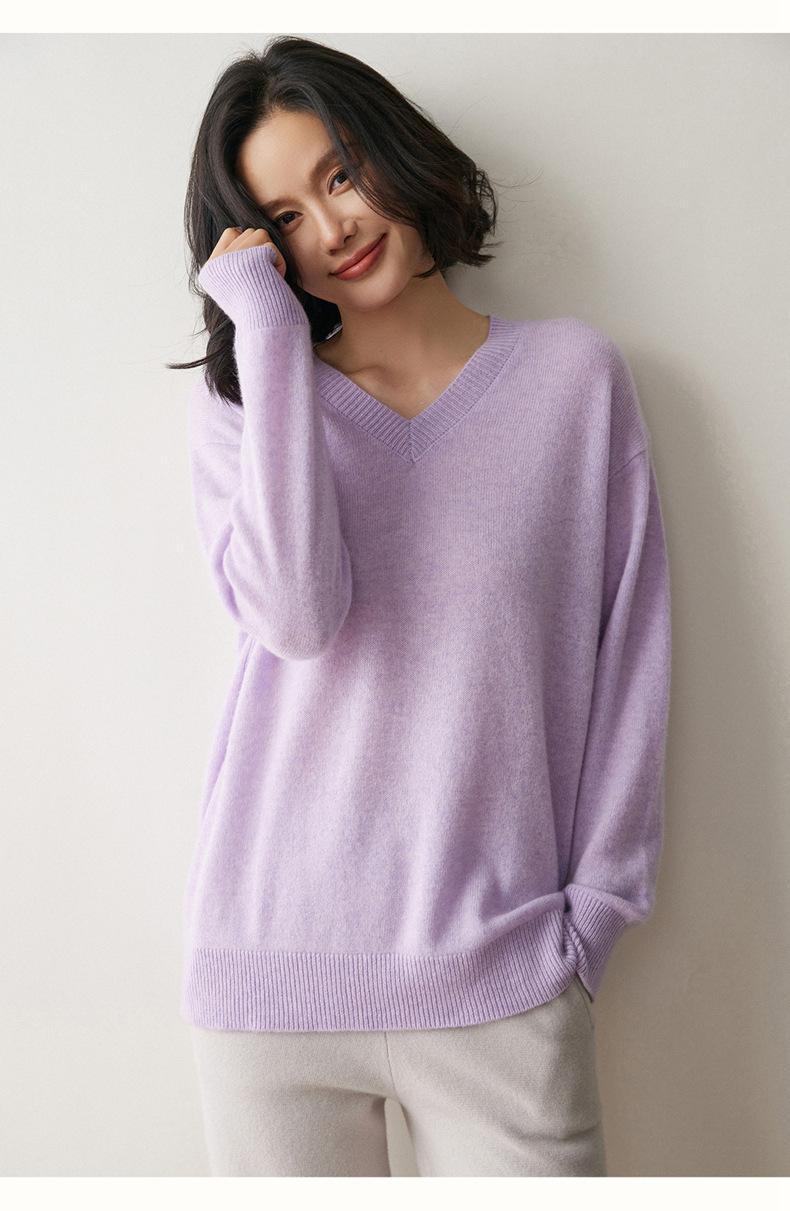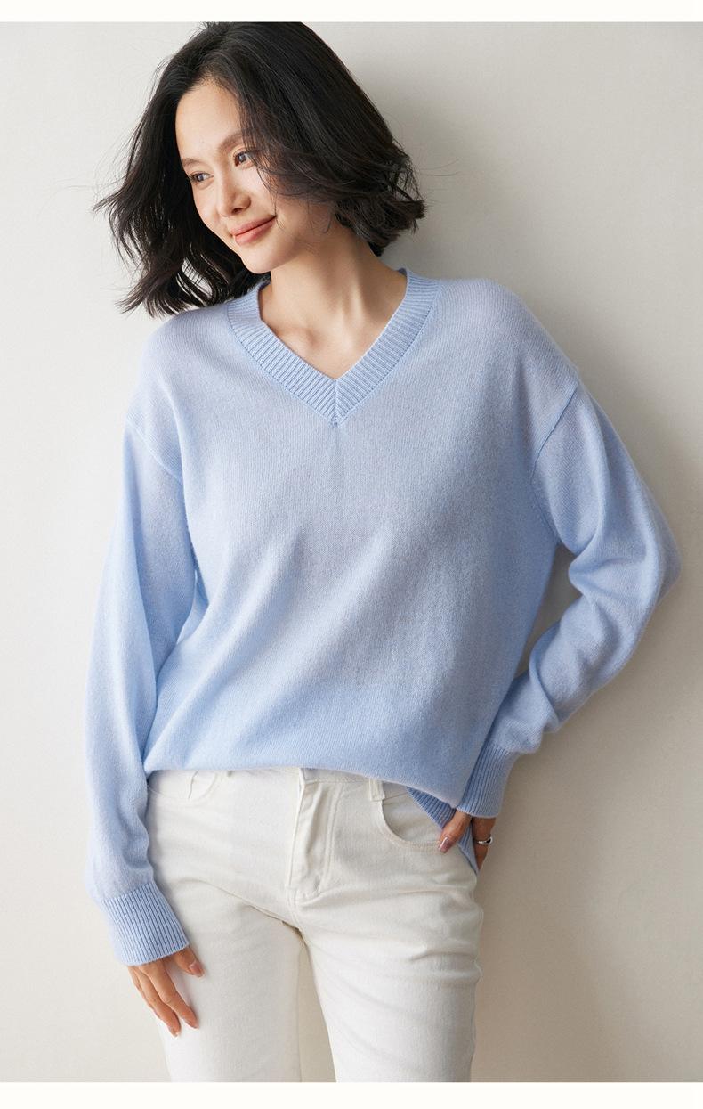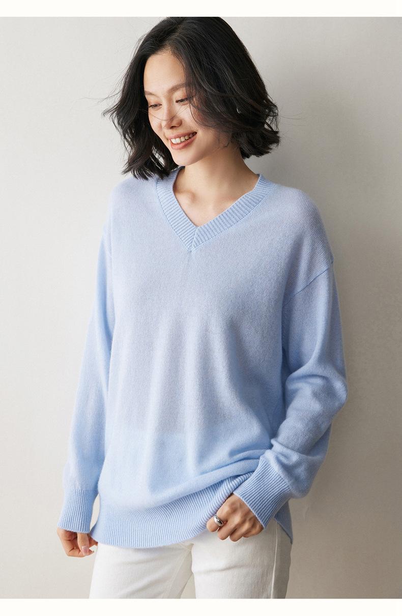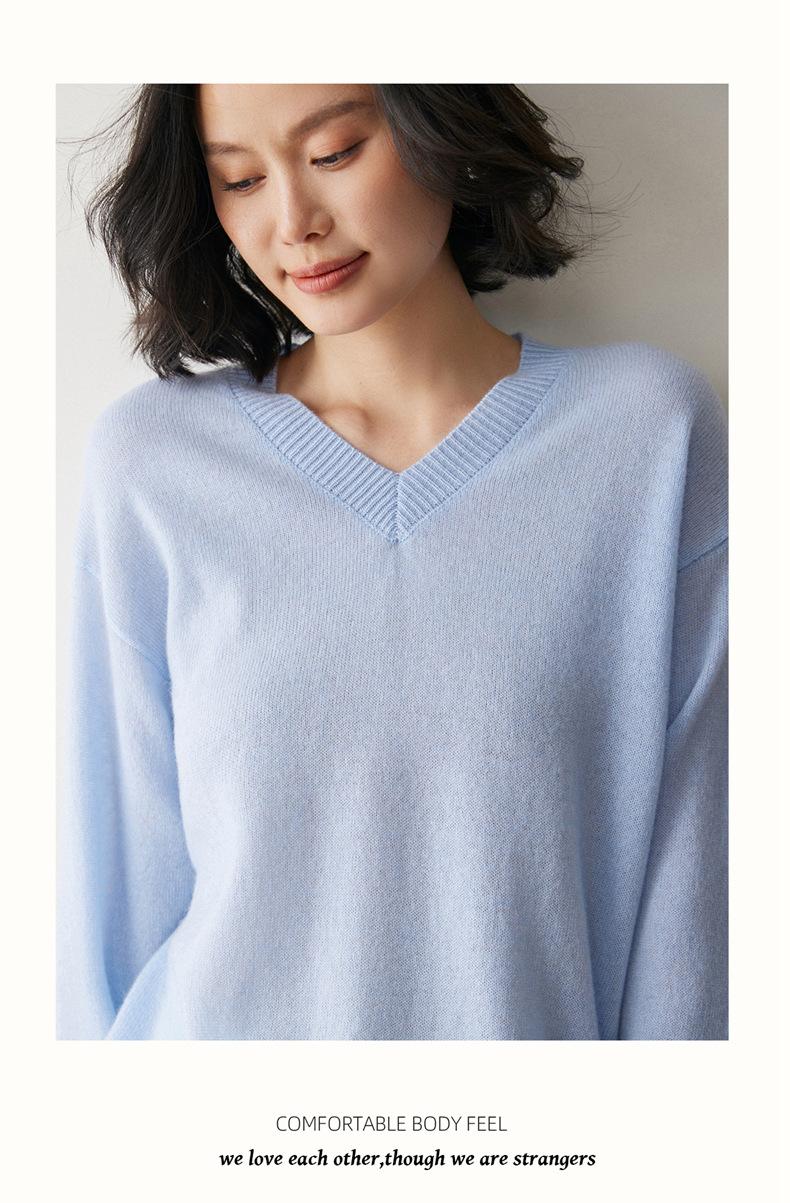Nuevo Suéter de Cachemira de Otoño e Invierno para Mujer Camisa Base Tejida Cuello en V Hombro Caído Holgado Adelgazante Cálido Manga Larga Suéter Pulóver