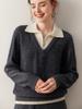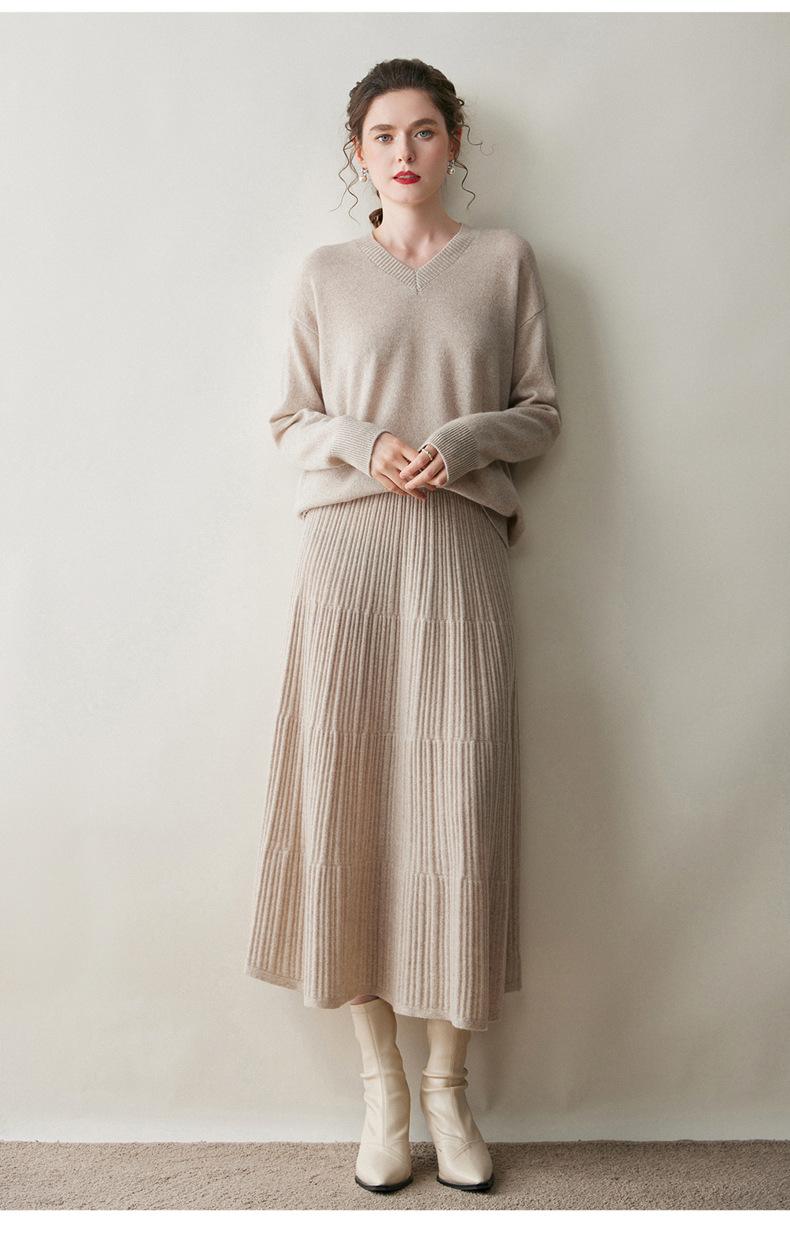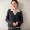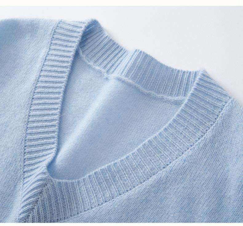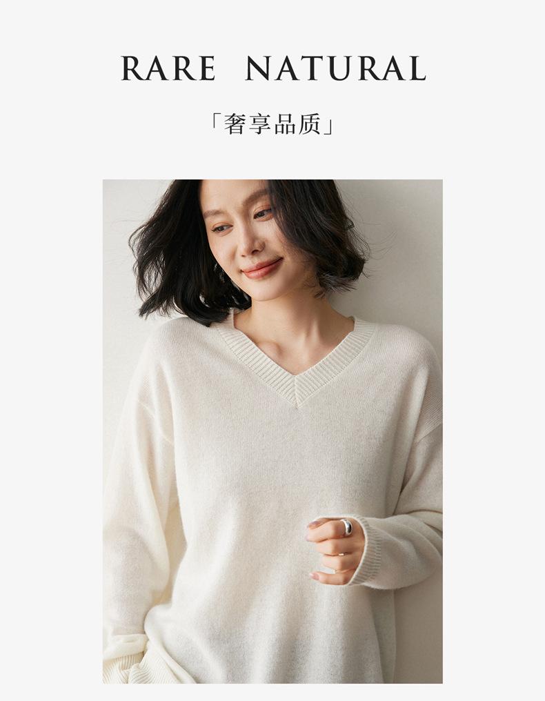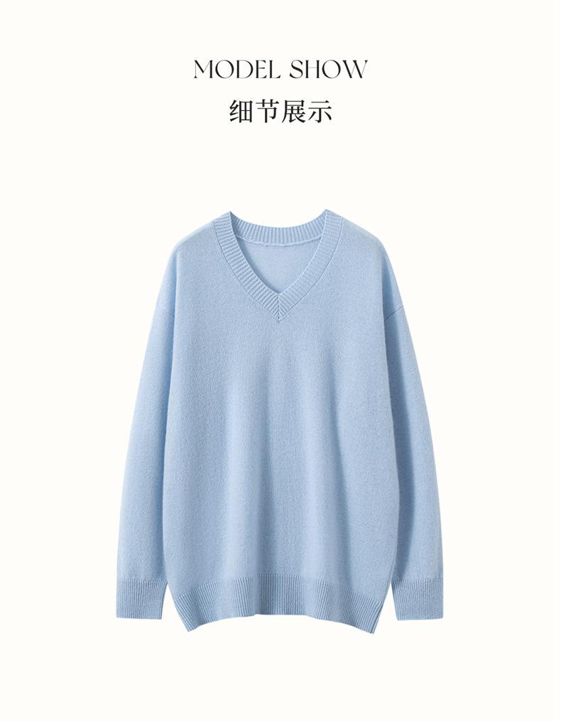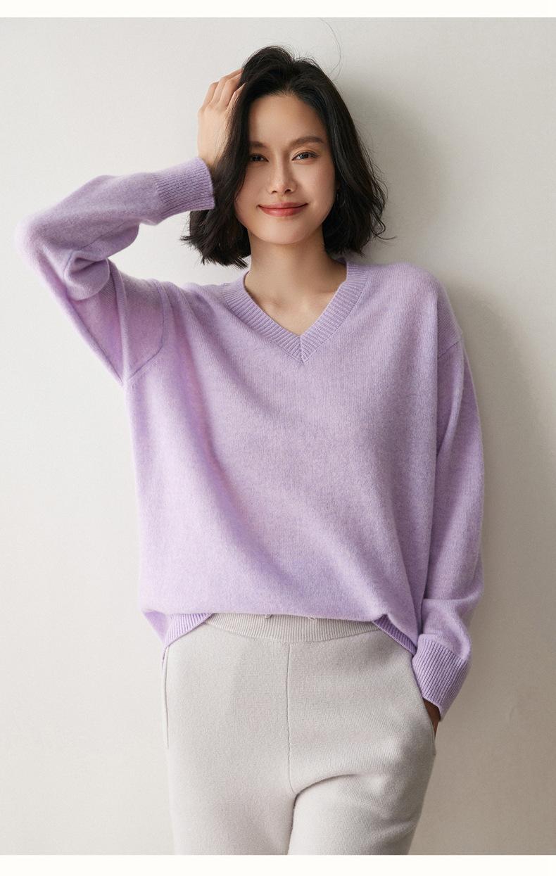 Nuevo Suéter de Cachemira de Otoño e Invierno para Mujer Camisa Base Tejida Cuello en V Hombro Caído Holgado Adelgazante Cálido Manga Larga Suéter Pulóver