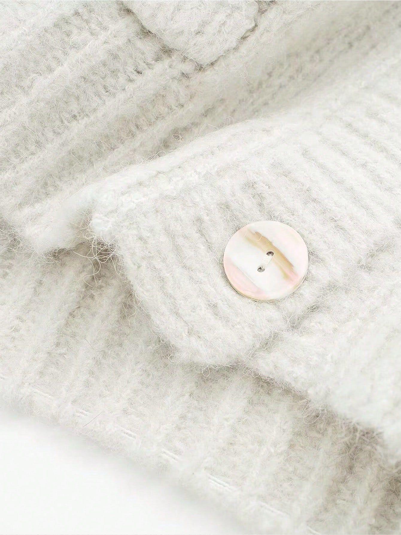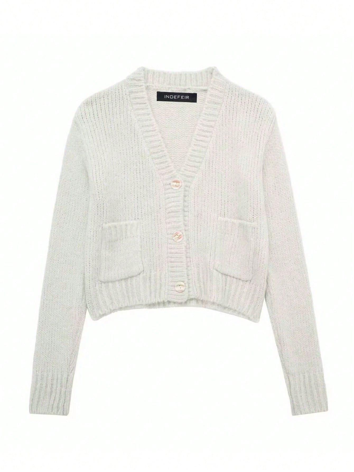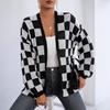 Ropa de Mujer Transfronteriza de Comercio Exterior Estilo Europeo y Americano Otoño Nuevo Estilo Moda Cuello en V Manga Larga Bolsillo con Solapa Pantalones Punto Color Puro Cárdigan para Mujer