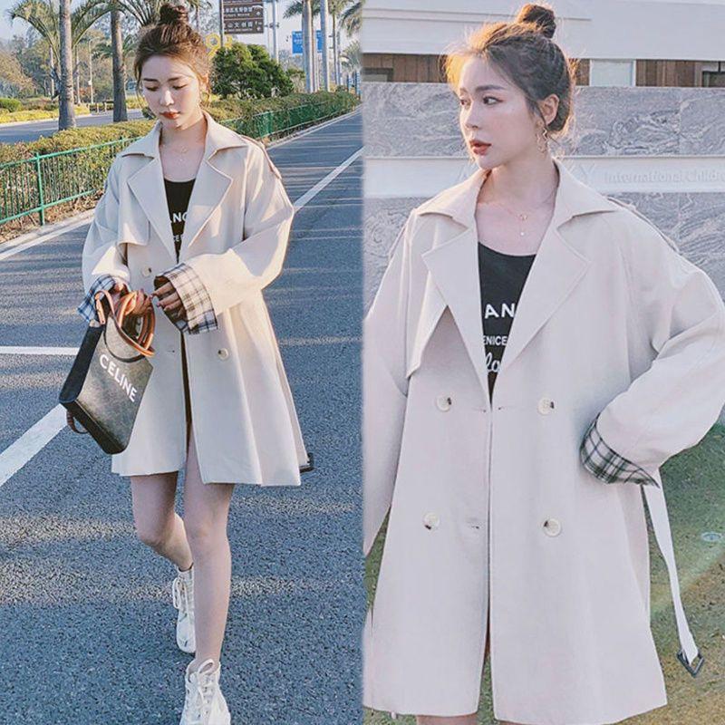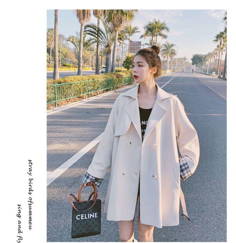 Abrigo trench para mujer de largo medio 2025 nuevo versión coreana holgado temperamento ins petite estilo británico abrigo de primavera y otoño