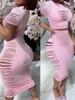 2024 nuevo verano transfronterizo europeo y americano elegante cómodo cuello redondo camiseta vaina falda rasgada sexy manga corta