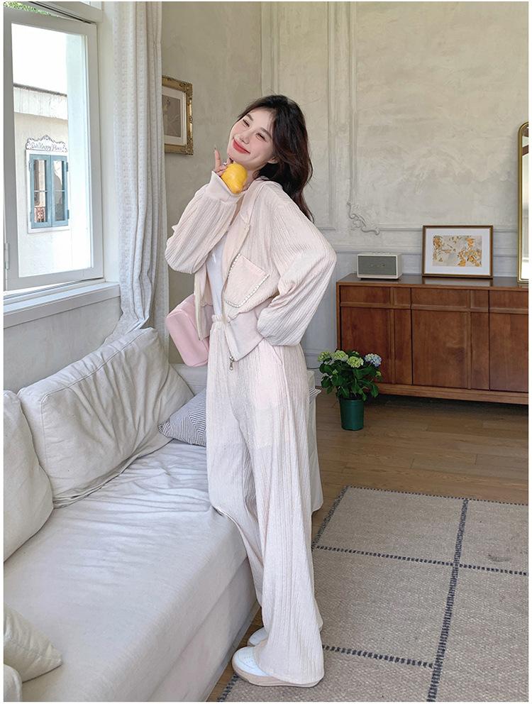 Traje de Mujer Otoño y Primavera 2025 Nuevo Estilo Reductor de Edad Versátil Cómodo Amigable con la Piel Conjunto de Top + Pantalón Conjunto de Dos Piezas