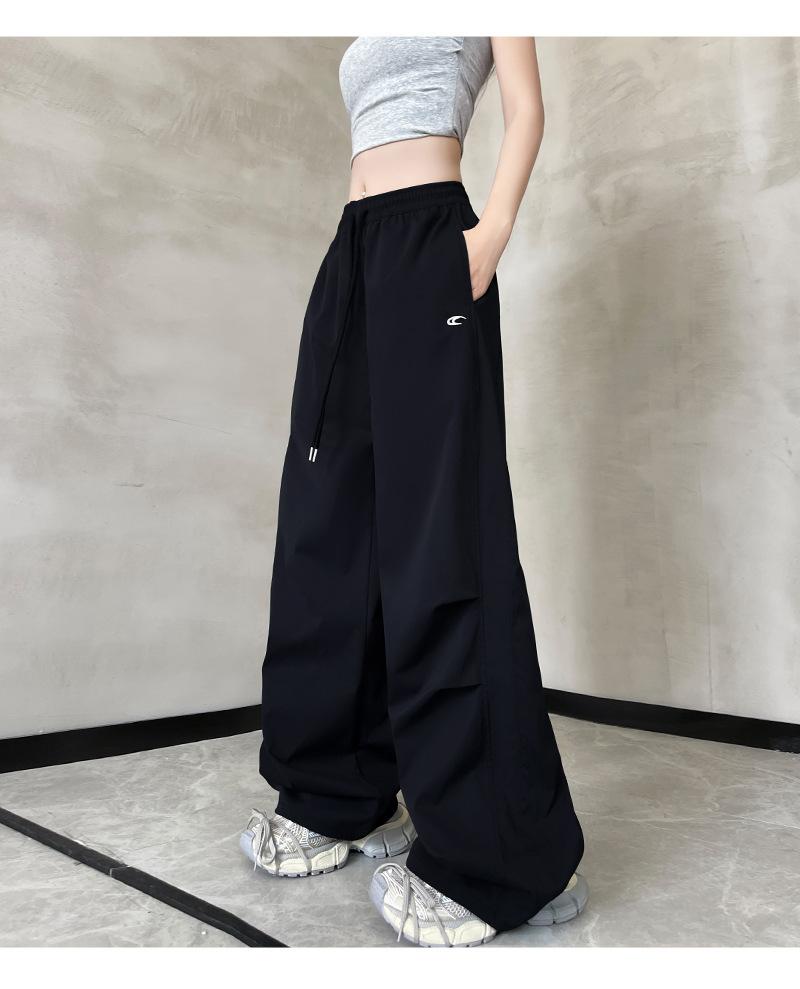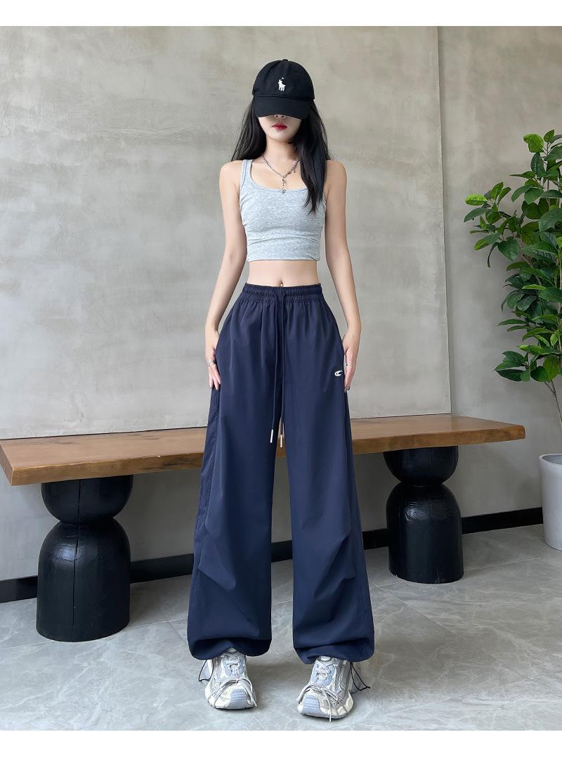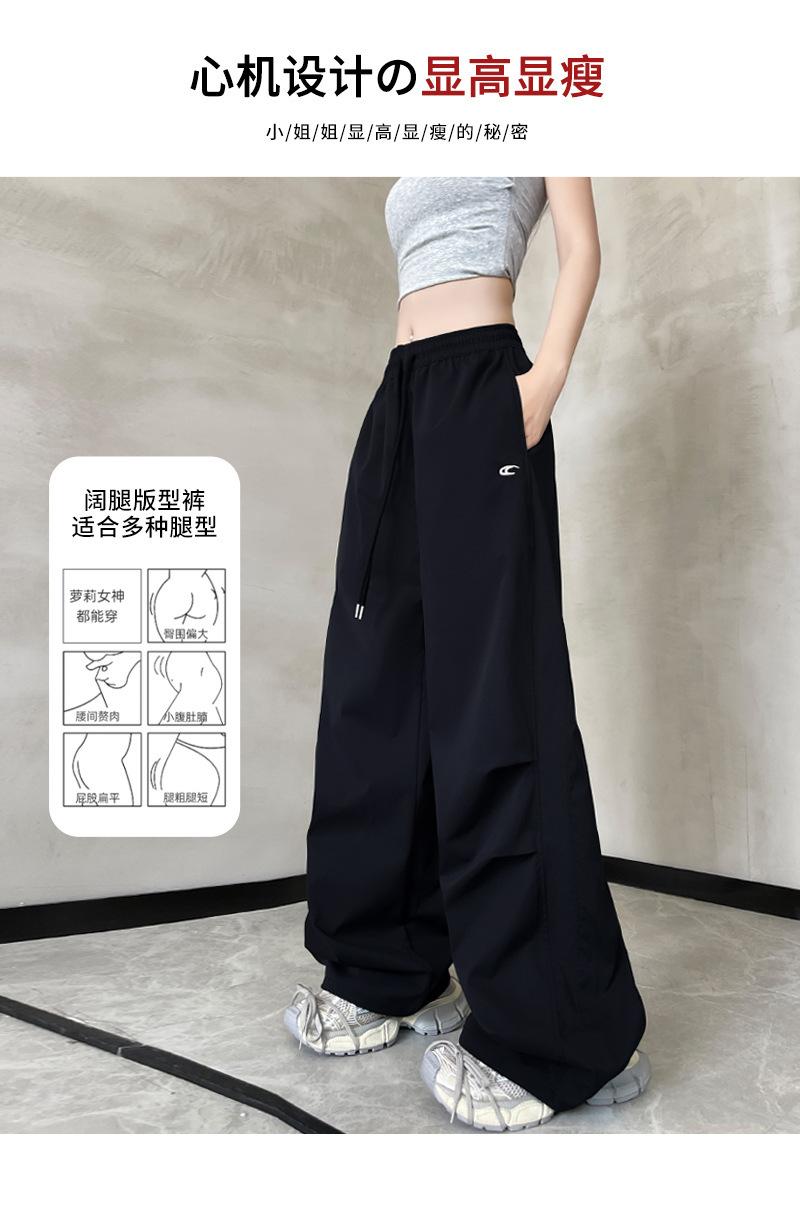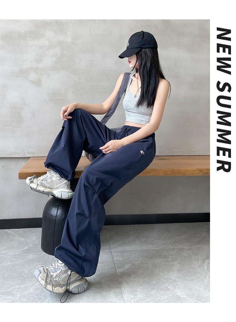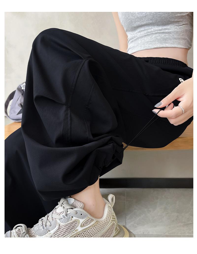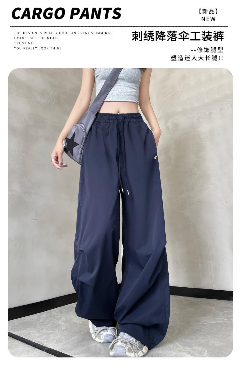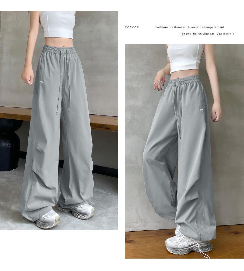 Pantalones cargo paracaídas bordados de secado rápido estilo americano para mujer, verano delgados holgados adelgazantes casuales deportivos de pierna ancha largos