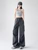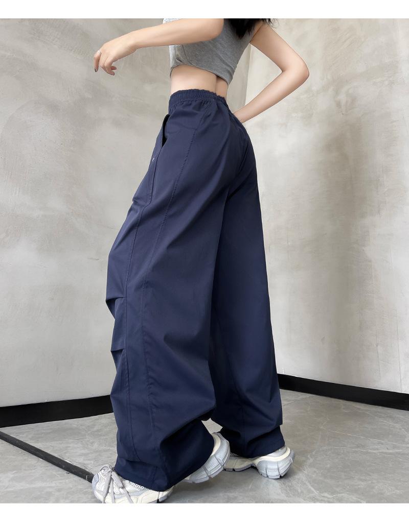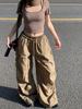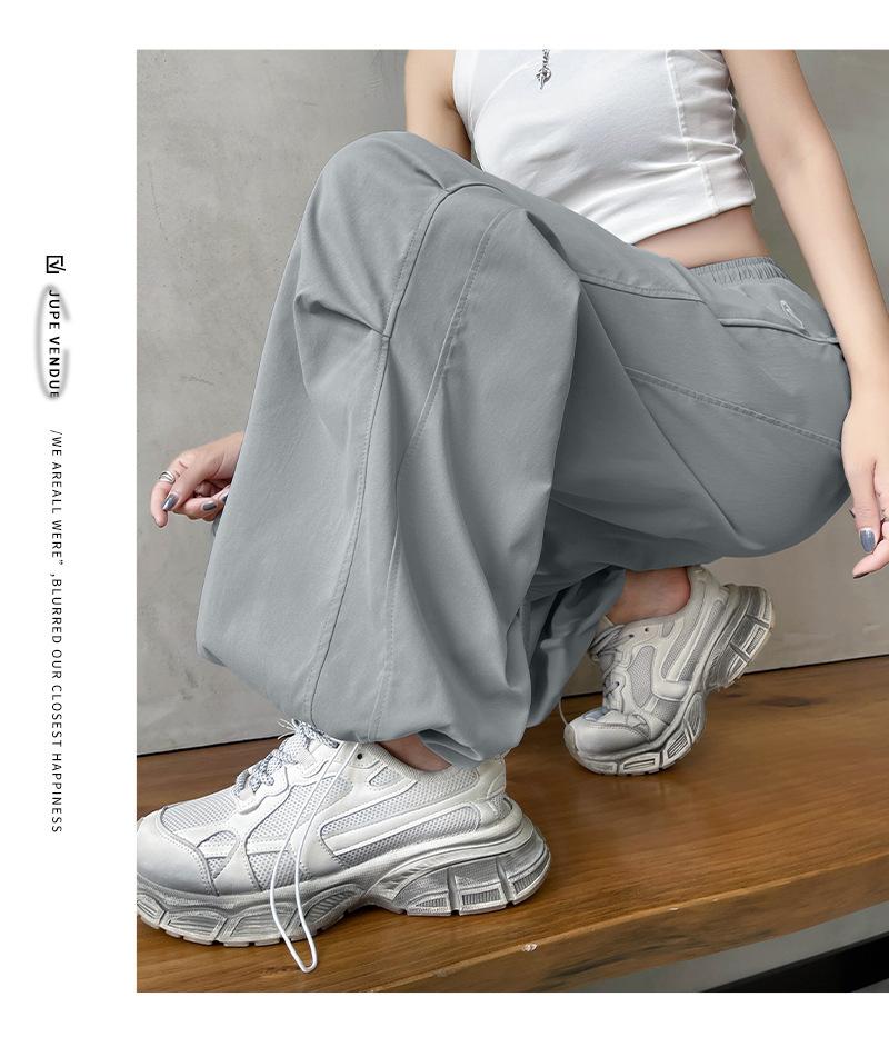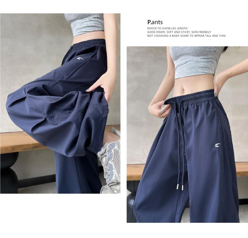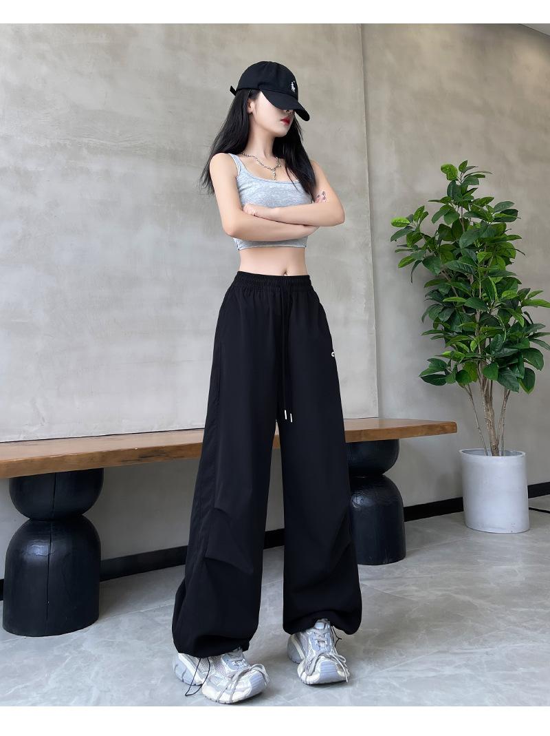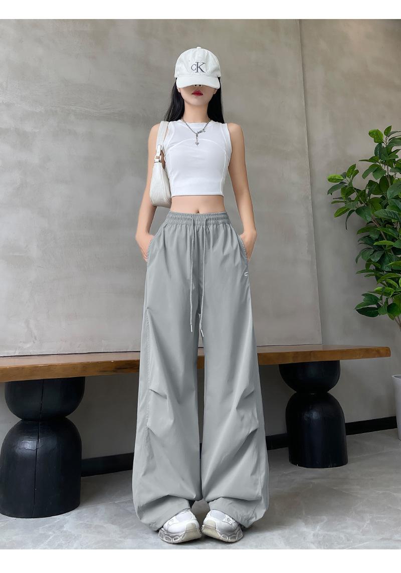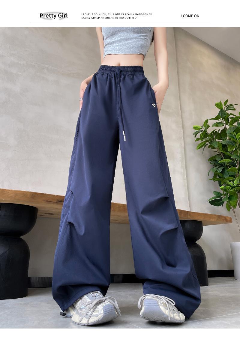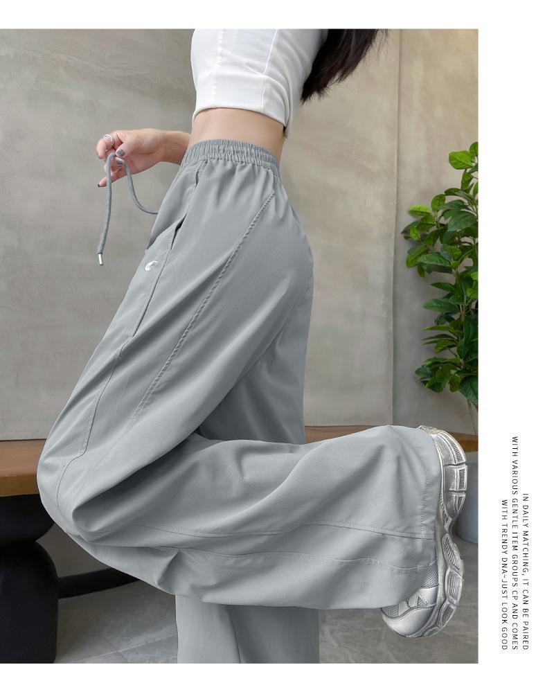 Pantalones cargo paracaídas bordados de secado rápido estilo americano para mujer, verano delgados holgados adelgazantes casuales deportivos de pierna ancha largos
