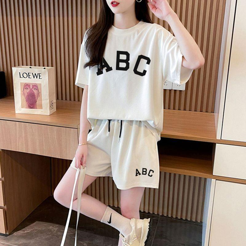 Conjunto Deportivo de Pantalones Cortos de Verano para Mujer, Estilo Salado a la Moda, Manga Corta Holgada, Moderno, Conjunto Casual de Dos Piezas que Reduce la Edad