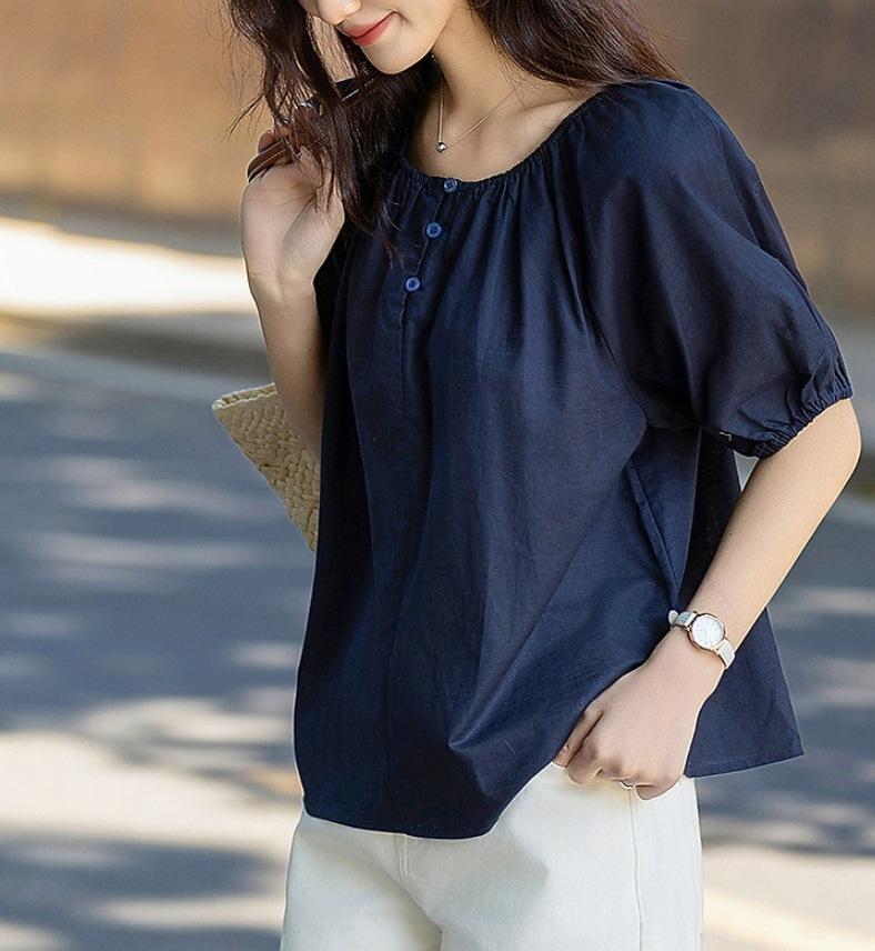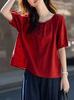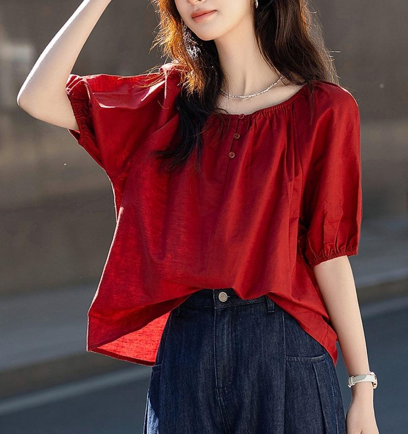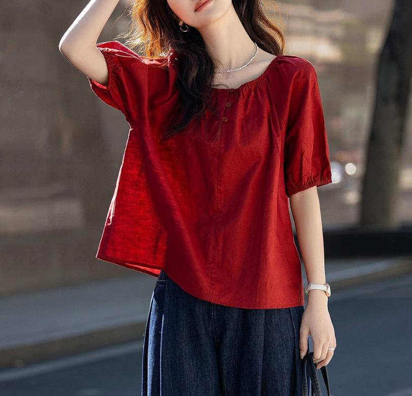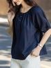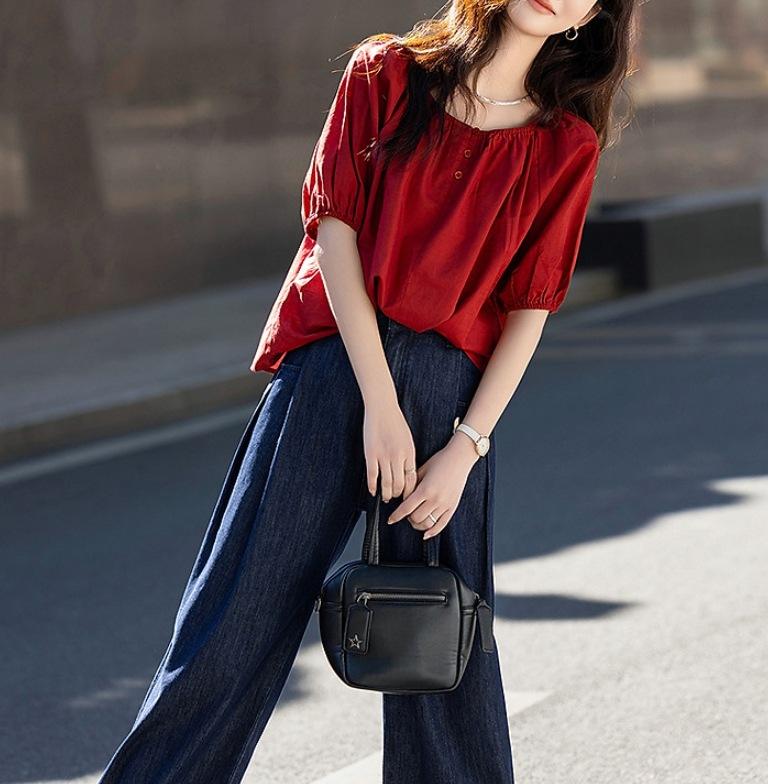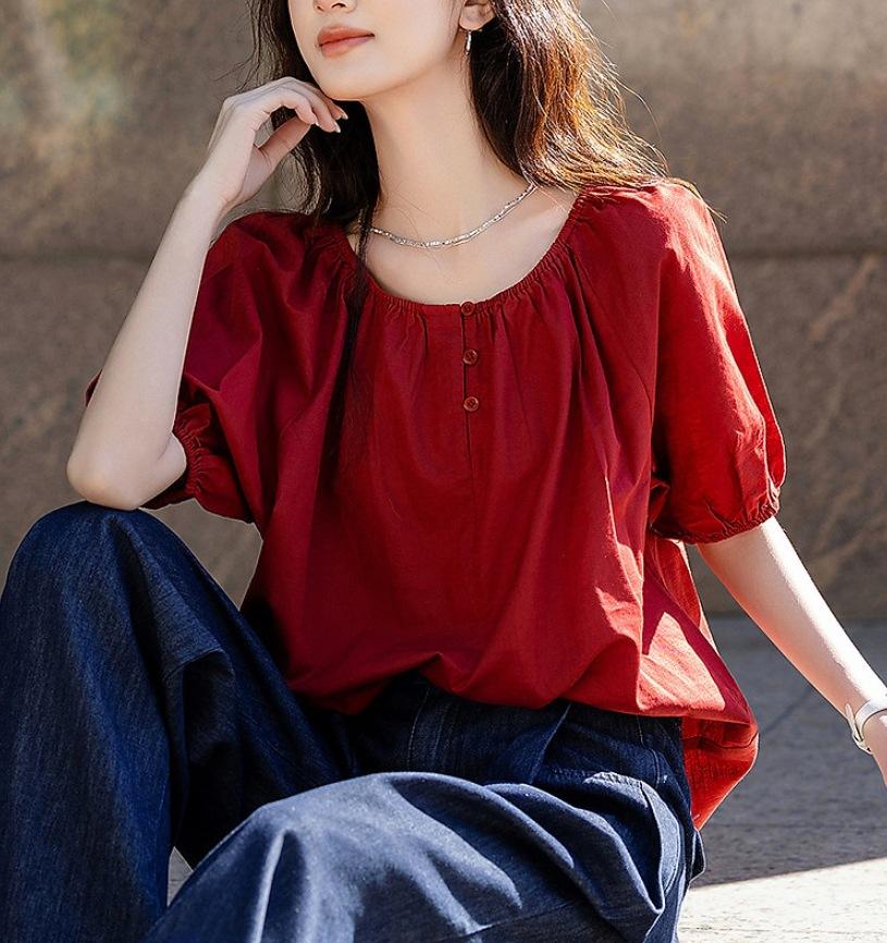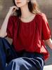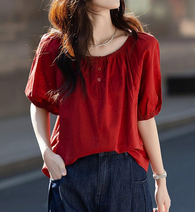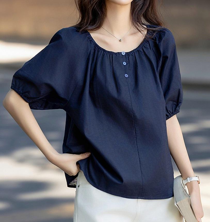 Camisa Elástica de un Hombro con Cuello Redondo para Dos Usos Verano Ligera Francesa Simple Camisa Temperamento Moda Camisas Tops de Mujer Trendy