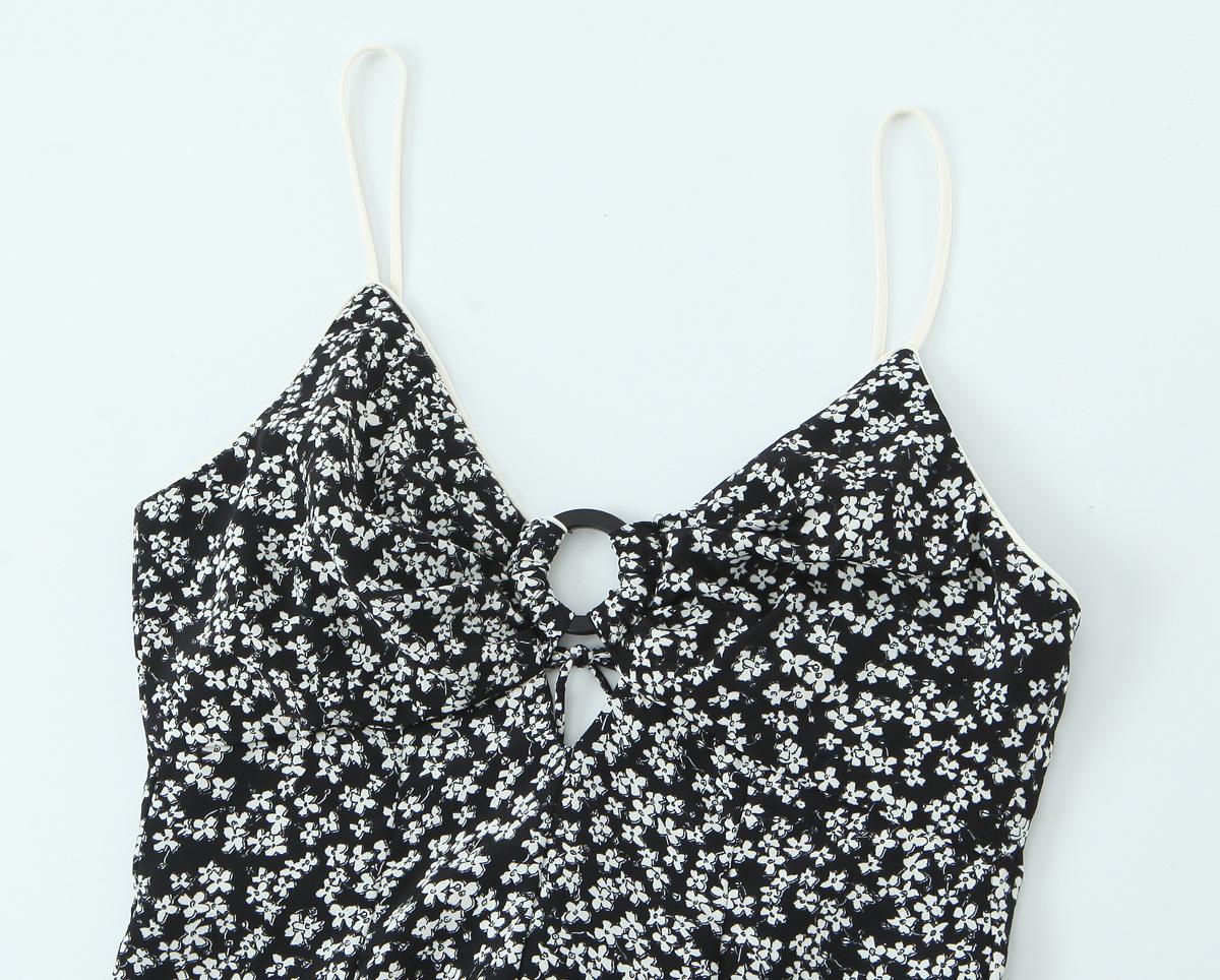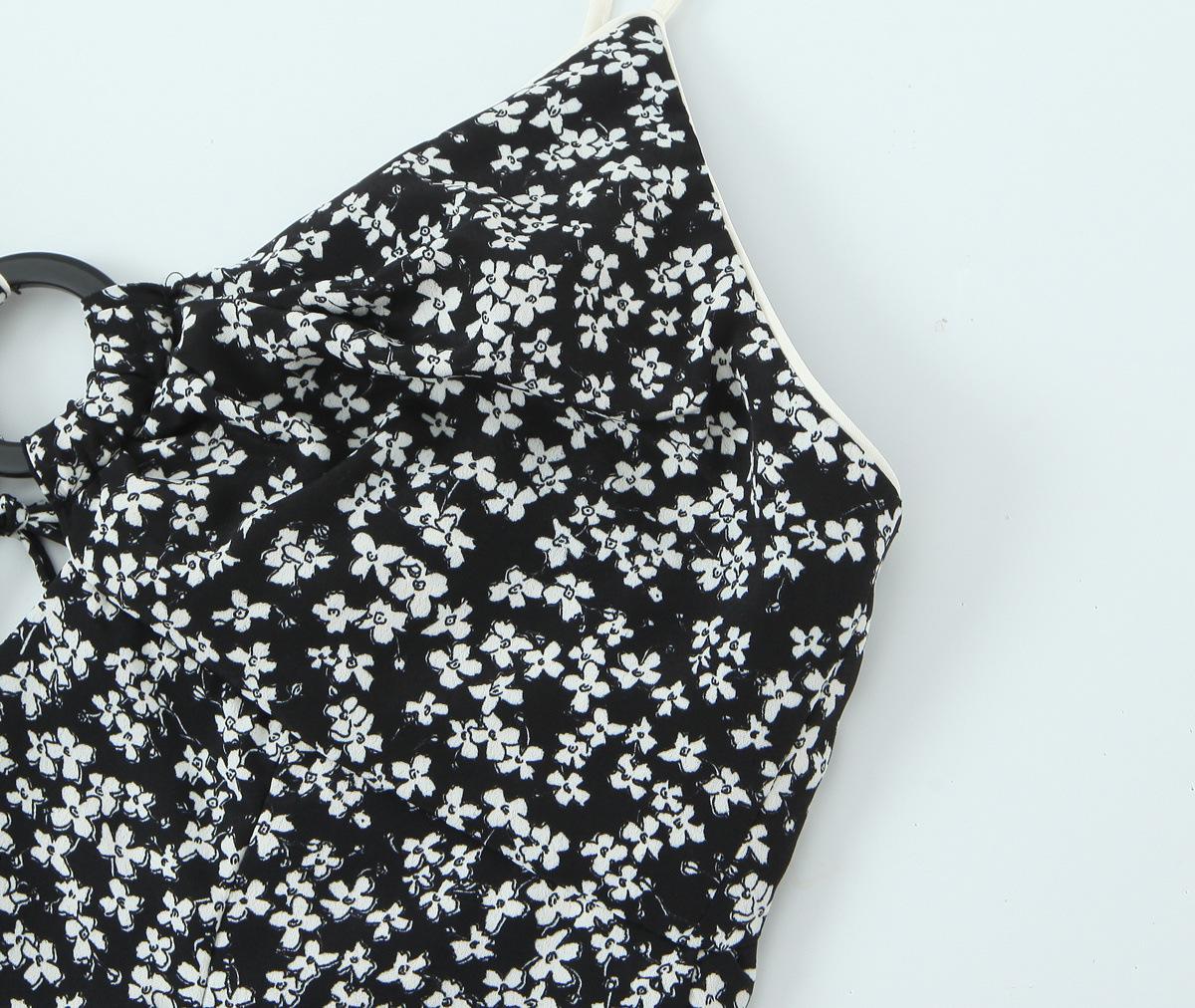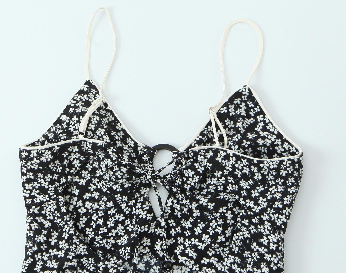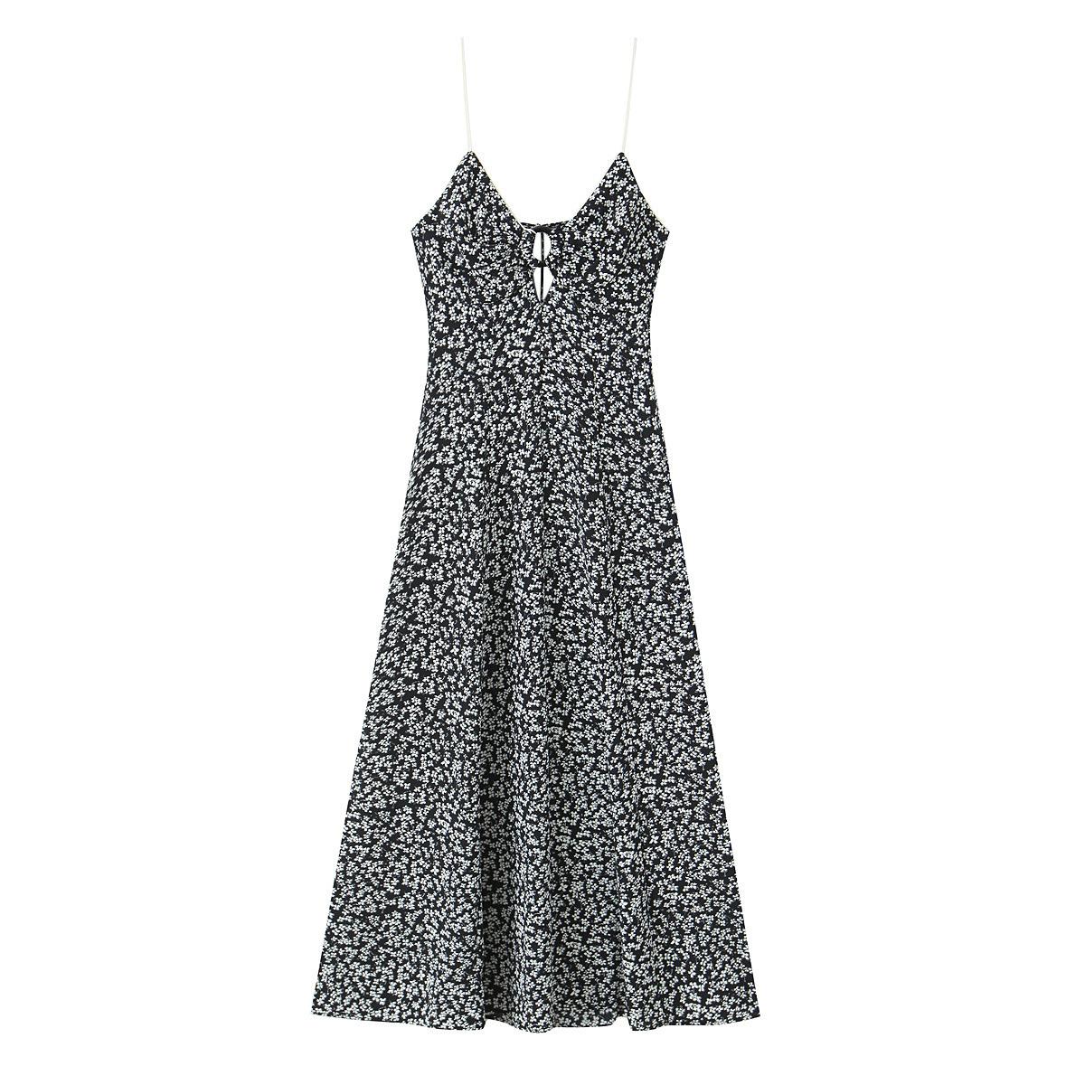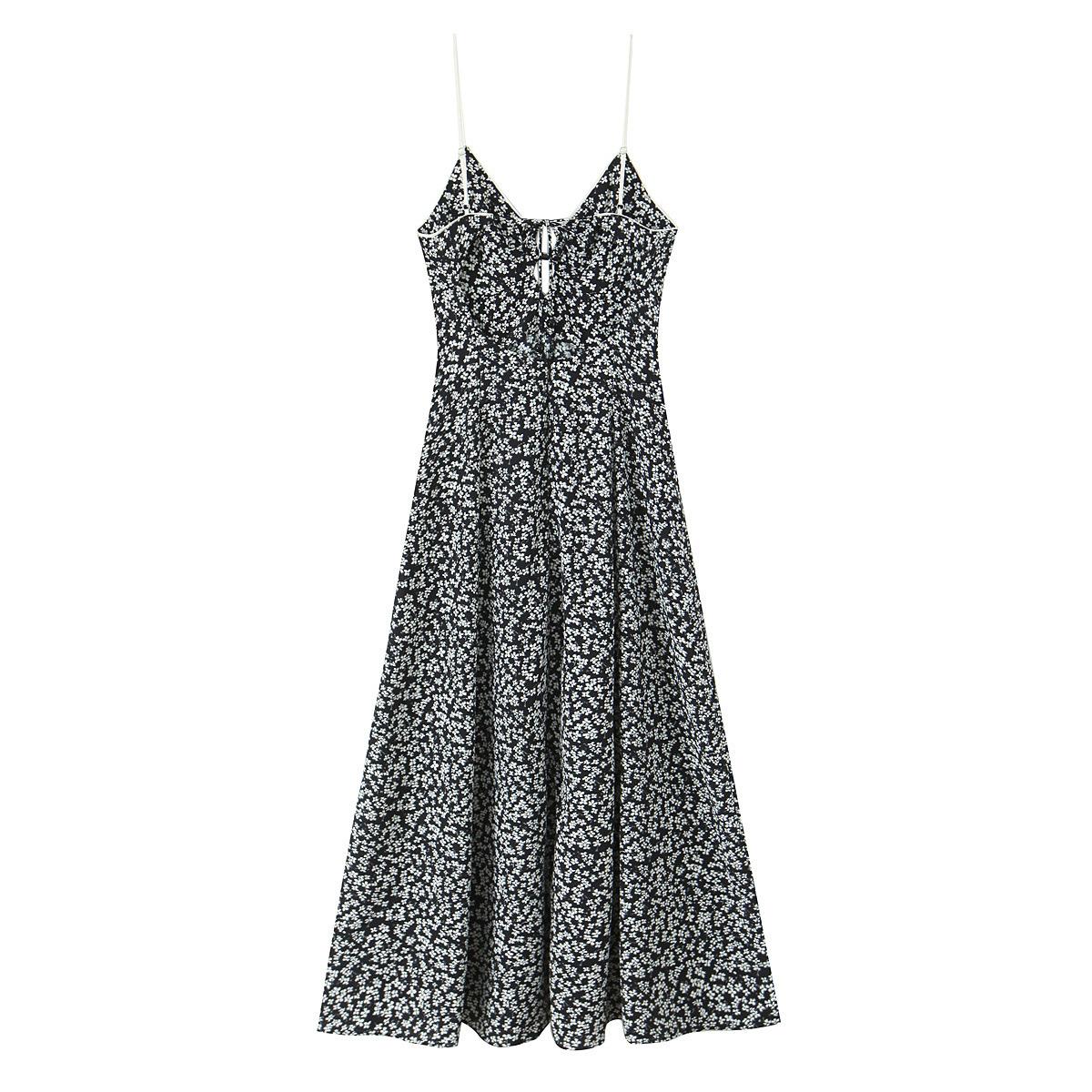 Ropa de Mujer al por Mayor Comercio Exterior Transfronterizo Otoño 2025 Estilo Europeo y Americano Vestido Midi Floral sin Espalda con Tirantes Espagueti para Mujer E62683F