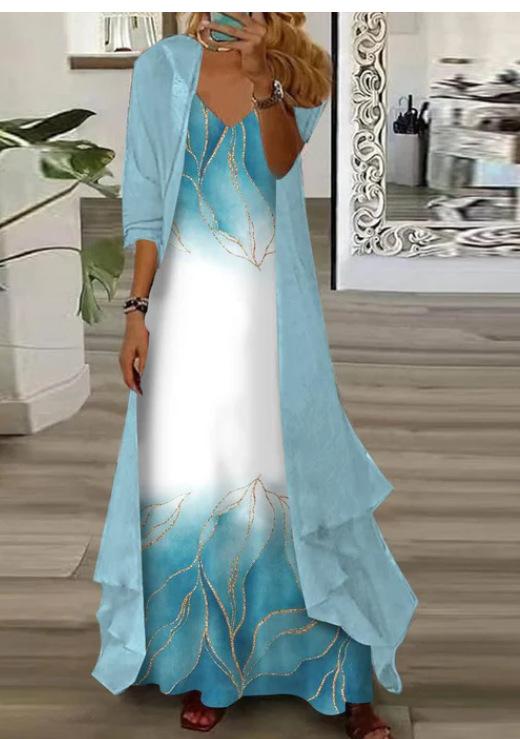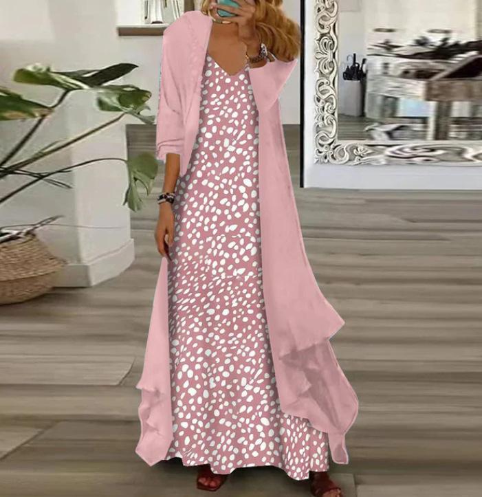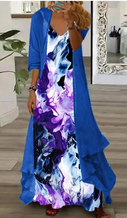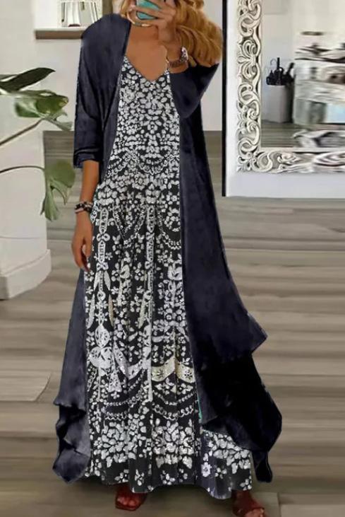 Vestido de Capa Interior para Mujer 2025 Europeo y Americano Nuevo Conjunto de Dos Piezas Vestido con Estampado Floral