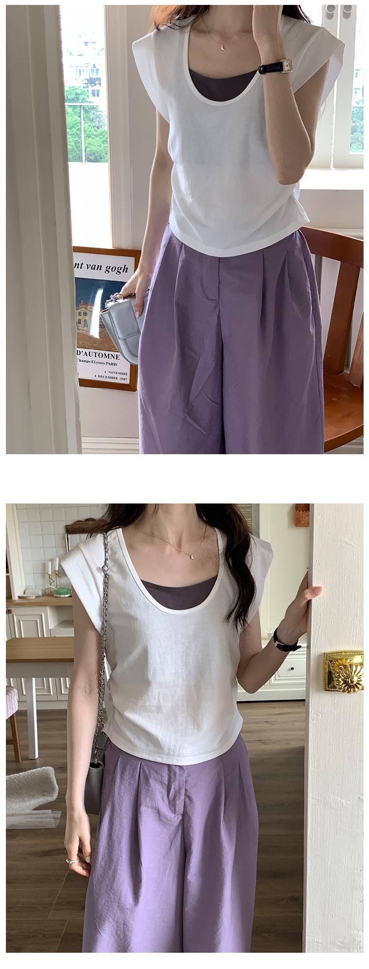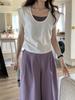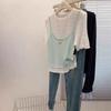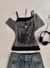 [7/4 Nuevo Producto de Verano] Top de Camiseta de Manga Corta de Dos Piezas Falsas para Mujer Zz270627